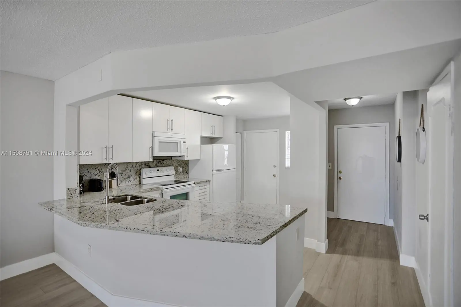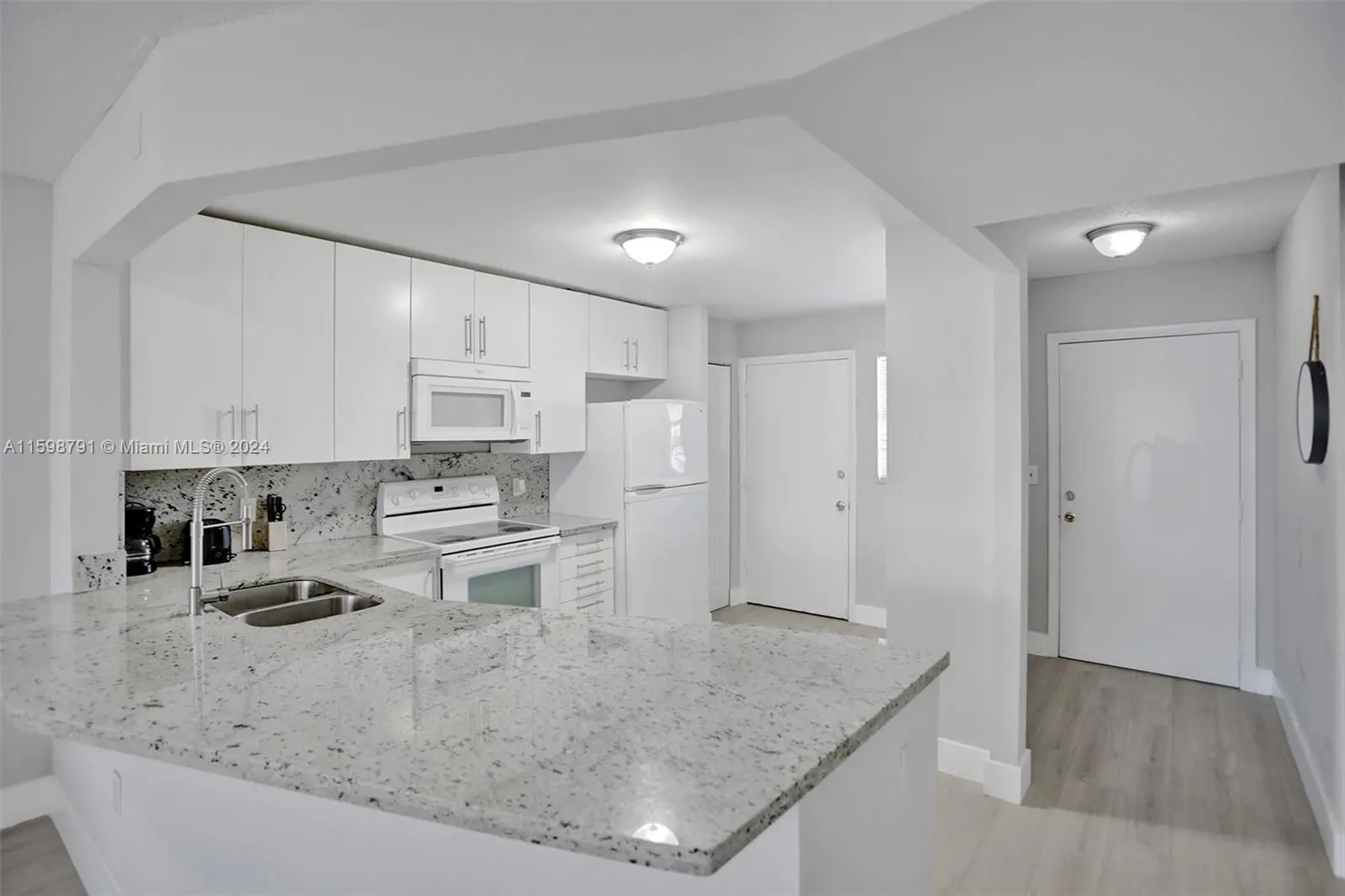 WOW! LIGHT & WHITE REMODELED LARGE 2 BED 2 BATH GEM. OPEN MODERN WHITE KITCHEN WITH GRANITE COUNTERS, EXTENDED BREAKFAST BAR, AND PANTRY. NEW PLUMBING & ELECTRIC. MODERN NEW BATHS WITH FLOATING VANITIES & HIDDEN PLUMBING, RAIN SHOWERS, DOUBLE SINKS IN MASTER BATH. MASTER BATH: SHOWER. GUEST: BATHTUB/SHOWER. GLASS MOSAIC. CLOSETS AND AMPLE CLOSET SPACE. SPACIOUS SCREENED BALCONY. VERY QUIET, SAFE 24/7 GUARD GATED COMMUNITY. SEVERAL POOLS. ASSIGNED PARKING, 2ND IN GUEST SPACE. GREEN AREAS & LAKES.