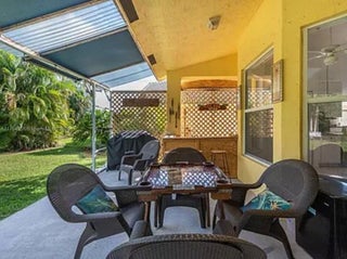 This 5-bedroom beauty features a primary suite and a guest bedroom with a full bath on the first floor, perfect for an office or in-law suite. Upstairs, find 3 more bedrooms and a full bath. Entertaining is easy with an open kitchen, , and granite countertops, overlooking the family room and outdoor area. extended paver patio, and cabana bath. Includes a whole-home water softener system and sprinkler pump. Community perks: clubhouse, pickleball, tennis, basketball courts, pool, and manned gate.