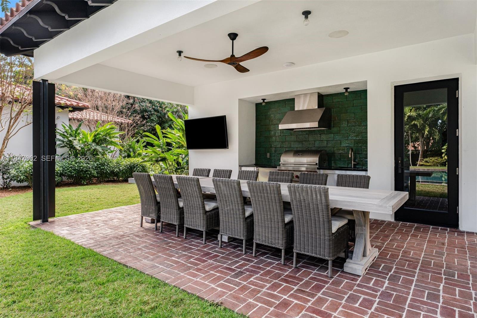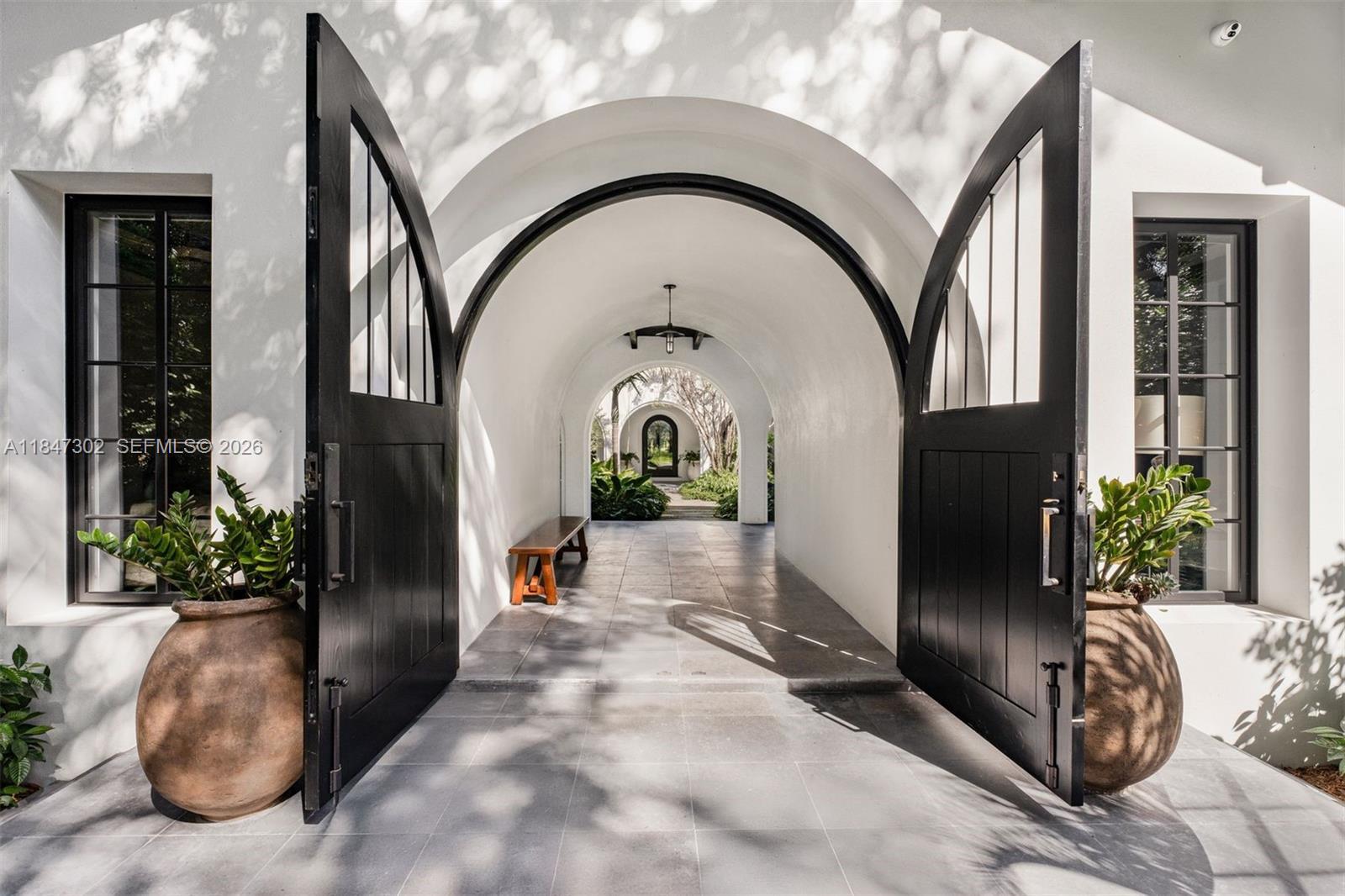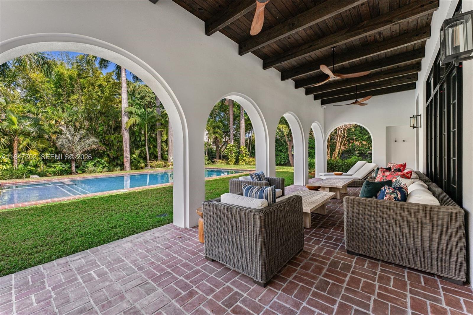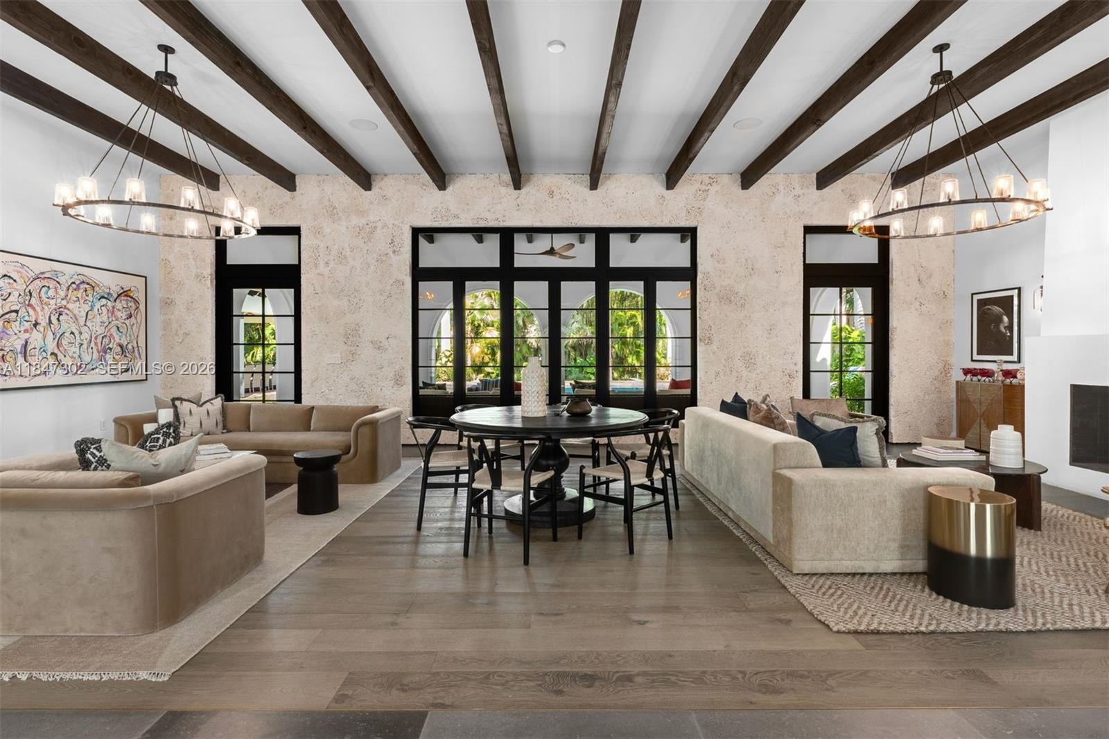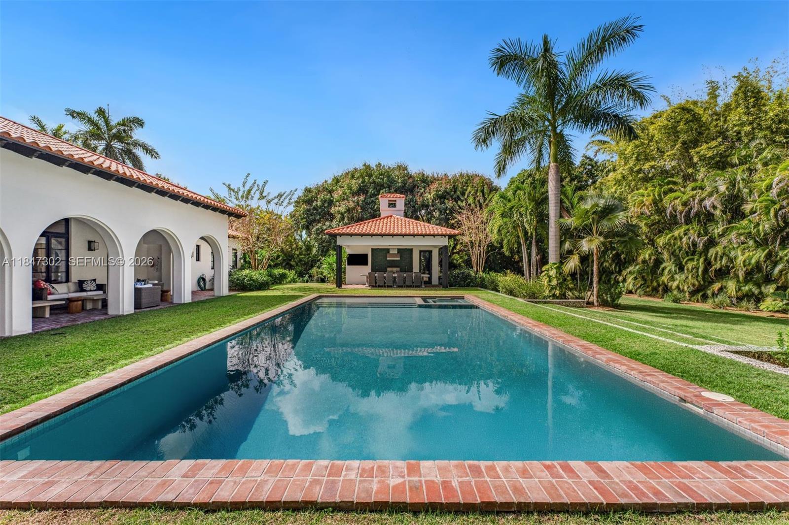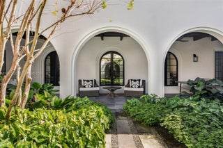 A one-of-a-kind Grand Classic Montecito Estate in Ponce Davis. Offering privacy, sophistication, and modern convenience, this 9,449 Sq Ft, 7BD 6BA home by architect Jenifer Briley and designer Deborah Houston boasts lush landscaping with mature trees and a front entrance courtyard. Inside are custom architectural details, reclaimed French oak floors, custom high-impact Marvin windows and Signature Doors, and a large fireplace, adding timeless charm. A chef’s kitchen features top-tier appliances, and the spacious principal suite offers a spa-like bath and custom walk-in closet. Outdoor spaces include a saltwater pool with jacuzzi, summer kitchen, and covered terraces with exposed wood beams. Smart home automation, a 3-car garage, and luxurious finishes complete this exceptional retreat.