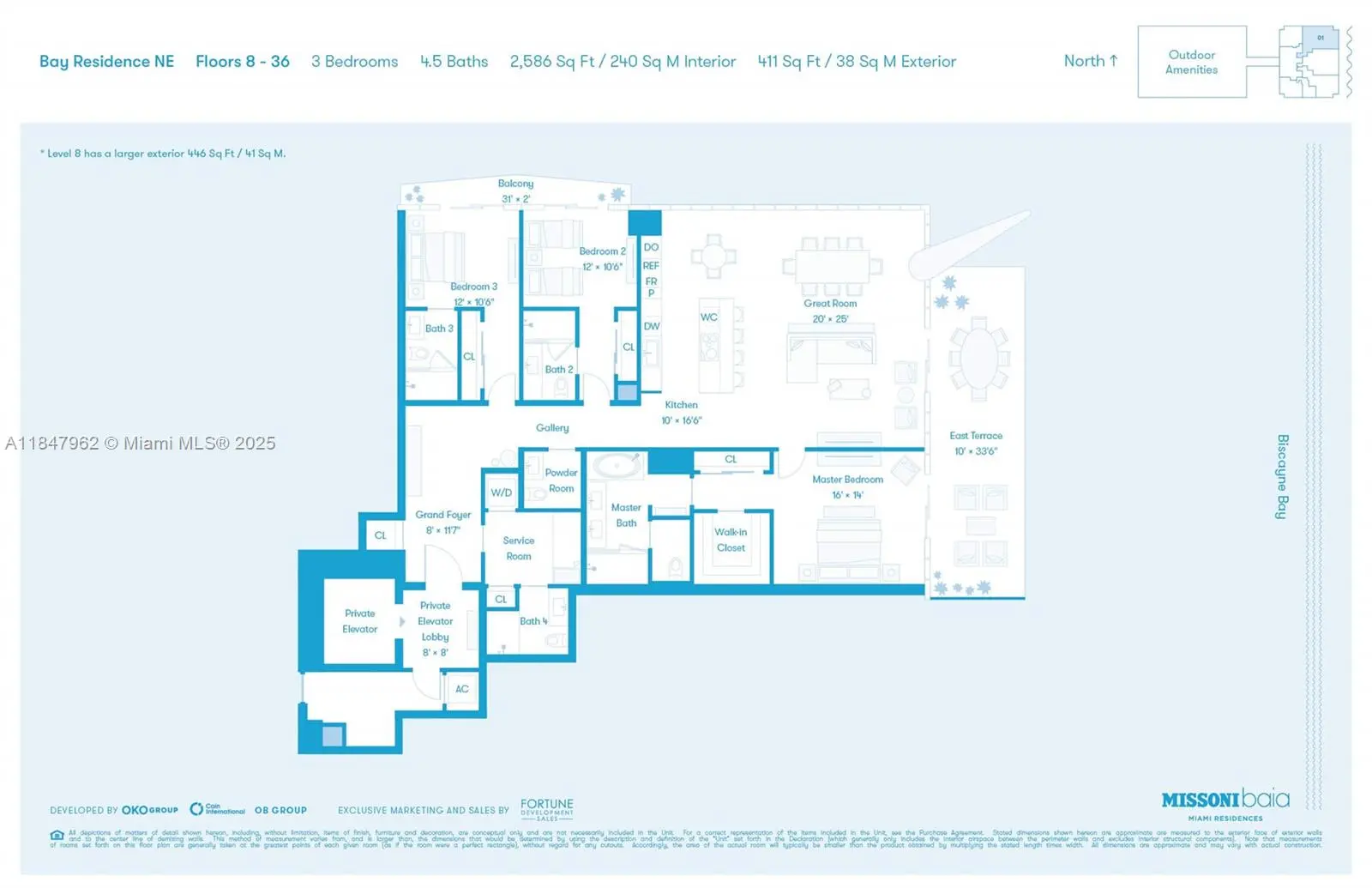 COME AND LIVE IN THIS SPECTACULAR corner unit that offers 3 bedrooms + Den and 4.5 bathrooms. Spectacular breathtaking unobstructed water views from the double width terrace tha covers the spacious living area and main bedroom. 10 feet ceilings, marble floors, top of the line Wolf and Sub Zero appliances, Italian made cabinetry, wine cooler, gym with 180° bay views, yoga studio, steam room and sauna, Olympic-size pool, Lounge pool, tennis court, game room, fully equiped party room, Bayside terrace with pool overlooking the bay, movie theater room, Kids’ club, and Pet spa.