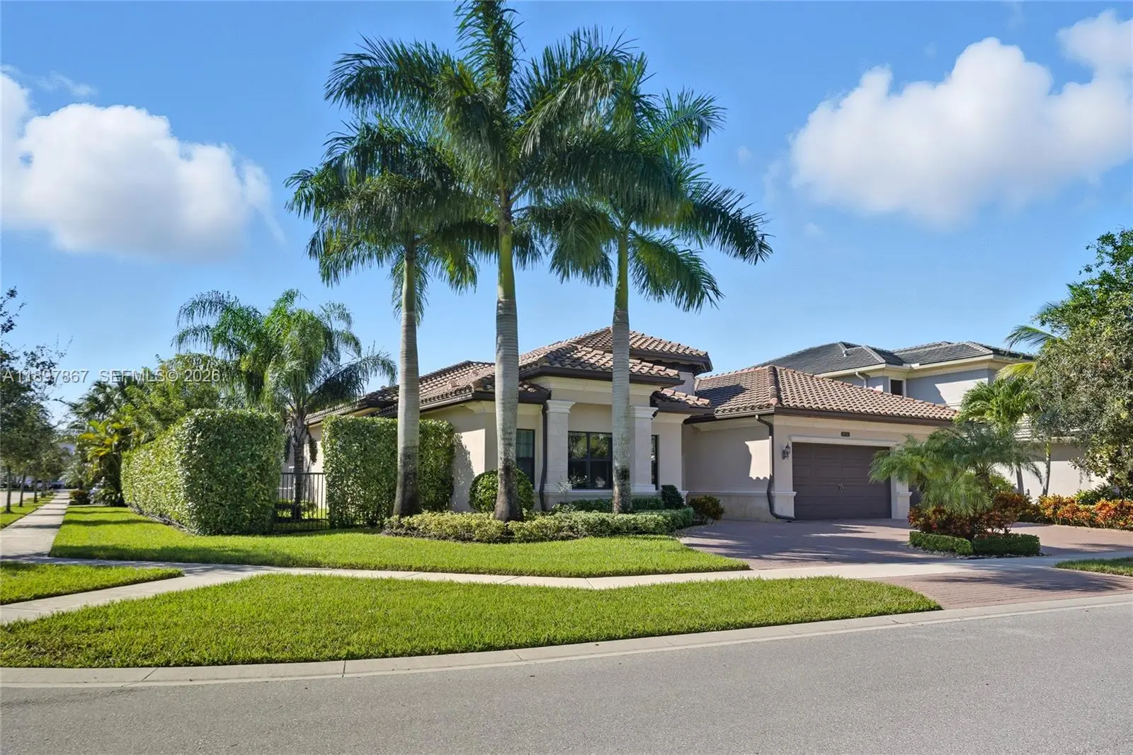 Motivated seller, price reduced by $50,000. Beautiful Charleston Grande model in Seven Bridges! This one-story 5BR/5BA home offers nearly 4,000 sq. ft. on one of the largest corner lots, providing complete privacy with no homes or roads directly facing the property. Just a short walk to the 30,000 sq. ft. clubhouse. Features include a gourmet kitchen with high-end stainless steel gas appliances, formal dining room, wet bar, impact glass windows, spacious ensuite bedrooms, and a circular driveway. The primary suite boasts a coffered ceiling, dual walk-in closets, and a luxurious bathroom with dual sinks. Enjoy the screened saltwater pool with heater and outdoor kitchen. Additional upgrades include a whole-house generator, camera system, and full-home water filtration. Meticulously maintained and move-in ready—this home is a must-see!