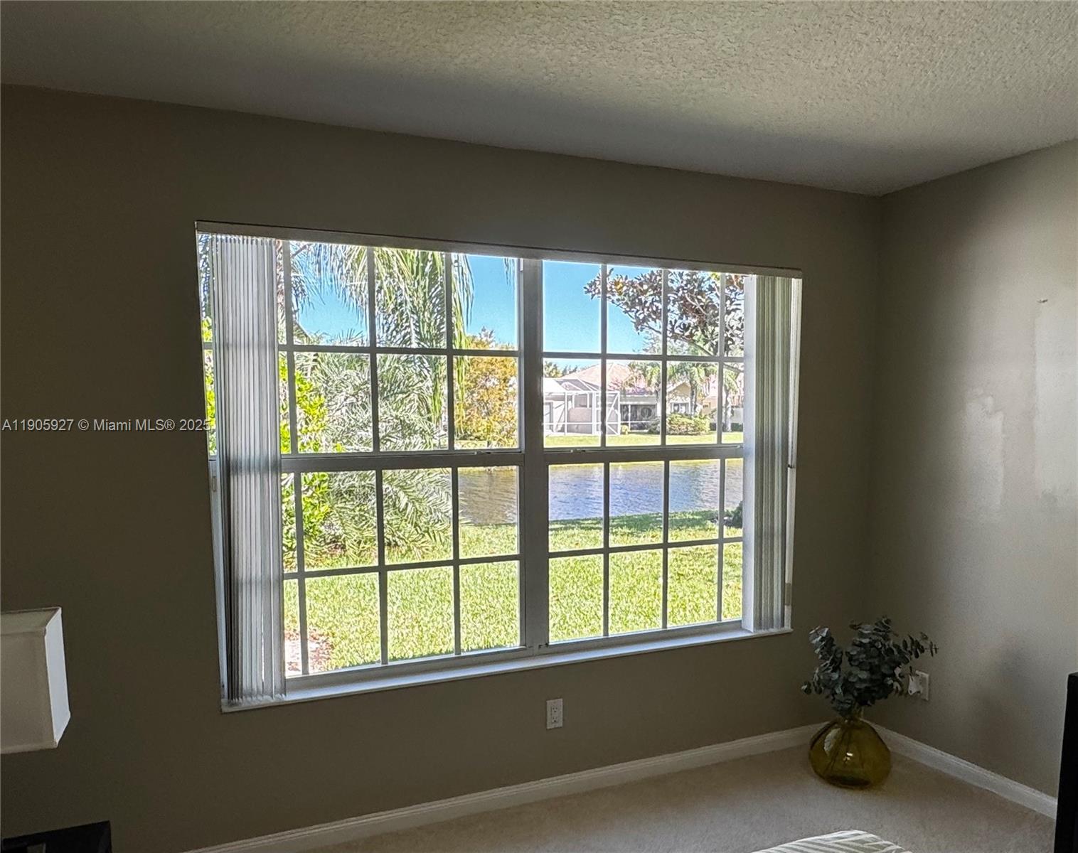 In the gated resort style community of Villagewalk, this beautifully maintained 2 bed/2 bath Capri villa is move in ready and waiting for its new owner. The lake view from indoors and while enjoying lanai provides a tranquil setting, and the interior is impeccable. White cabinets, Corian counters, epoxy garage floor, new washer/dryer, and accordion hurricane shutters are only some of the features you will find in this lovely home. In addition to the acres of lakes and preserves, this community offers many desirable amenities including resort style clubhouse and pool as well as a separate lap pool, tennis, child play area, fitness center, shuffleboard, basketball, and a dog spa and hair salon on site. Wellington is an upscale town with dining, shopping and all of the conveniences.