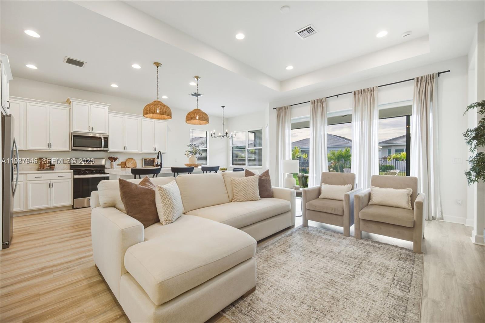 Welcome home to this beautifully upgraded 2024 construction residence located in a desirable gated community. This thoughtfully designed 3-bedroom, 2-bath home with a 2-car garage offers modern living at its best and is truly move-in ready for your family. Impact windows and doors provide peace of mind, energy efficiency, and storm protection, while numerous upgrades throughout enhance both style and comfort. Residents enjoy exclusive access to the Westlake Adventure Park, a spectacular 15-acre amenity center offering endless entertainment for all ages. Kids will love the Adventure Playground, soft-surface splash pad, lagoon-style pool, and tower slide, while Scoops Ice Cream and the Snack Shack provide convenient eats and sweet treats. Active lifestyles are supported with a BMX Pump Park, bocce ball courts, and bike-friendly paths. The community hosts regular events at the concert pavilion and event lawn, creating a vibrant and welcoming atmosphere for neighbors to connect. Pet owners will appreciate the dedicated Paw Park, a perfect space for furry friends to run and play. New Phase Two amenities are now open, featuring basketball courts, a dedicated adult lap pool, and The Lodge, a multi-purpose building ideal for gatherings and special events. This home offers the perfect combination of modern construction, resort-style amenities, and an exceptional community lifestyle.