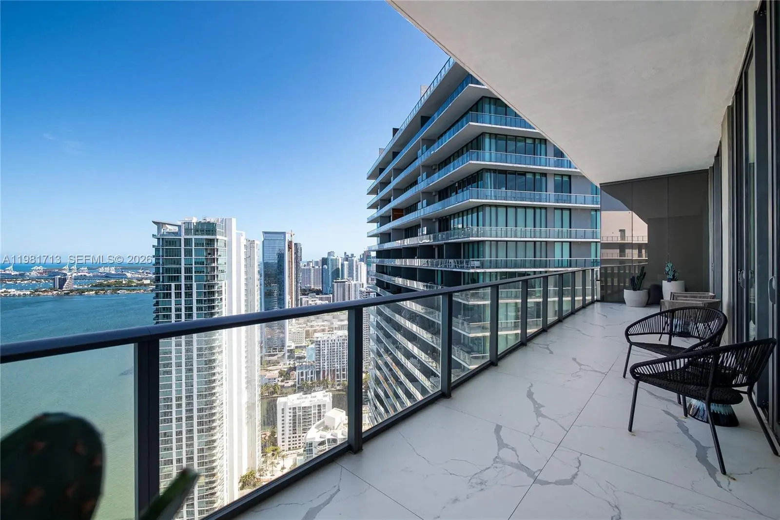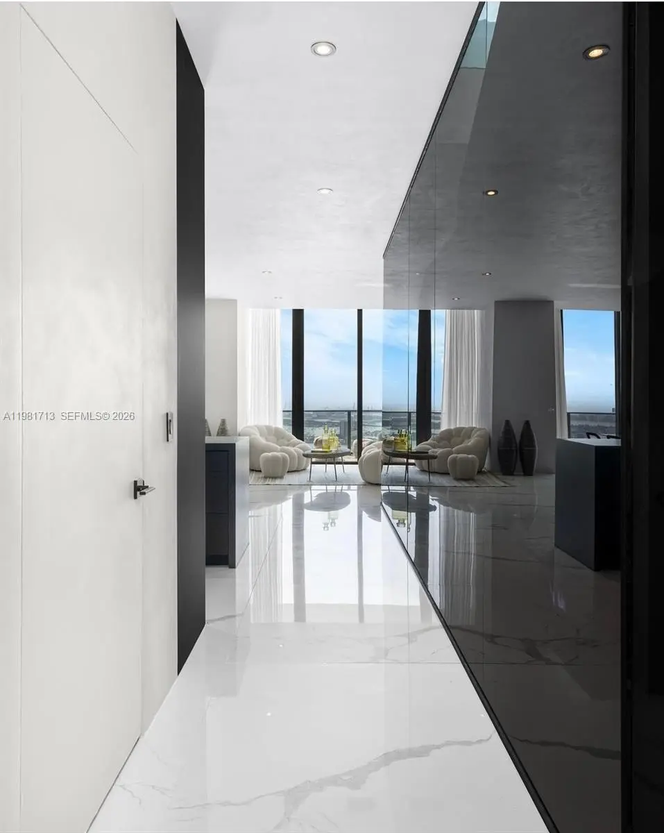 One of the most impressive penthouses in Miami This fully renovated two-level residence features a private rooftop terrace with sweeping bay and sunrise views, designed for serious entertaining. The outdoor space includes a full kitchen, Jacuzzi, multiple lounge areas, and a dedicated dining space - creating a true rooftop retreat above the city. Inside, over 2,100 sq ft of furnished living space offers 3 bedrooms, 3 bathrooms, and a den, all accessed via private elevator entry. The modern interior showcases floor-to-ceiling windows, oversized tile flooring, custom lighting, and a sleek designer kitchen with hidden cooktop, integrated speakers, and full smart home automation. Residents enjoy access to world-class amenities including a wine cellar, spa, tennis courts, bowling alley, and resort-style waterfront amenities. A rare penthouse offering that truly stands apart