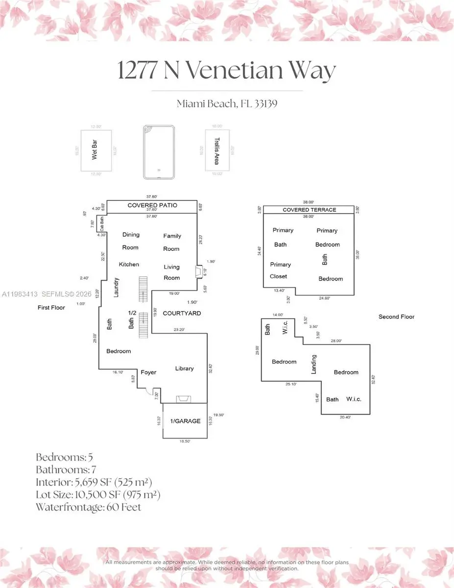 CONTEMPARY TROPICAL WATERFRONT ESTATE WITH PRIVATE FINGER-PIER DOCK FOR A 60’ YACHT This boater’s paradise offers 5 bedrooms and 7 bathrooms across 5,659 SF of interior living space, set on a 10,500 SF lot with 60 feet of prime waterfront. Designed for both privacy and entertaining, the estate features a wet bar, gazebo, and outdoor shower with cabana bath, all surrounded by mature hedges and secure gating for complete seclusion. A dramatic double-height foyer welcomes you into light-filled interiors with two distinct living areas and an open, flowing layout. Luxury finishes include herringbone oak flooring and hand-painted tile accents throughout. Built in 2006 and fully remodeled in 2022, the residence also includes a two-car garage and a spacious driveway offering ample additional parking. Enjoy the VIP Venetian Islands lifestyle, just moments from Sunset Harbour, Lincoln Road, and Miami Beach’s finest shopping, dining, and entertainment.