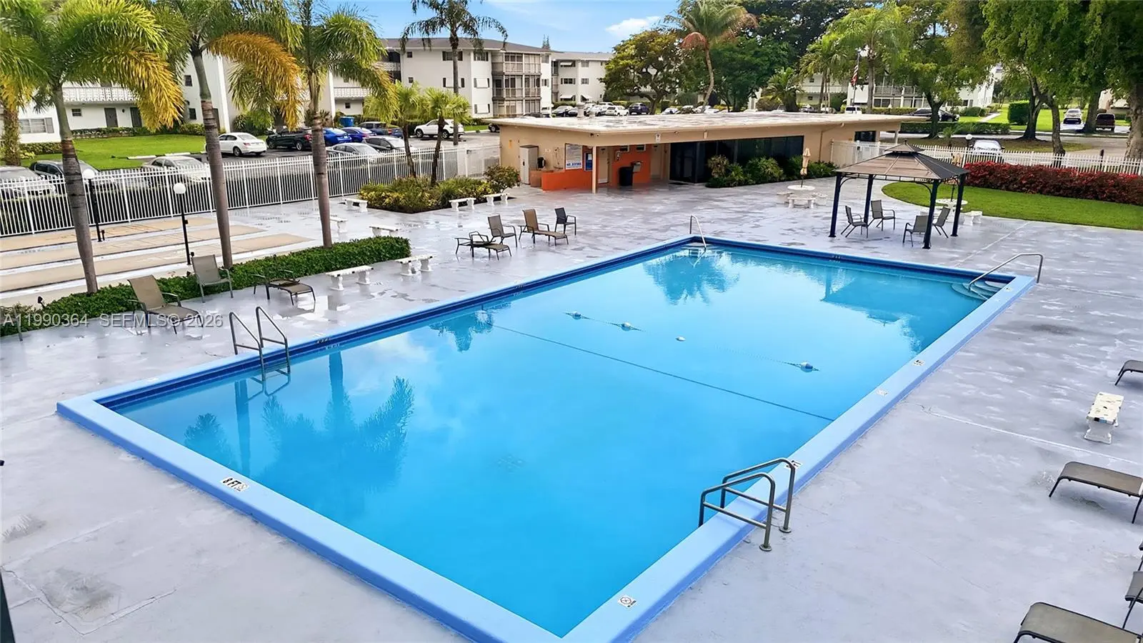 Welcome to Hillcrest! Located in a quiet cul-de-sac with direct access to a serene park and walking path around a beautiful pond, this charming 1BR/1BA condo on the third floor has been recently renovated. The unit features a new bathroom and an updated kitchen with new appliances, faucet, granite countertops, and a widened passthrough to the dining area. Additional upgrades include new flooring, extra closet space, new interior plantation doors, no popcorn ceilings, and new light fixtures. Enjoy peaceful backyard views from the screened balcony. The building was painted in 2025, the roof is only three years old, and the 40-year inspection has been completed. No assessments and reserves are fully funded. This self-managed building offers low maintenance fees and a recently remodeled laundry room on each floor. Amenities include a clubhouse and heated pool across the street, two additional pools, a community gym, and two BBQ areas. Residents enjoy 5 miles of scenic walking trails along the lakes and access to three public golf courses, with optional pickleball and tennis memberships. Prime location just minutes from Hollywood Beach, shopping, dining, Hard Rock Hotel & Casino, the Turnpike, Fort Lauderdale Airport, I-95, Gulfstream Park, and Aventura Mall. No pets. No rentals for the first 2 years. Easy to show—you’ll love to call this home!