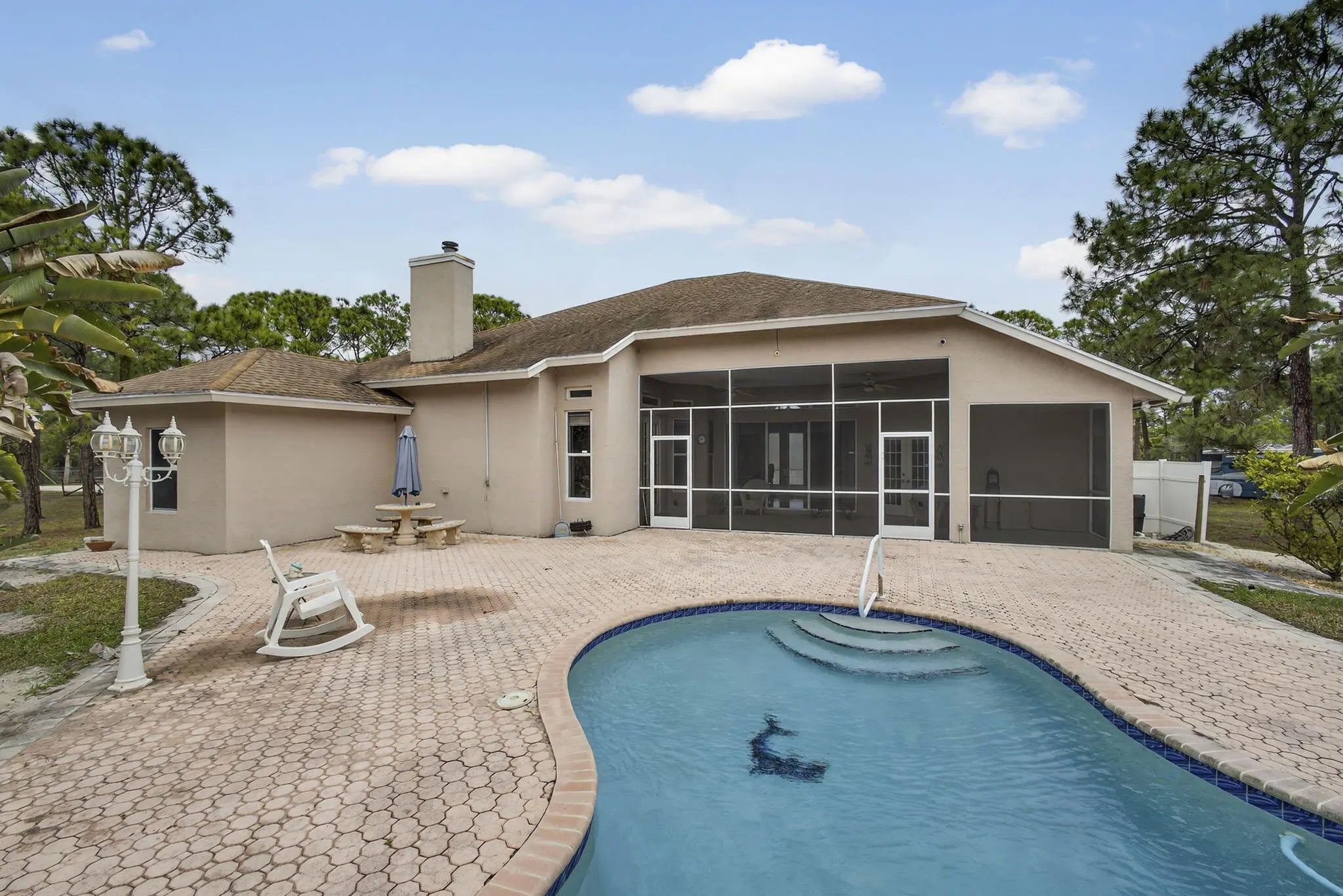 Light and Bright Spacious Home, Kitchen Features Lots of Cabinets, Breakfast Bar, Family Room, Formal Dining Room, Formal Living Room, Office, Furnished, Screened Lanai with Pool, Fully Fenced, Includes Electric, Internet, Lawn Care, Pool Service, No HOA, Close to Schools and Shopping