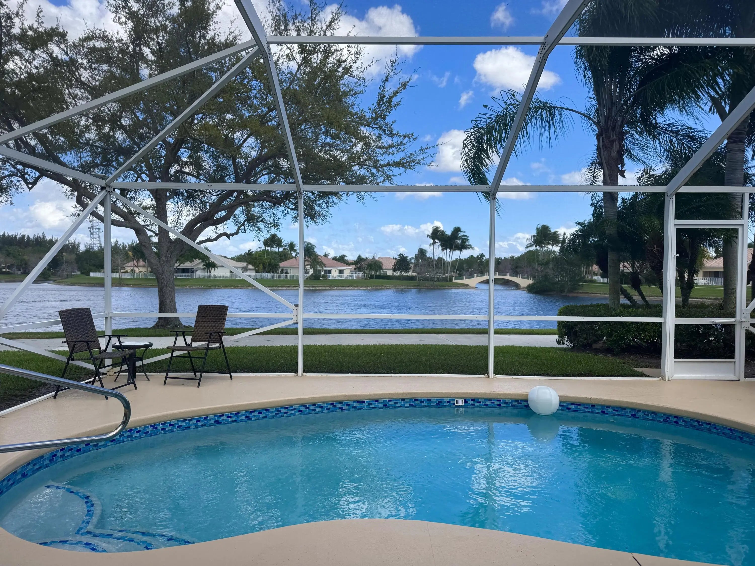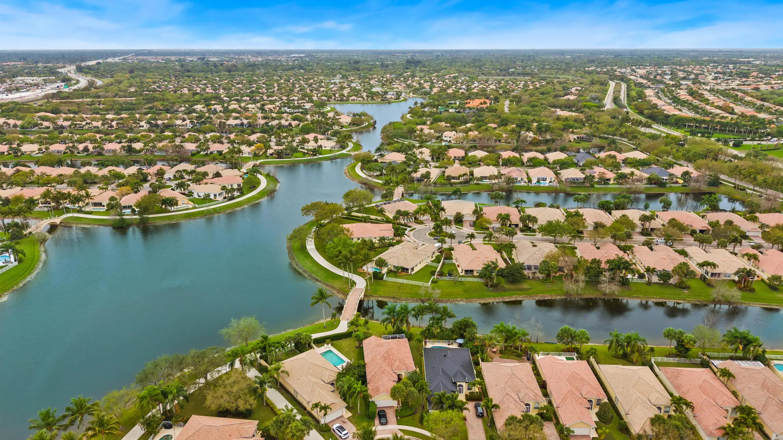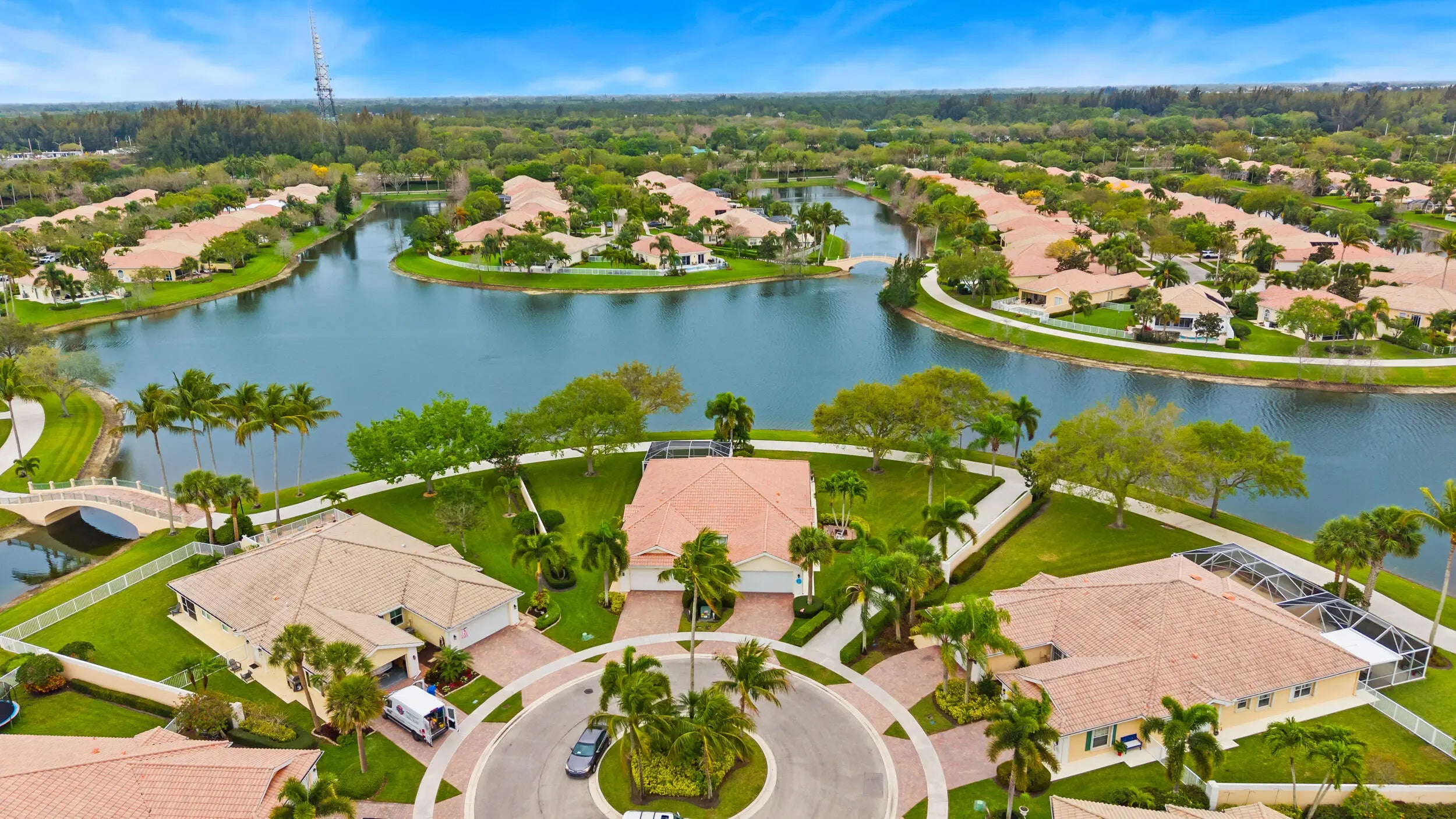 Looking for your own slice of paradise?Well, look no further!Enjoy panoramic lake views, picturesque Venetian-style bridges & stunning skies right from your home!This beautifully maintained 2/2 Capri model in VillageWalk offers an exceptional opportunity for you! Tucked away at the end of a quiet cul-de-sac, this townhome sits on one of the community's most desirable wide lots w/ a beautiful side yard.Whether you're unwinding on the semi-enclosed lanai or taking a dip in your private screened-in pool, you'll experience breathtaking sunrises, serene water activities like paddleboarding & kayaking & unforgettable moonlit reflections on the water.Special features incl. a spacious open floorpan, plantation shutters, extra closet space, impact windows/accordion shutters & a resurfaced pool. VillageWalk Wellington offers a true resort-style lifestyle, featuring two heated pools, a state-of-the-art 24-hour fitness center, and courts for tennis, pickleball, basketball, and bocce. There's also a playground for children and a scenic 4-mile path perfect for biking or golf cart rides throughout the community's 954 homes. Residents enjoy reasonable HOA fees that include a 24-hour guard-gated entrance, beautifully maintained landscaping, and a vibrant town center hosting a variety of social activities. Exciting additions are on the way, including an on-site family restaurant, hair salon, pet grooming services, and a private real estate office.
