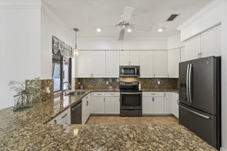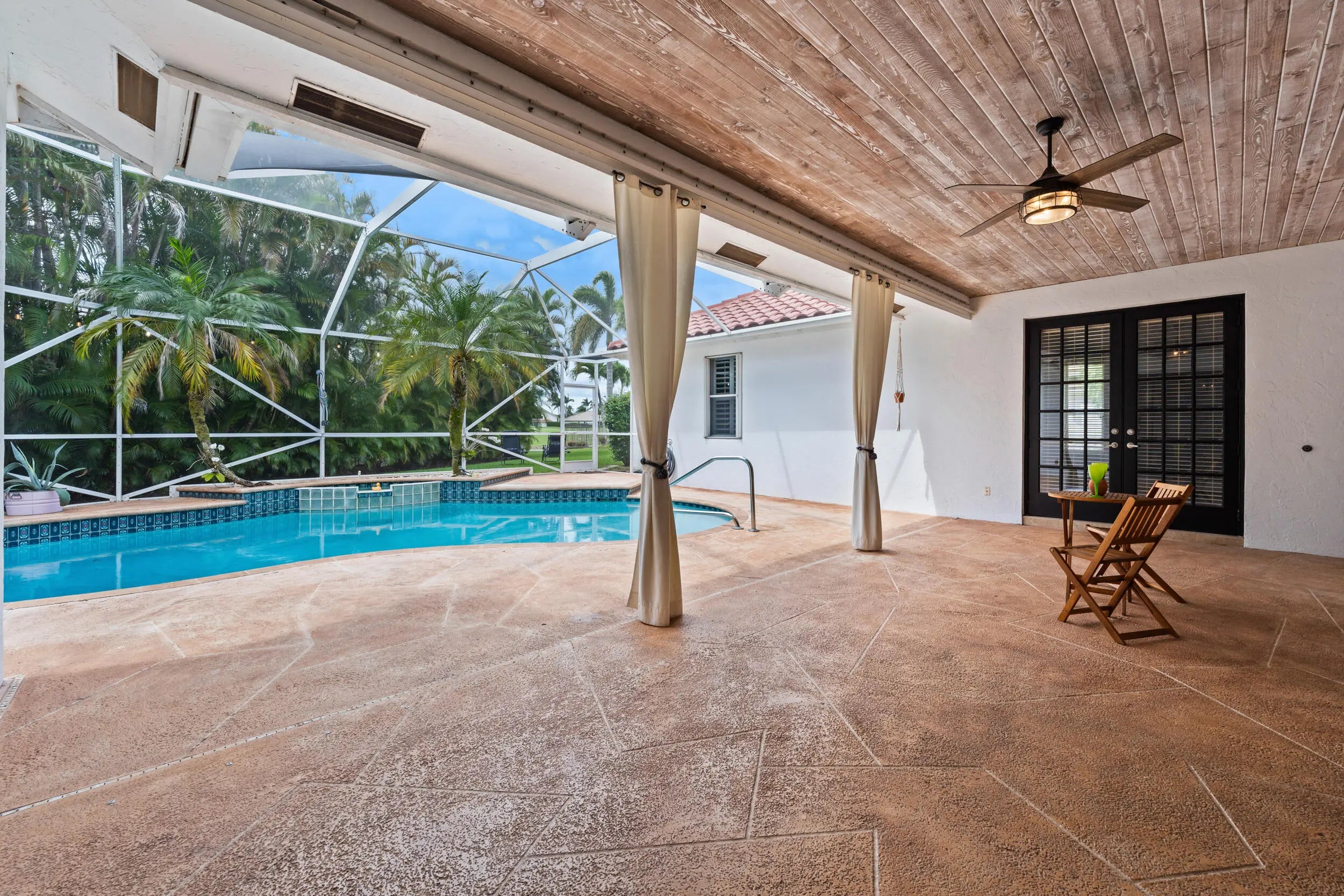 Welcome to your private retreat in the heart of Wellington! This beautifully maintained single family home is ideally situated in a spacious corner lot within a quiet cul-de-sac in a prestigious gated community surrounded by a golf course. Featuring 3 bedrooms plus a versatile den complete with a closet and easily used as a 4th bedroom. This home offers flexibility for families, guests, or a home office. Vaulted ceilings and 4 sets of French doors fill the home natural light and add timeless charm throughout. Designed for both comfort and peace of mind, the property includes full hurricane protection, a convenient side load garage and classic plantation shutters. Step outside to your own tropical oasis: a stunning screened enclosed pool area with an oversized covered lanai, perfect for entertaining or relaxing year round, The lush, mature landscaping creates a private backyard setting. This is Florida living at its finest. Combining space, style and serenity in one exceptional home. Recent enhancements include New HVAC, New Hot Water Heater, New Pool Pump, New Sprinkler Pump, Newer Kitchen Appliances, Roof 2015. Located in the heart of Wellington, with easy access to the Florida Turnpike and I-95, Lakefield West is within minutes of The Wanderers Club, Palm Beach International Equestrian Center, International Polo Club Palm Beach, Wellington National Golf Club, and A-rated schools just to name a few!