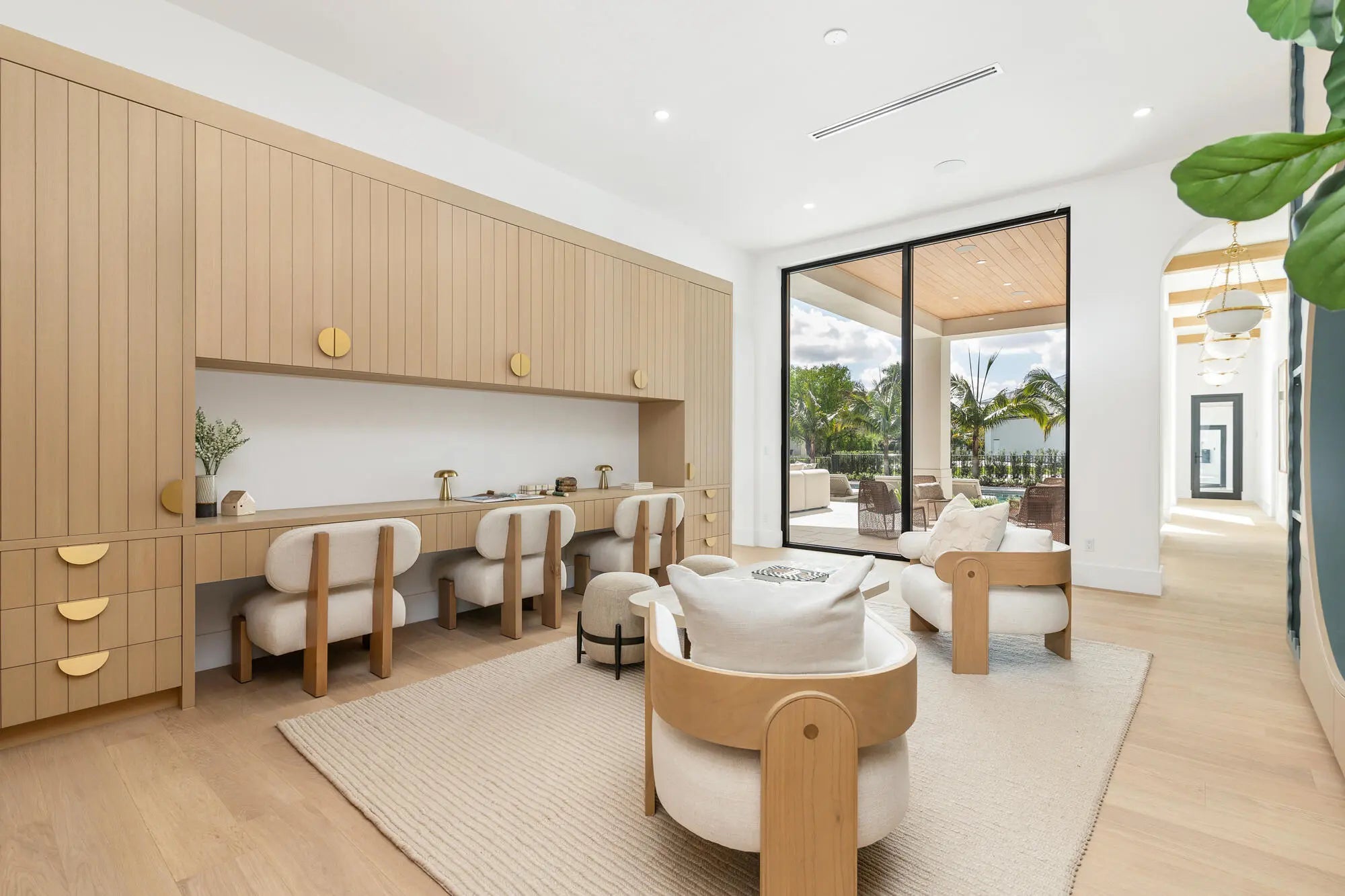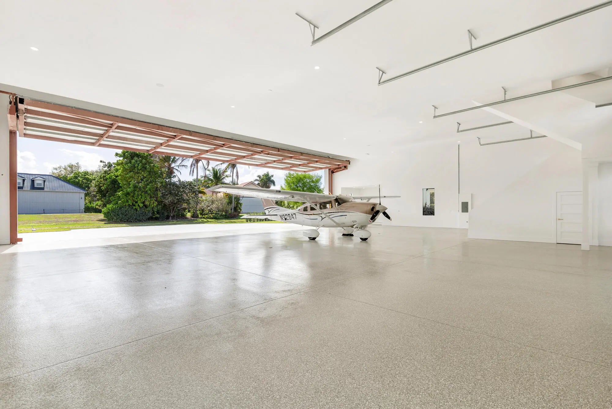 The most anticipated home in Aero Club has arrived. Designed by Diaz & Lang with interiors by HW Interiors, this custom 5 Bed 6.2 Bath estate sits on a lot and a half and has just been completed, ready for its first owner. Aero Club is one of South Florida's most coveted addresses, an aviation community unlike any other with its own private runway. This property delivers on every level: 8,400+/- sq ft under air across the main residence, a 70'x60' (4,400+/- sq ft) primary epoxy hangar, and a third structure with an additional 2,000+/- sq ft of epoxy hangar space all attached to the main home via covered breezeway. The kitchen features a custom fluted pill-shaped oak island accompanied by a Wolf six-burner cooktop with griddle, Wolf double oven and warming drawer, Sub-Zero panel-ready refrigerator and freezer, and a Bosch panel-ready dishwasher, stone backsplash with an in-wall sliding niche for spice storage, pot filler, and concrete pendant lighting overhead. The island features pop-up outlets and touch-latch cabinetry for ample storage. The hidden pantry features a second dishwasher, Wolf microwave and warming drawer, GE panel-ready ice maker, sub zero fridge and freezer, laundry sink and additional cabinetry. The great room fireplace is flanked by floor-to-ceiling white concave wood fluting, built-ins with fluted wood backing and floating shelves, aged brass sconce lighting, and a herringbone brick firebox framed in mitered-edge stone. Warm, architectural, and entirely custom. The wine pantry features a Sub-Zero fridge, stone bookmatched back wall, floating white oak shelves, and fluted cabinetry with touch-latch doors making this a showcase for any wine collection. The primary suite bathroom is one of many jaw-dropping spaces in the home. A solid concrete 72" soaking tub, floor-to-ceiling honed marble shower, sinks with brushed brass custom stone handles, mosaic flooring throughout, a custom stone-trimmed mirror, and a full thermostatic, waterfall, and handheld shower system. Every detail was chosen with intention. Each additional bathroom carries its own character — Calacatta gold marble and a designer tub in Bath 1, penny round matte white flooring and a two-inch stone countertop in Bath 2, Moroccan mosaic tile and a custom integrated stone vessel sink in the powder bath, and a green absinthe trapezoid tile with vintage brass fixtures in the cabana bath. No two bathrooms feel the same. The dedicated fitness room pairs with a full steam suite featuring a Thermasol touch control system with Bluetooth capability, a Brizo Odin thermostatic shower system, and floor-to-ceiling stone across walls, floors, and ceiling. The playroom/office features a 141-inch built-in desk, cork board, and custom rift-cut white oak cabinetry. Upstairs, a second bar with Sub-Zero fridge, GE nugget ice maker, and Wolf microwave keeps the second level stacked for those perfect movie nights or hangouts. Outside, the summer kitchen is built around a Piasentina sapiens stone waterfall countertop, Wolf outdoor grill, two Wolf built-in burners, and a Sub-Zero panel-ready refrigerator — all under a Tradewinds outdoor hood. The heated/chilled saltwater pool & spa are surrounded by covered outdoor living areas which make this backyard perfect for year round swimming and entertainment. The backyard faces due west which provides picturesque sunsets. Homes finished to this level do not come around often. This estate is ready for occupancy! Aero Club is located just minutes away from the Winter Equestrian Festival. Wellington Aero Club is a private aeronautical community located in Wellington, Florida. It features 240 custom-built homes on one-acre lots, many with private hangars, and a lighted and paved 4,000 foot runway. There is also AV Gas available directly at the airport.