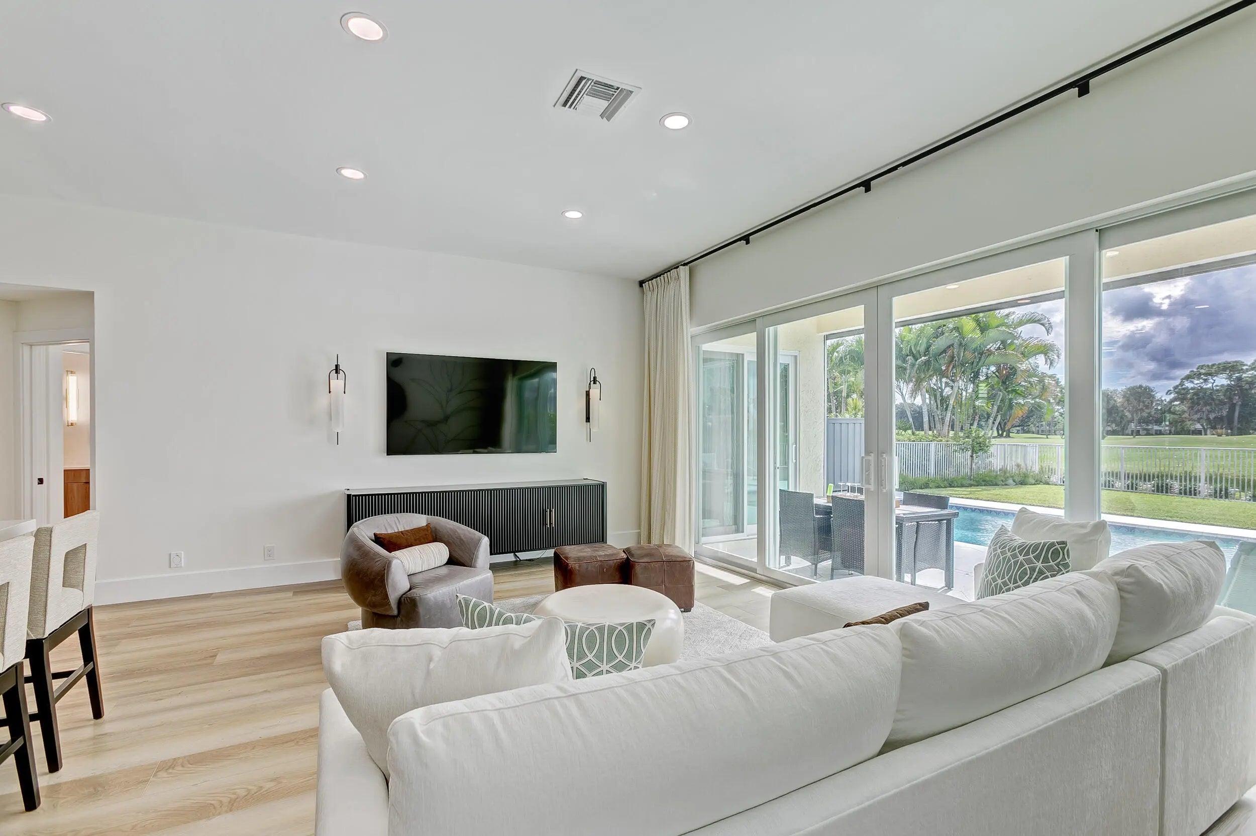The most stunning home you have ever seen. Exclusive double gated community of Eagleton. Complete and perfect renovation, wide and long golf and sunset views, impact glass, open reimagined kitchen, the most complete renovation with decorator touches. High end furnishings. Seating for 8 for dinner inside or outside. With outdoor Italian Pizza kitchen, fire pit, gorgeous heated pool, electric shades, more more more. Book the winter 2026-2027 season now!!