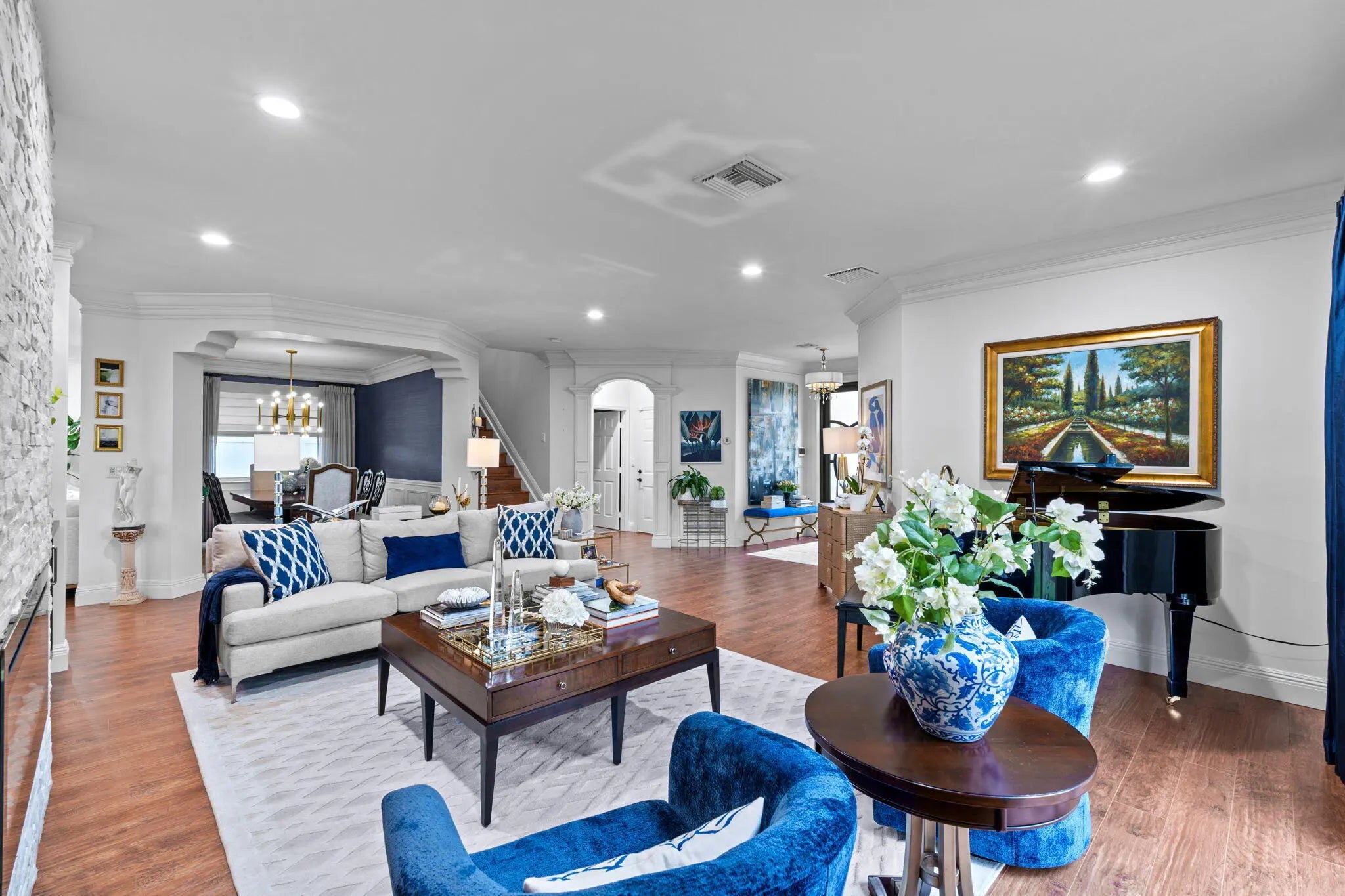 Welcome Home to 9870 Shepard Place in Olympia... where thoughtful design meets everyday comfort in one of Wellington's most sought-after communities. From the moment you walk in, you feel it. The natural light, the clean lines, the subtle upgrades that make the entire home feel elevated yet inviting. With 5 bedrooms plus a media room on the main level, this home offers the flexibility today's lifestyle demands — whether it's movie nights, a home office, or space for everyone to spread out and unwind. The main living areas are anchored by a stunning split-face rock feature wall with a built-in fireplace, creating a warm, welcoming focal point that makes the house feel like home. Fresh paint, smooth ceilings, upgraded laminate flooring, and recessed lighting throughout give the space a modern, move-in ready feel. The kitchen has been beautifully remodeled with KitchenAid Architect Series appliances, soft-close cabinetry, and thoughtful pull-out storage — designed for both everyday living and effortless entertaining. Upstairs, the primary suite feels like a true retreat with custom built-ins in the closet, upgraded mirrors, and refined finishes that carry throughout the home. Guest bathrooms have been tastefully remodeled, and every detail — from zebra blinds to high-end chandeliers and double crown molding — has been carefully selected. Set on a large lot and complete with impact windows and doors, this home offers both beauty and peace of mind. And beyond the home itself, Olympia delivers a lifestyle that's hard to match — resort-style amenities, a vibrant community, and a location close to Wellington's top-rated schools, shopping, dining, and world-renowned equestrian venues.