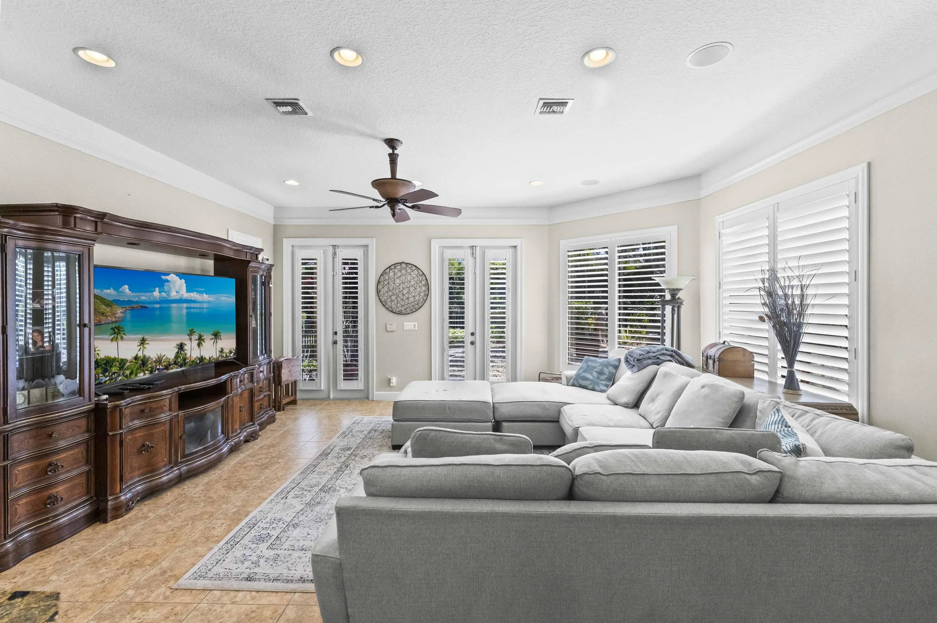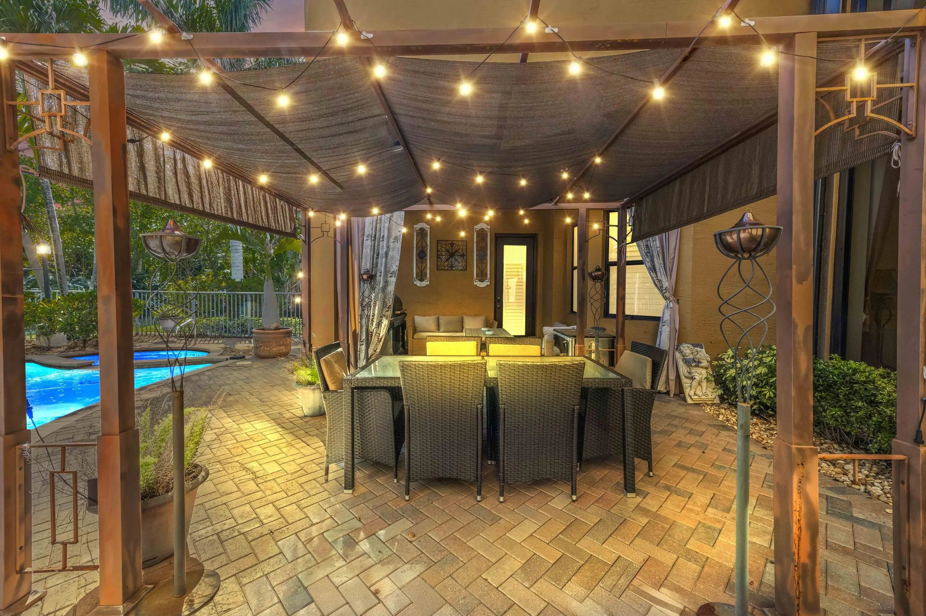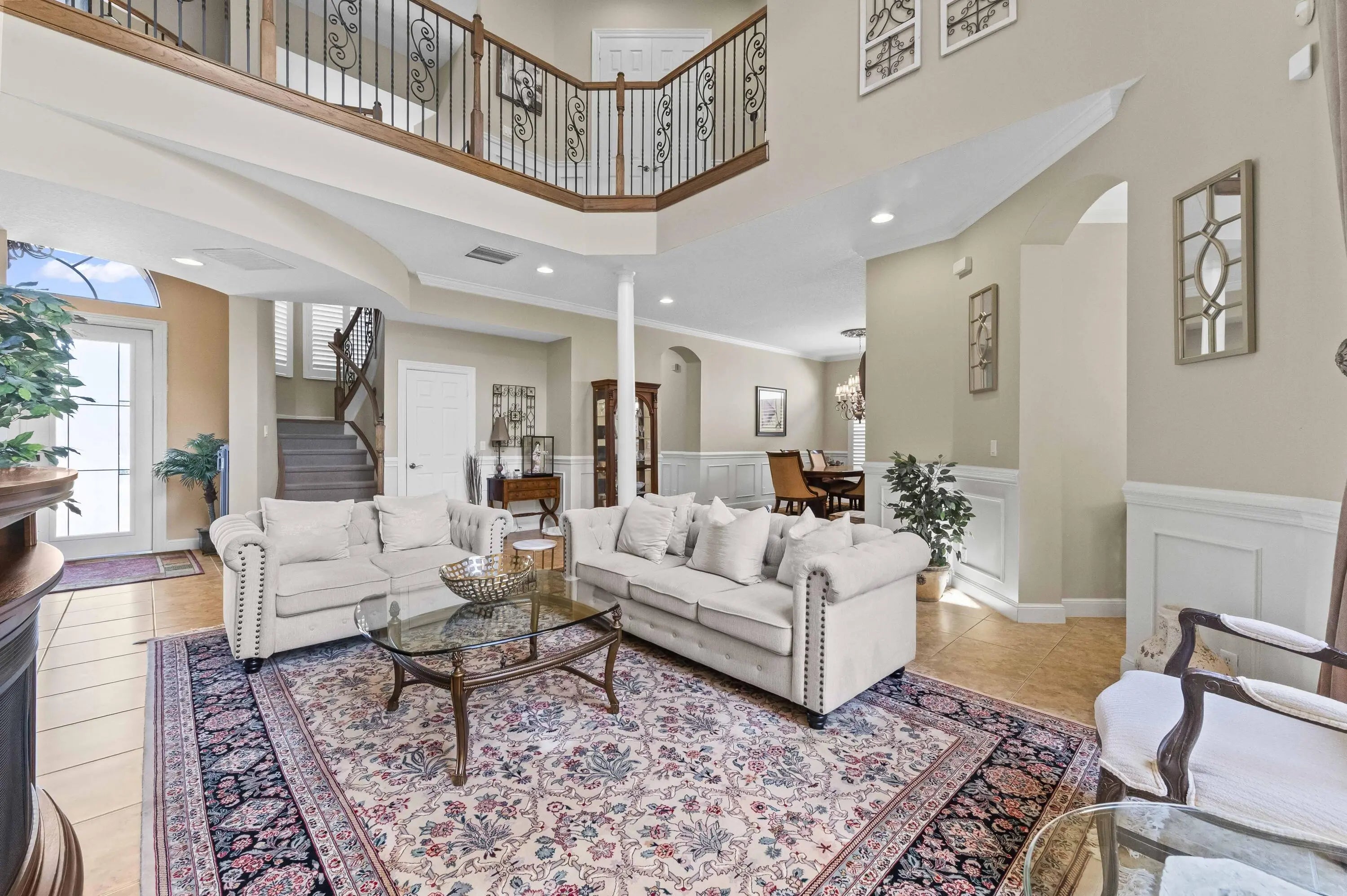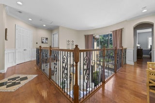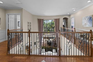 Nestled within one of Wellington's most desirable gated communities, this pool home with guest house/in-law suite, offers an elegant blend of comfort, space, and timeless design. From the moment you arrive, the home's stately façade, paver driveway, and lush tropical landscaping create a warm and inviting first impression. Inside, soaring ceilings and expansive windows fill the living spaces with natural light, highlighting refined finishes and a thoughtfully designed open layout that flows effortlessly from room to room. The heart of the home is both stylish and functional, featuring a spacious kitchen with rich wood cabinetry, granite countertops, and a large center island that overlooks a welcoming family room—perfect for everyday living and entertaining. Formal living and dining areas provide additional space for gatherings, while architectural details such as arched entryways, decorative moldings, and a dramatic two-story living room add a sense of sophistication. The first floor boasts private in-law/attached guest apartment complete with a full kitchen & full bathroom. Upstairs, the huge master suite is a true paradise, complete with separate bathrooms for him & her. Generously sized guest bedrooms and well-appointed baths offer comfort and privacy, creating a retreat-like atmosphere throughout. Step outside to enjoy the serene South Florida lifestyle, where indoor-outdoor living comes naturally. Large glass doors open to a covered patio area ideal for relaxing or hosting guests, all surrounded by greenery that enhances both beauty and privacy. Located in the heart of Wellington, this home is just minutes from top-rated schools, world-class equestrian venues, shopping, dining, and everything that makes this area so sought after. This is a rare opportunity to experience refined living in a prime location.