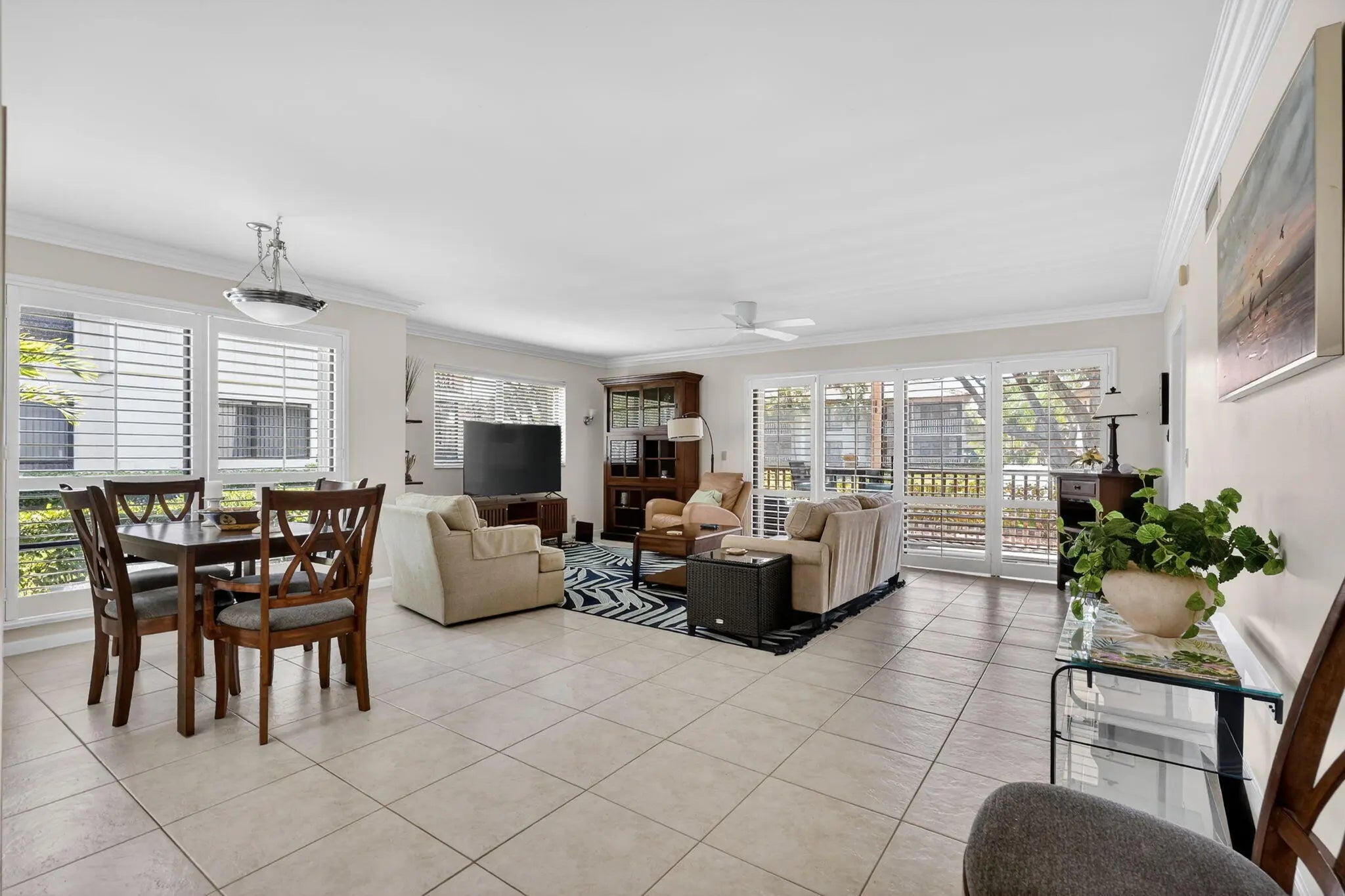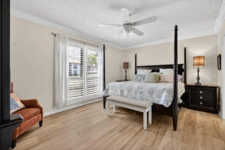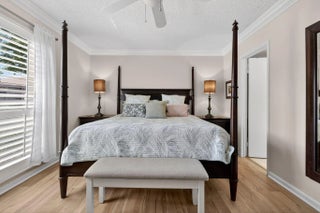 Rarely available first-floor corner Tennis Villa with peaceful water views and abundant natural light. Spacious great room with tile flooring throughout. Updated kitchen with stainless steel appliances and generous storage. Covered, screened lanai offers a comfortable outdoor space to relax and enjoy the view. Features include built-in closets, plantation shutters, crown molding, accordion storm shutters, and a separate laundry room. Ideal for seasonal use, full-time living, or investment in an investor and pet-friendly community with a flexible rental policy. Just a short walk to the community pool. Located in PGA National with optional golf, tennis, and social memberships available.