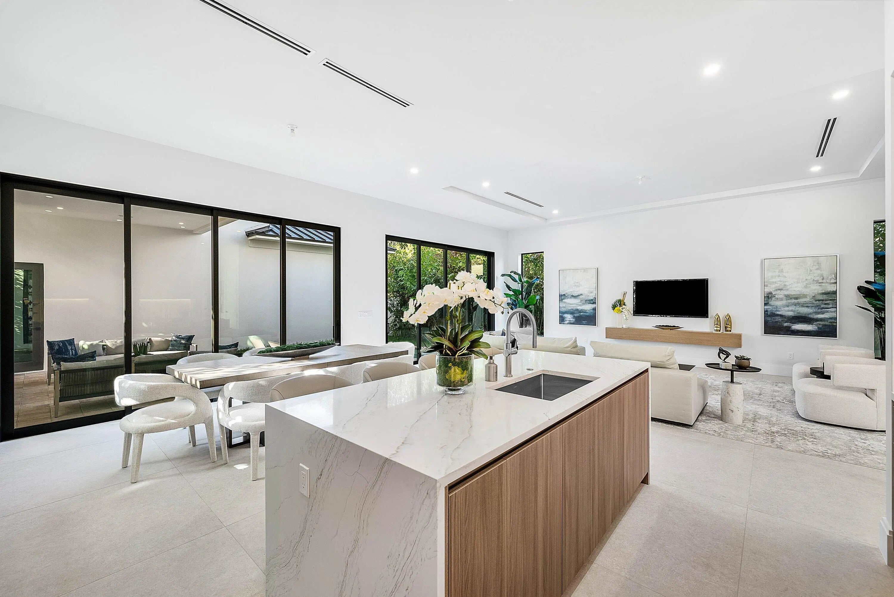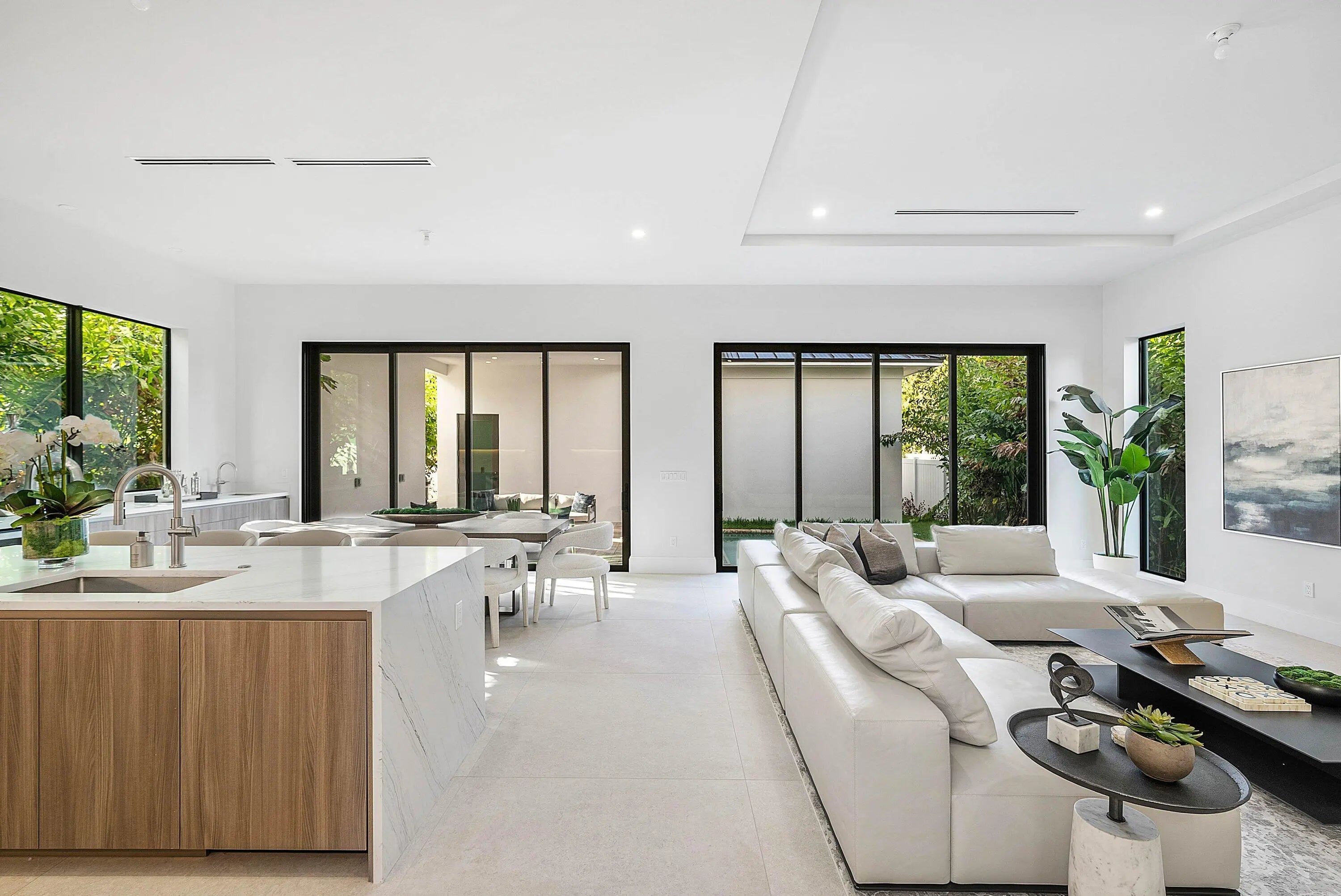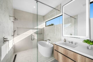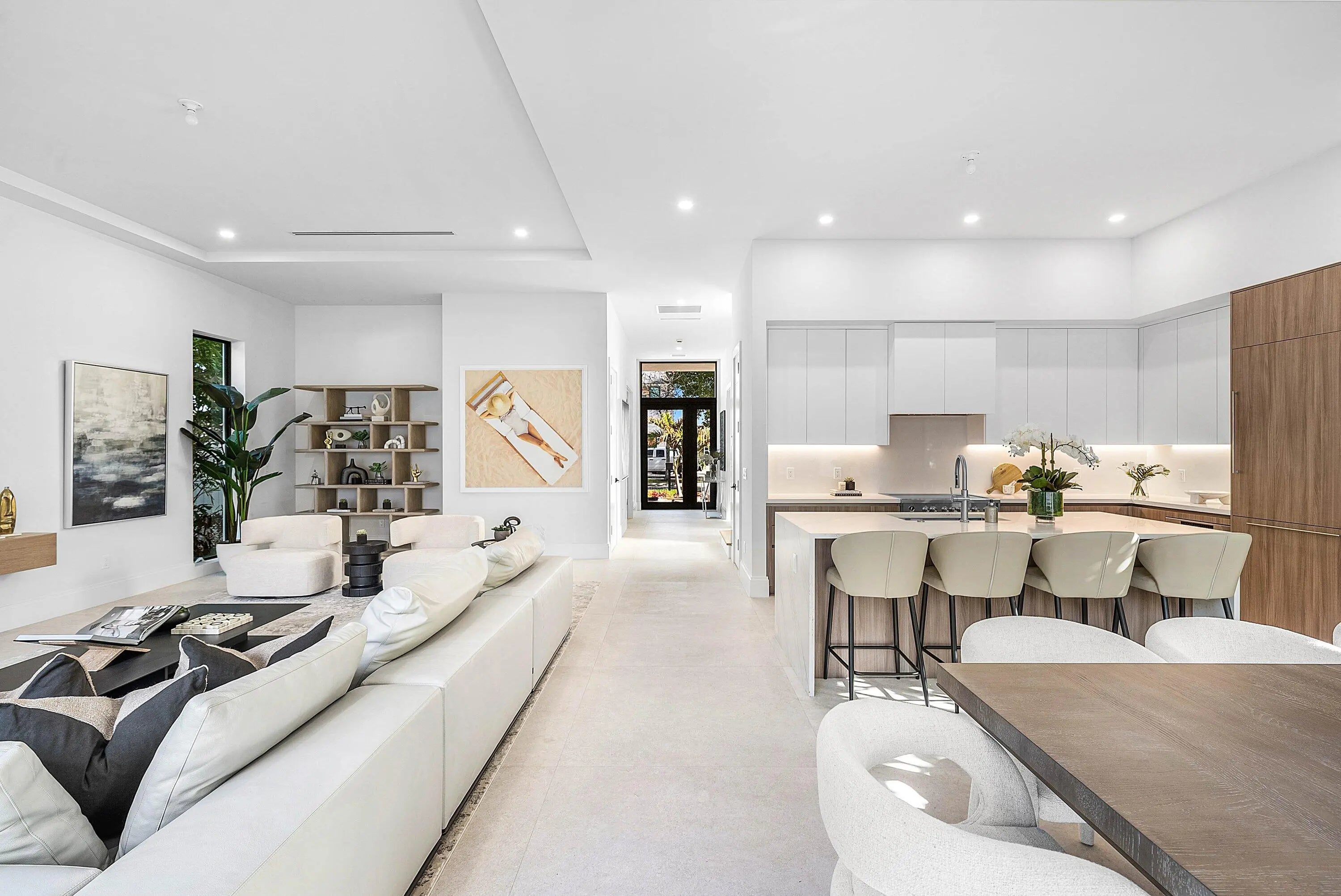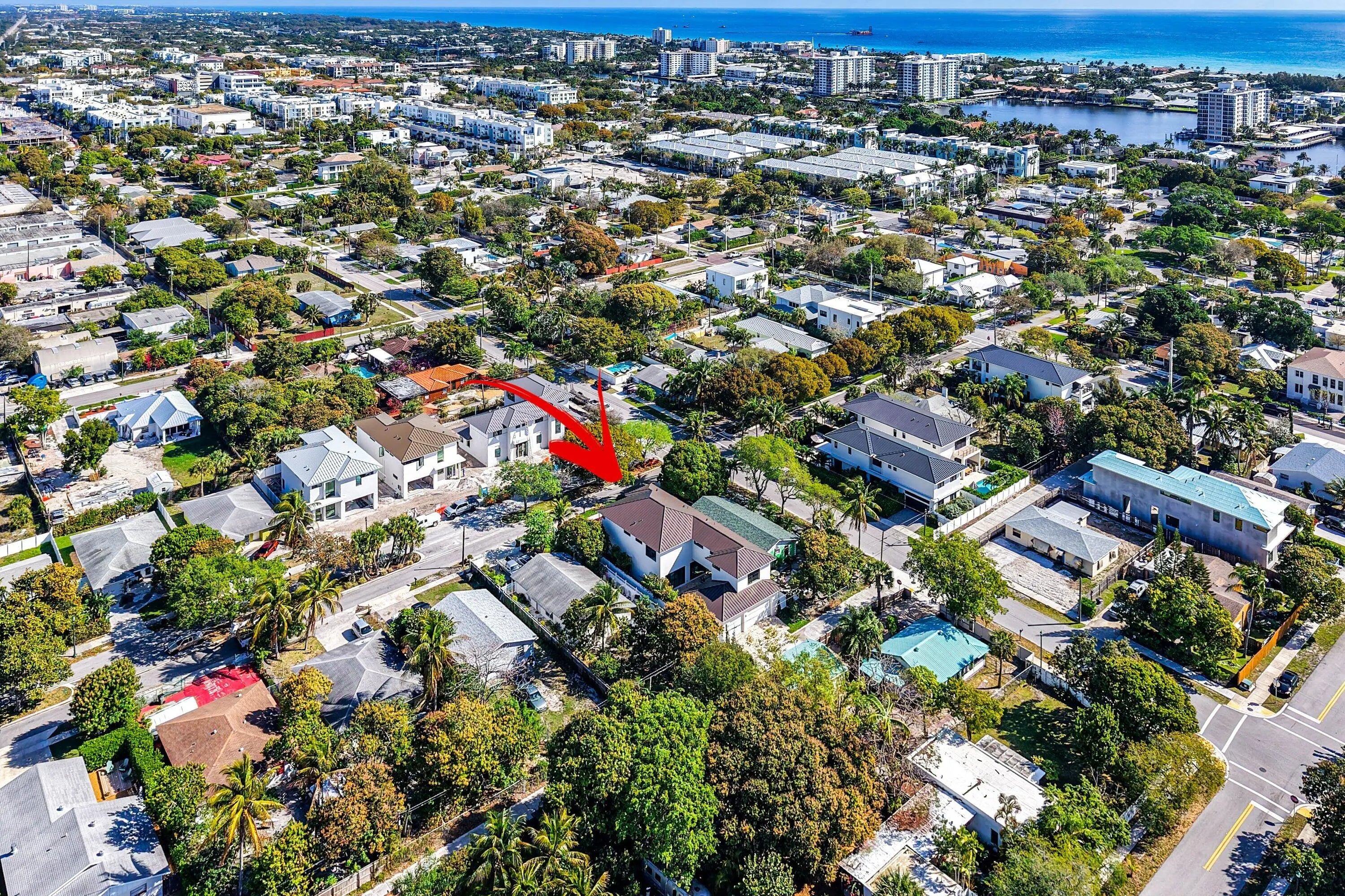 Exquisite new contemporary estate by Marc Julien in East Delray Beach, offering 5 bedrooms, an office, and a three-car garage. The open-concept main level features two guest suites, a great room, dining area, and a chef's kitchen with an oversized island. Upstairs includes a private primary suite with dual walk-in closets and a spa-style bath, plus three ensuite bedrooms and a loft. Built with impact windows and doors, the home offers quality construction, warm neutral finishes, abundant natural light, and seamless indoor-outdoor flow. The backyard features a covered loggia, tropical landscaping, and a saltwater pool and spa. Located in a highly walkable area near the beach, Atlantic Avenue, and top dining and shopping.