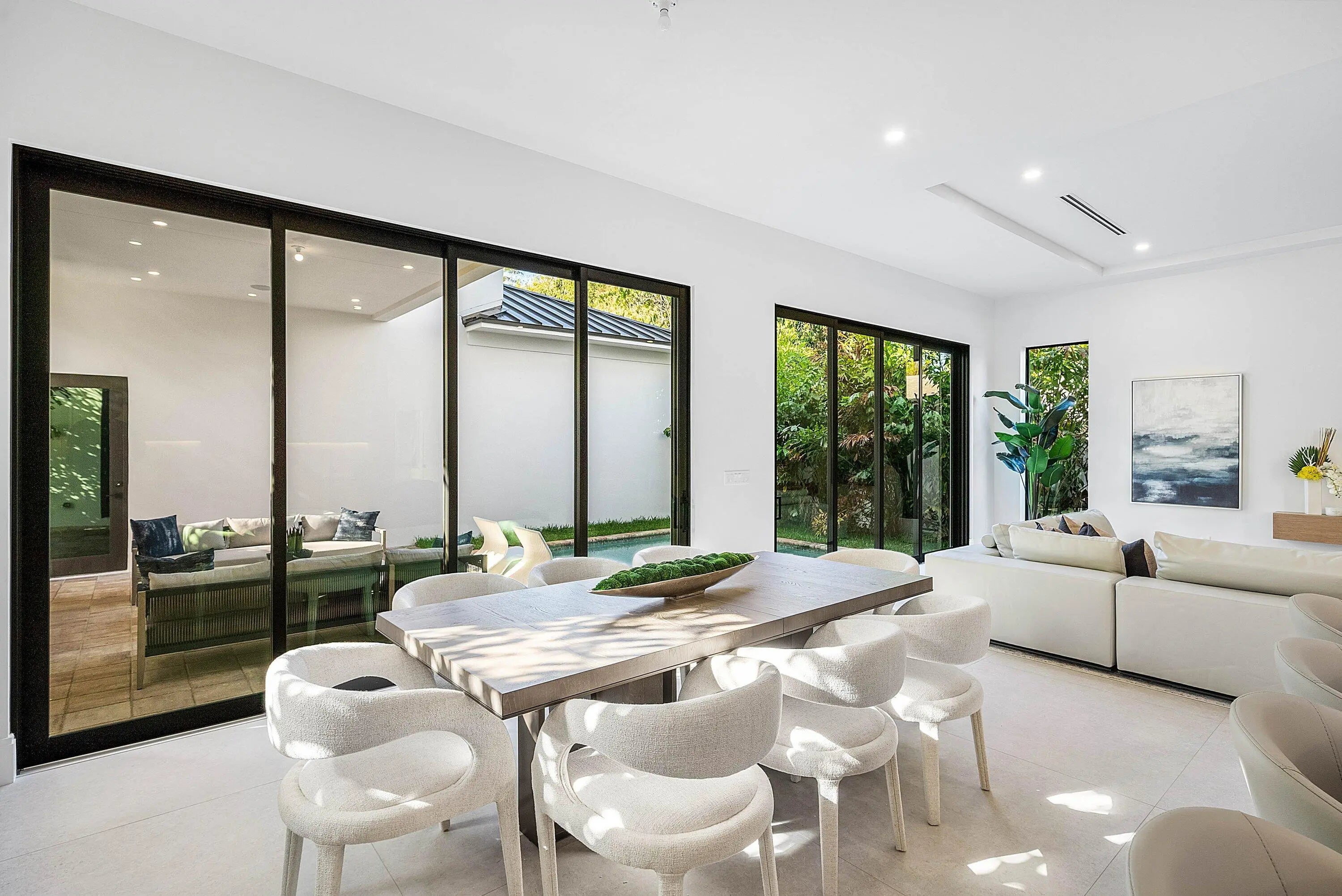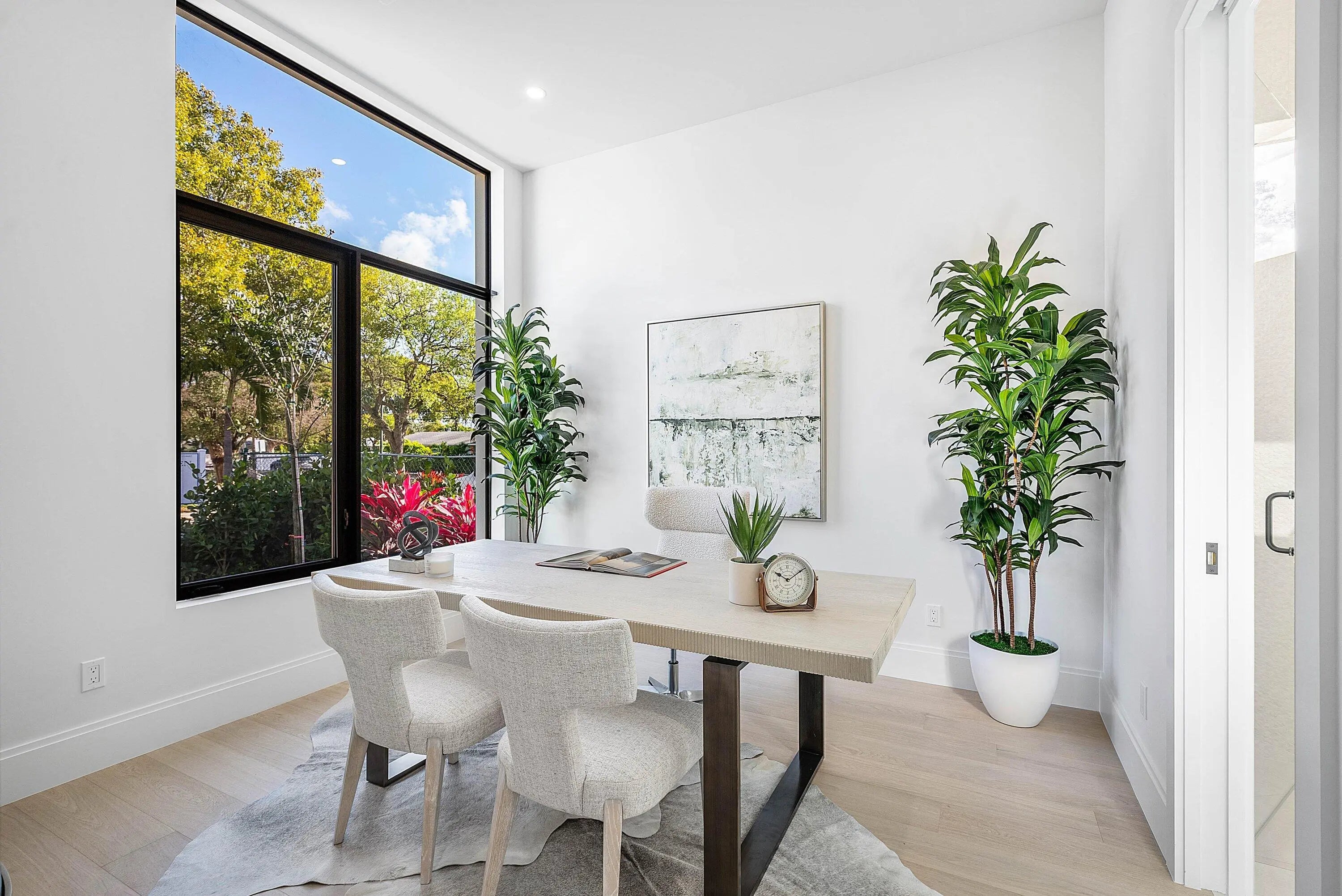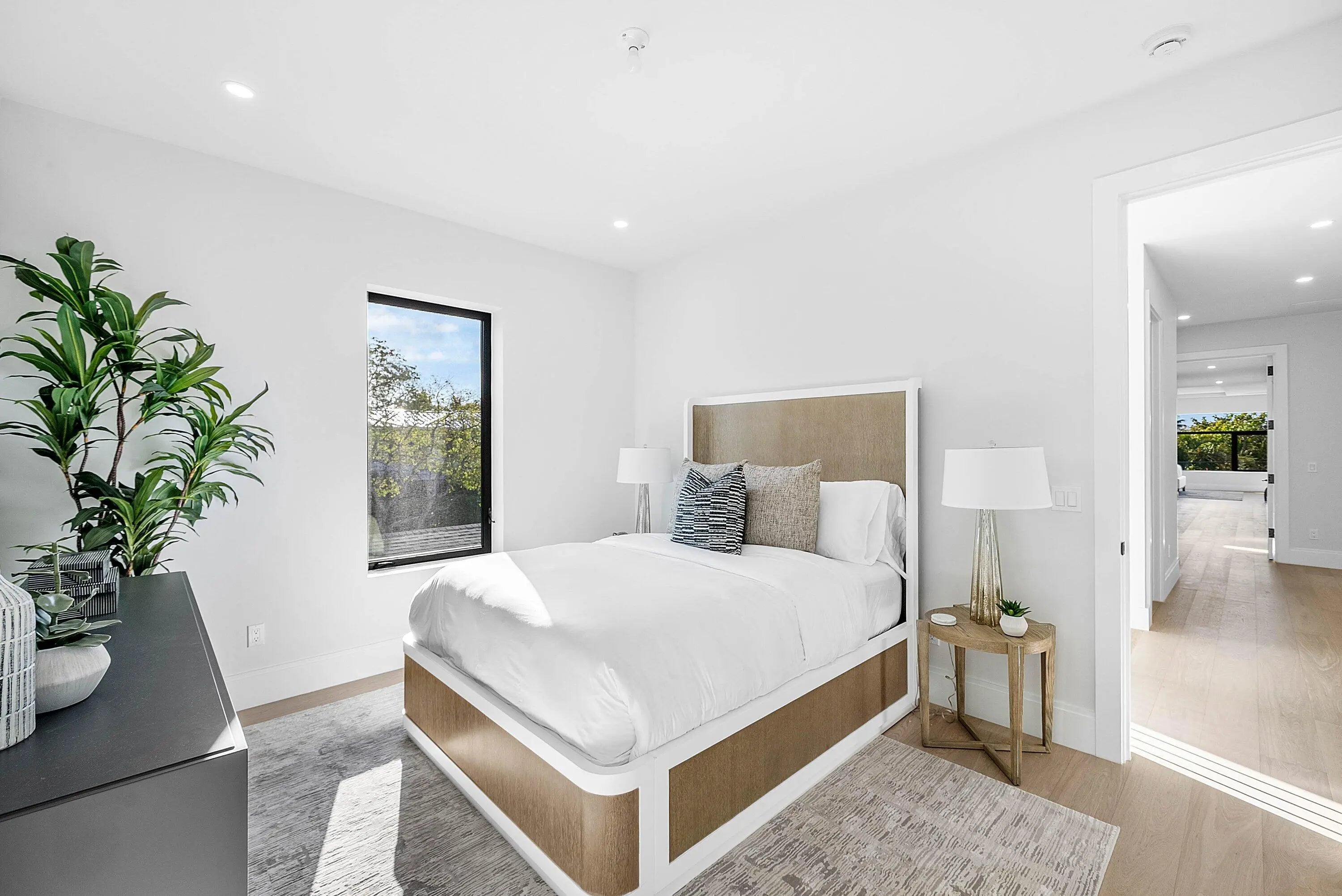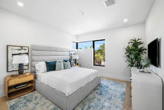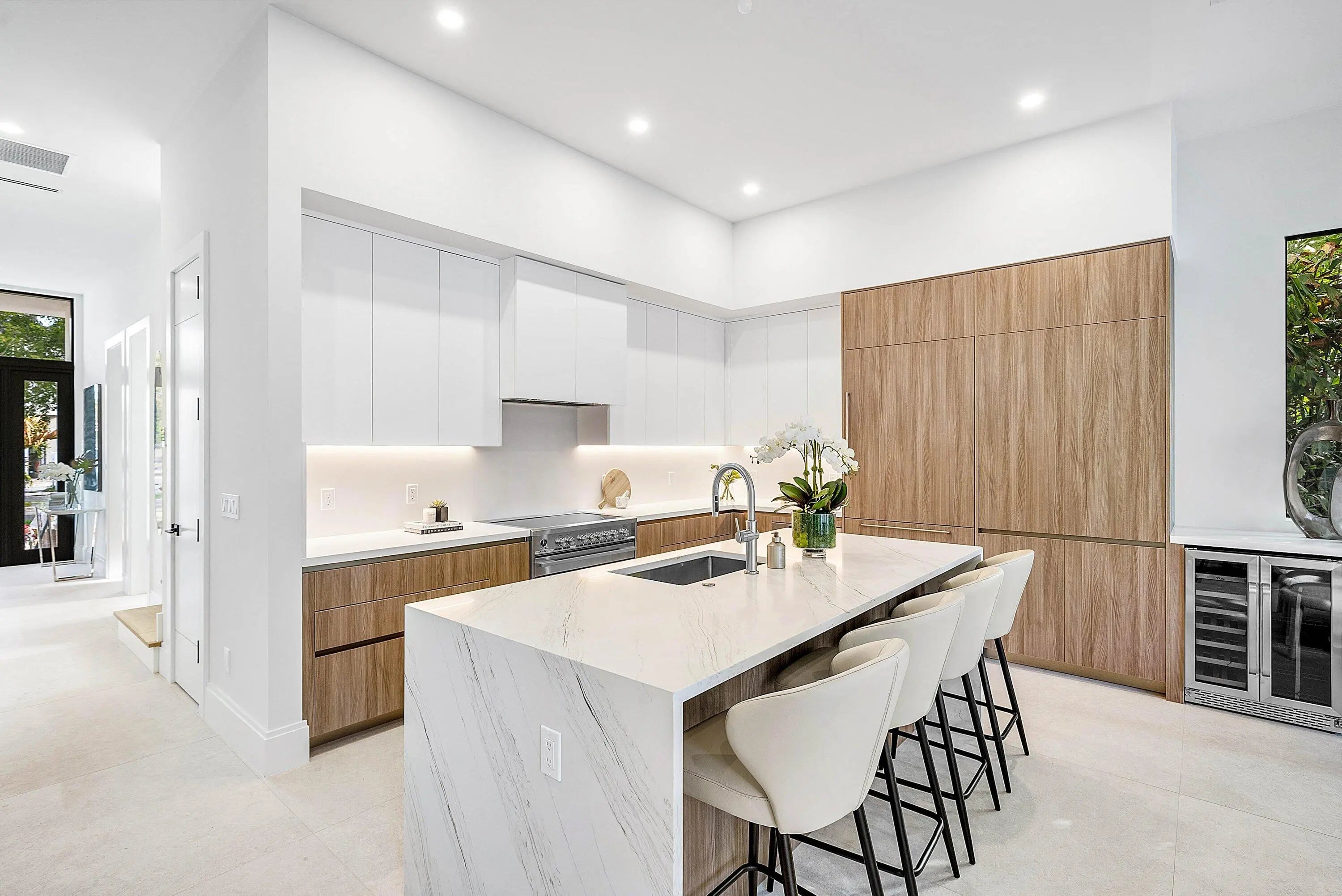 Exquisite new contemporary estate by Marc Julien in East Delray Beach, offering 5 bedrooms, an office, and a three-car garage. The open-concept main level features two guest suites, a great room, dining area, and a chef's kitchen with an oversized island. Upstairs includes a private primary suite with dual walk-in closets and a spa-style bath, plus three ensuite bedrooms and a loft. Built with impact windows and doors, the home offers quality construction, warm neutral finishes, abundant natural light, and seamless indoor-outdoor flow. The backyard features a covered loggia, tropical landscaping, and a saltwater pool and spa. Located in a highly walkable area near the beach, Atlantic Avenue, and top dining and shopping.