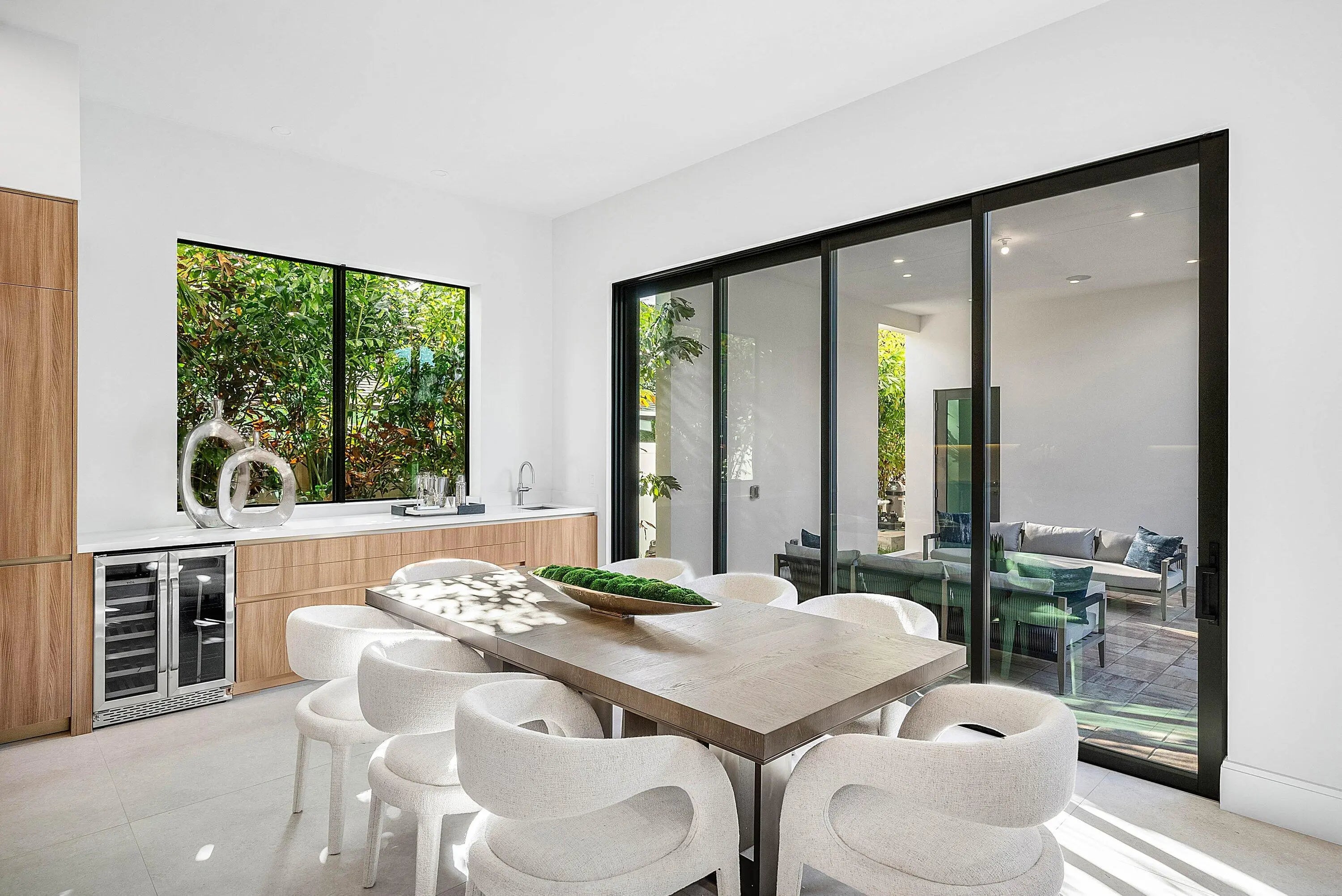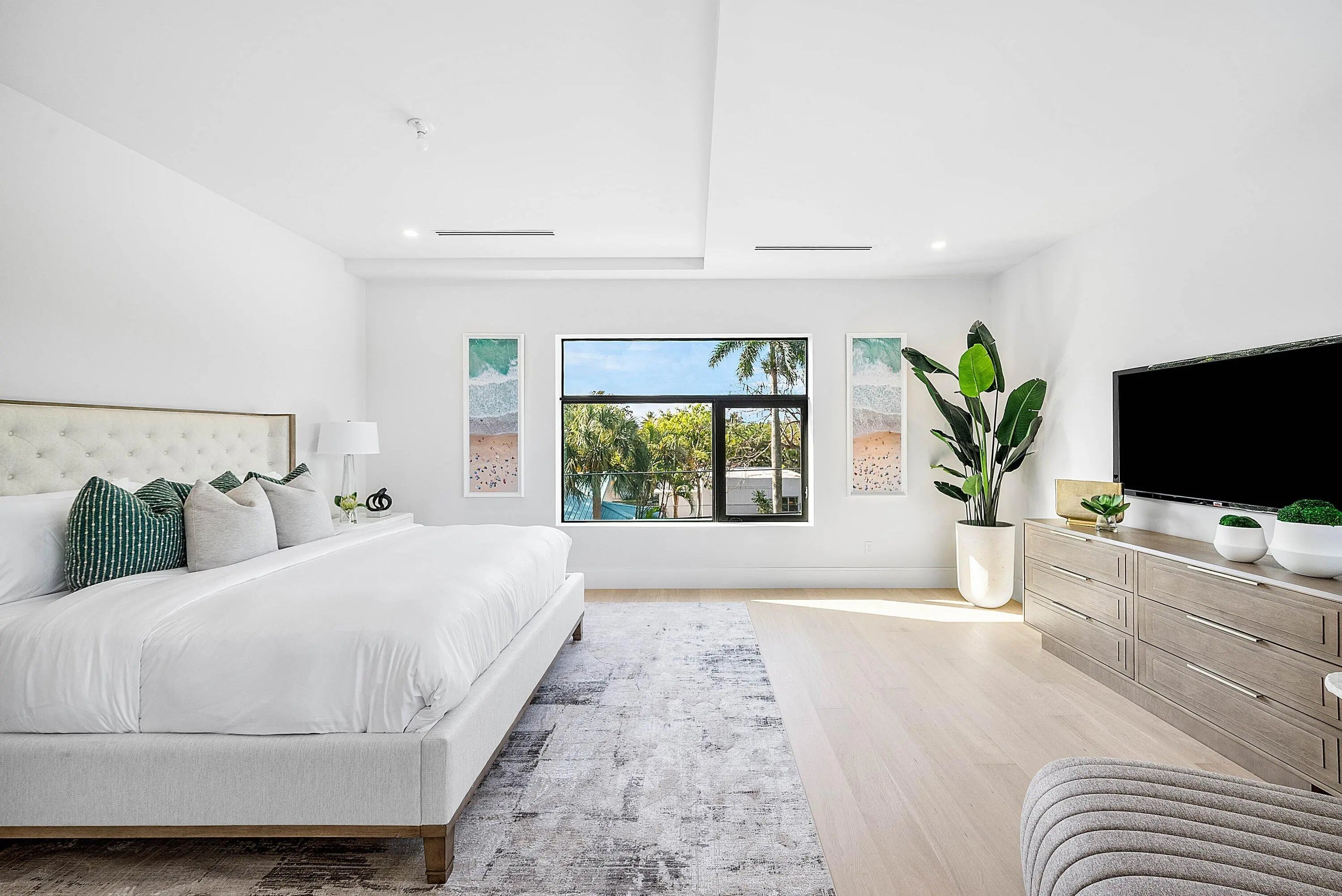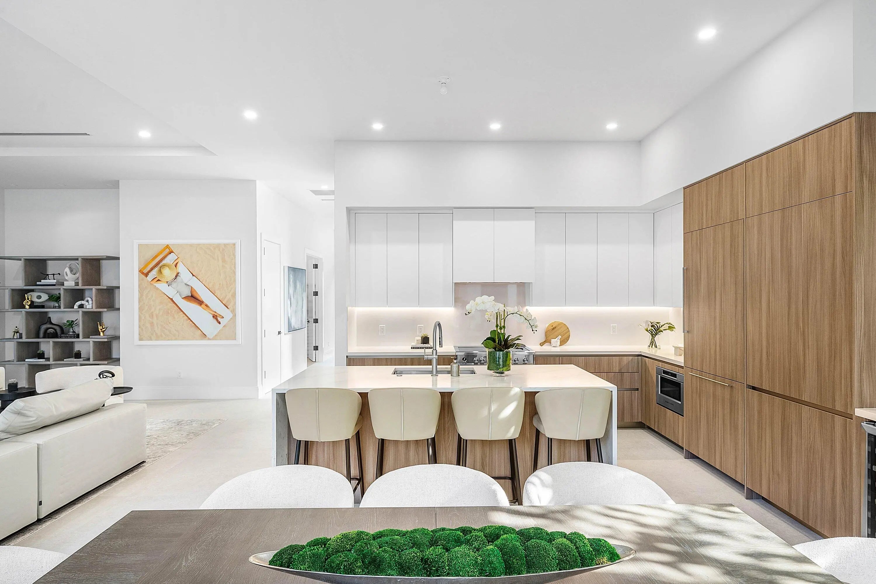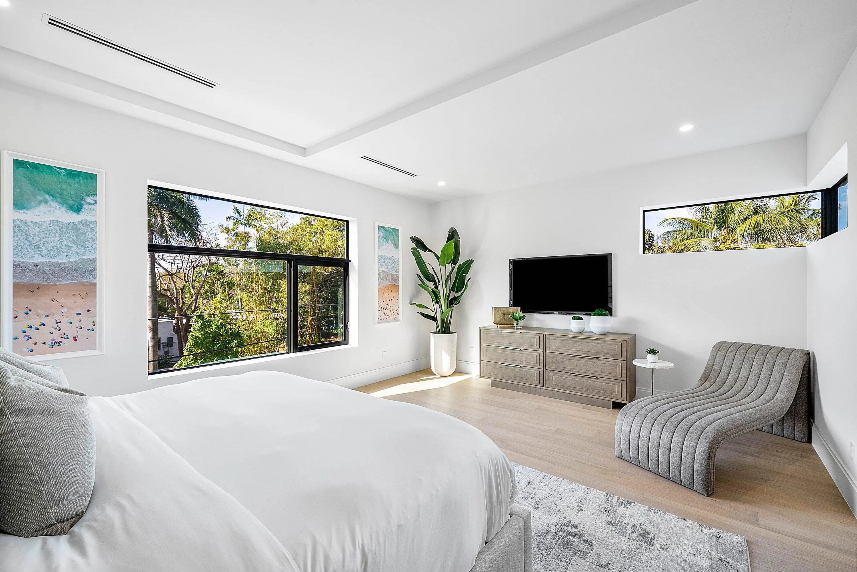 Exquisite new contemporary estate by Marc Julien in East Delray Beach, offering 5 bedrooms, an office, and a three-car garage. The open-concept main level features two guest suites, a great room, dining area, and a chef's kitchen with an oversized island. Upstairs includes a private primary suite with dual walk-in closets and a spa-style bath, plus three ensuite bedrooms and a loft. Built with impact windows and doors, the home offers quality construction, warm neutral finishes, abundant natural light, and seamless indoor-outdoor flow. The backyard features a covered loggia, tropical landscaping, and a saltwater pool and spa. Located in a highly walkable area near the beach, Atlantic Avenue, and top dining and shopping.