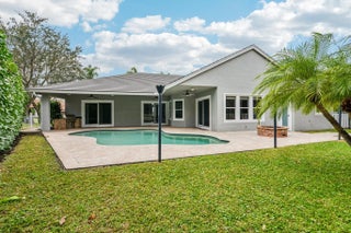 Set within the prestigious private gated community of Lakefield West in Wellington, this beautiful 4b/3.5b + office home overlooks pristine golf course views of the Wanderers Club 17th green. Key features include open living, high ceilings, & a large kitchen with gas cooking, electric double-ovens, & an island. Master suite offers pool views & a fully remodeled luxurious en-suite bath with jetted spa tub. Enjoy low HOA fees, a fenced yard, brick fire pit, gas tiki-torches, & built-in grill for entertaining. Whole house gas generator & 500-gallon buried propane tank. Impact windows & doors. Walk to Wanderers, or enjoy premiere golfing at nearby Wellington National Golf Club. Purchase includes a 1-year social membership to WNGC! Golf-cart distance to WEF & A-rated schools. Newer Roof & AC. Many upgrades here: 500 gallon buried propane tank (owned). Kitchen stove, grill, firepit, tiki torches, dryer, 2 water heaters, and whole house generator are all gas (saving utilities). Tankless water heater in primary bath. 2 newer AC units.