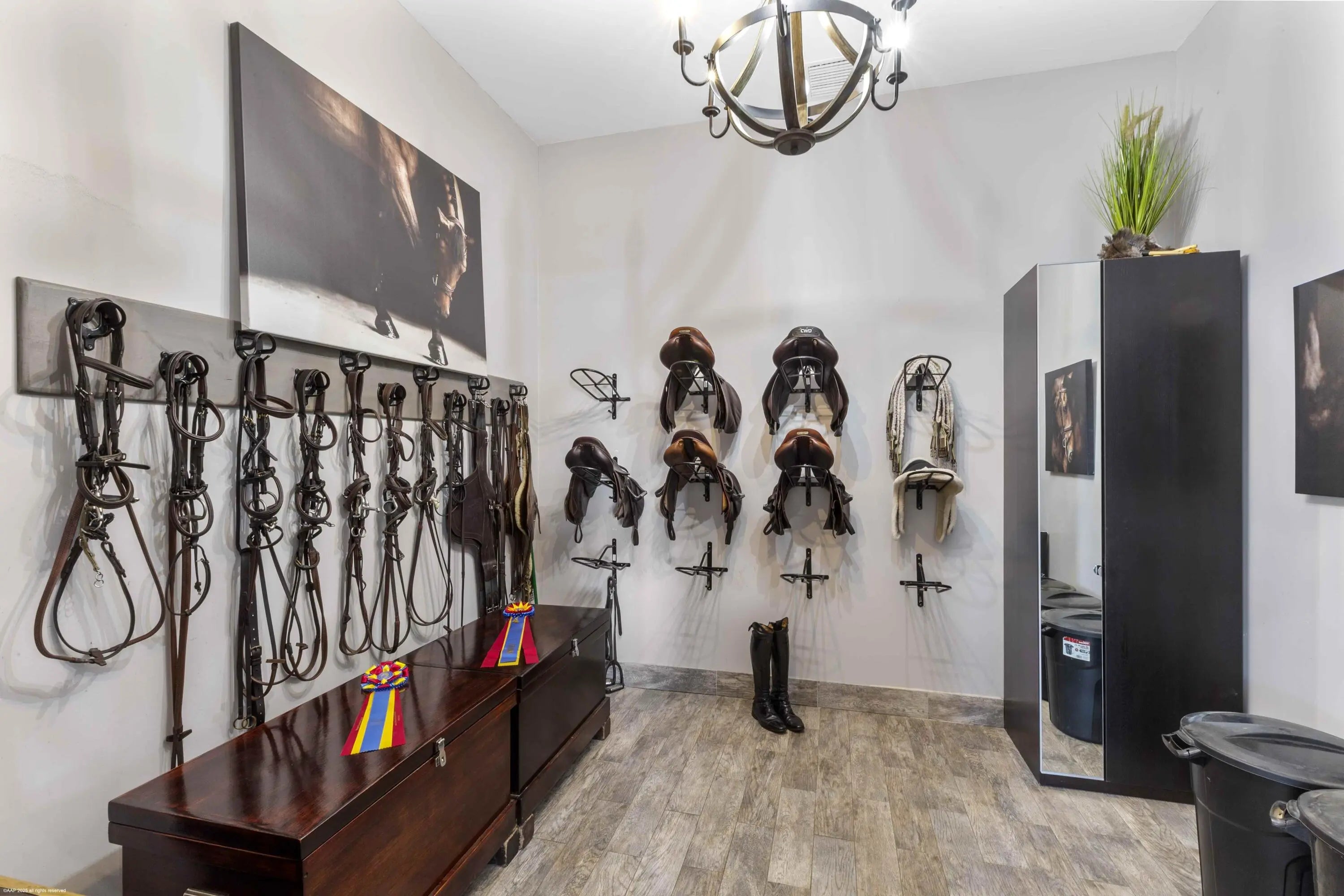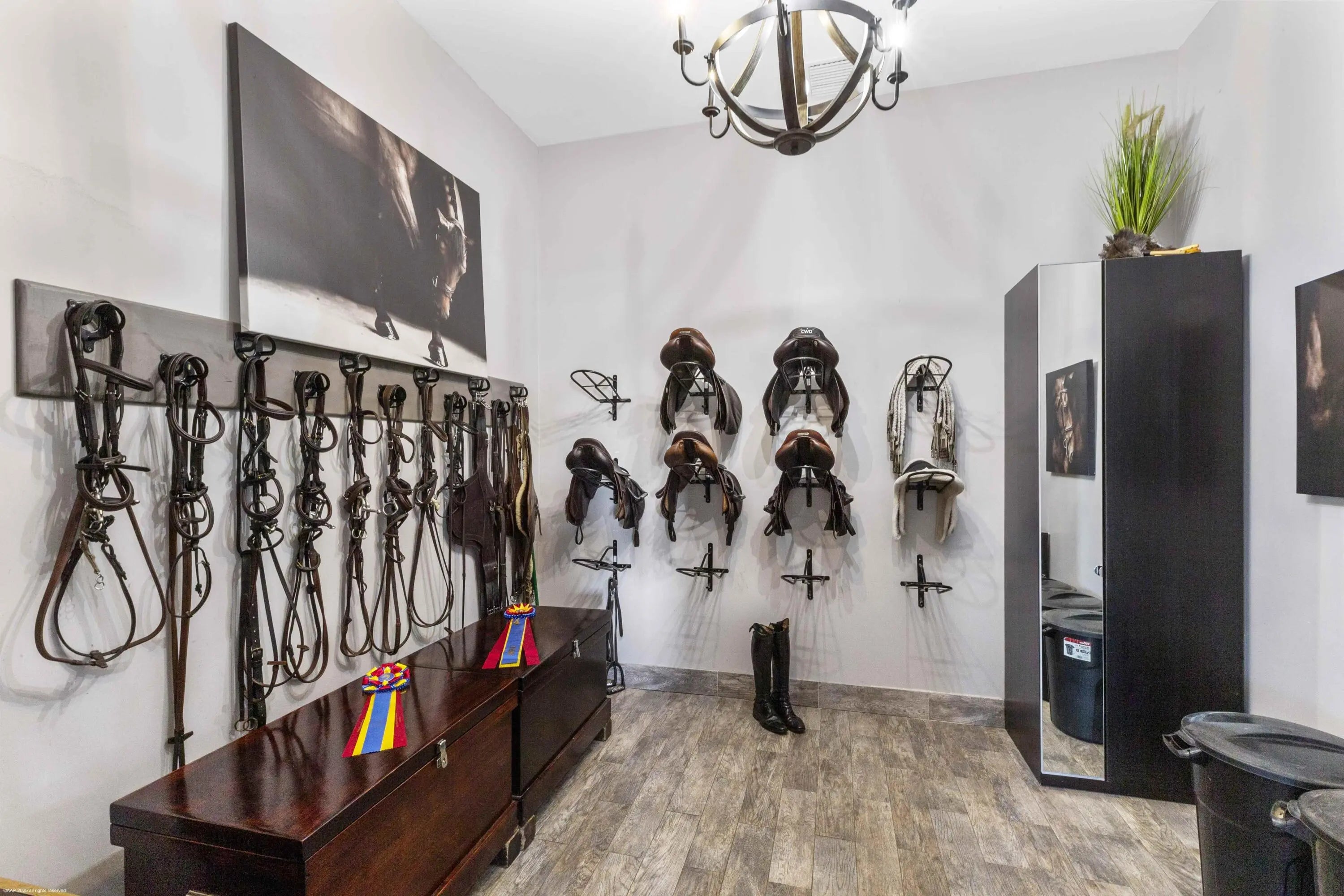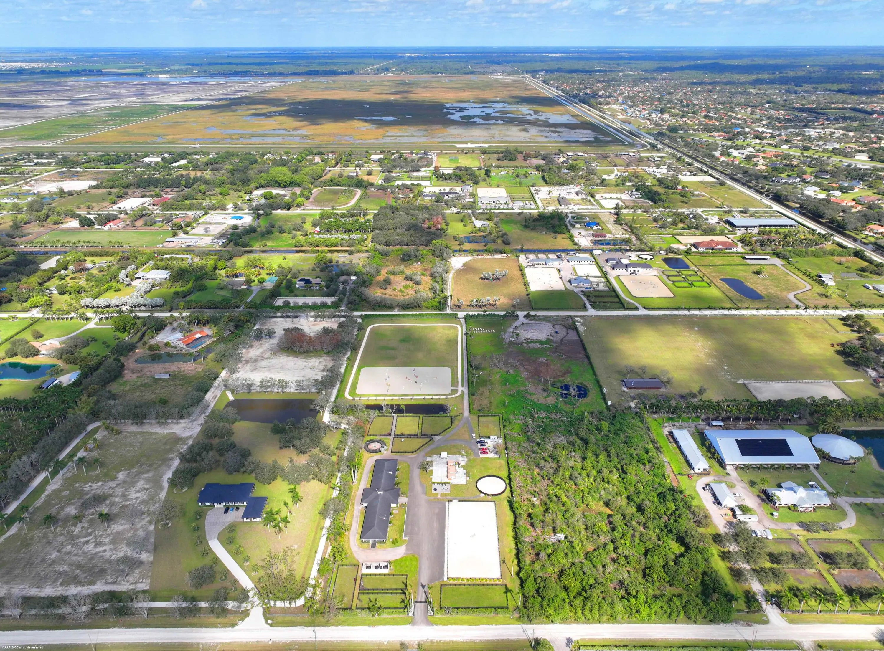 This 10 acre equestrian facility has frontage on both Norris Rd. & Deer Path Lane in Rustic Ranches Estates.. Built in 2018, the 24 stall center aisle CBS barn was designed by a true equestrian for optimal functionality and workflow. ADJACENT PROPERTY WITH HOUSE ALSO AVAILABLE! There are 4 blocks of 6 stalls, each with its own tack room. Each half of the barn has its own laundry room, feed room/storage and is equipped with ample grooming stations and wash stalls. The 250'x150' all weather arena by Gould is complimented by a large (280'x280') grass derby field and 1/4 mile exercise track. There is a second arena 100'x200' (that can be covered), 10 paddocks, a 4 horse walker and a round pen. There is a tent pad in place with water, electricity and 2 wash stalls for ten 10 additional stalls. 24 stall barn 4 tack rooms 2 laundry rooms 2 feed rooms 4 interior grooming stalls 4 exterior but covered wash stalls 2 riding arenas (w/ full drainage and irrigation)(250'x150')(100'x200') Walker (4 horse) (MK Walker) Grass riding field ~2.2 acres (~280'x280') Exercise Track ~ 1/4 mile around 10 paddocks 10 acres unified into one parcel 2 Rv hookups 2 septics for wash stalls 1 septic for future construction Property is on city water Irrigation is from a well and pond