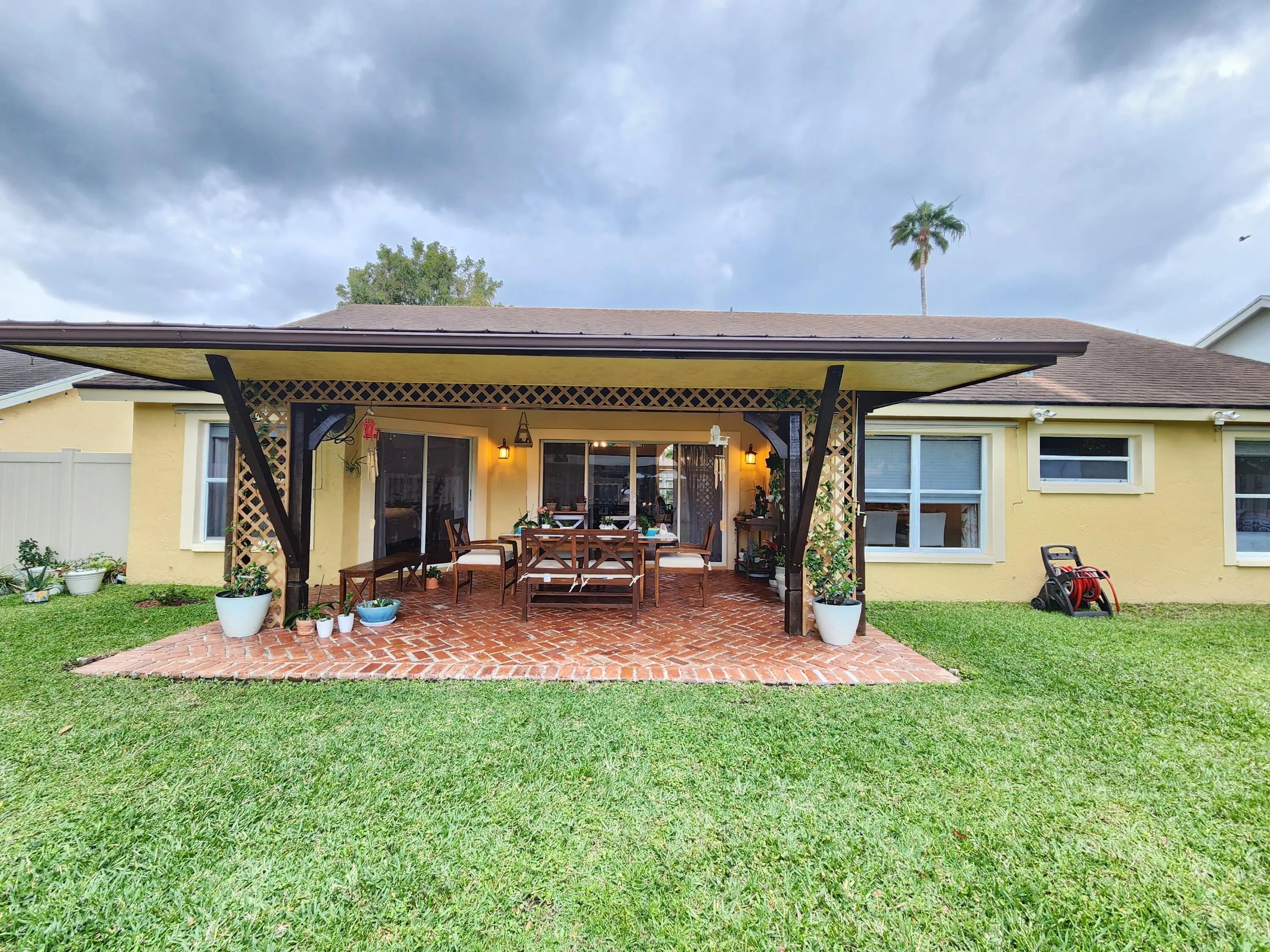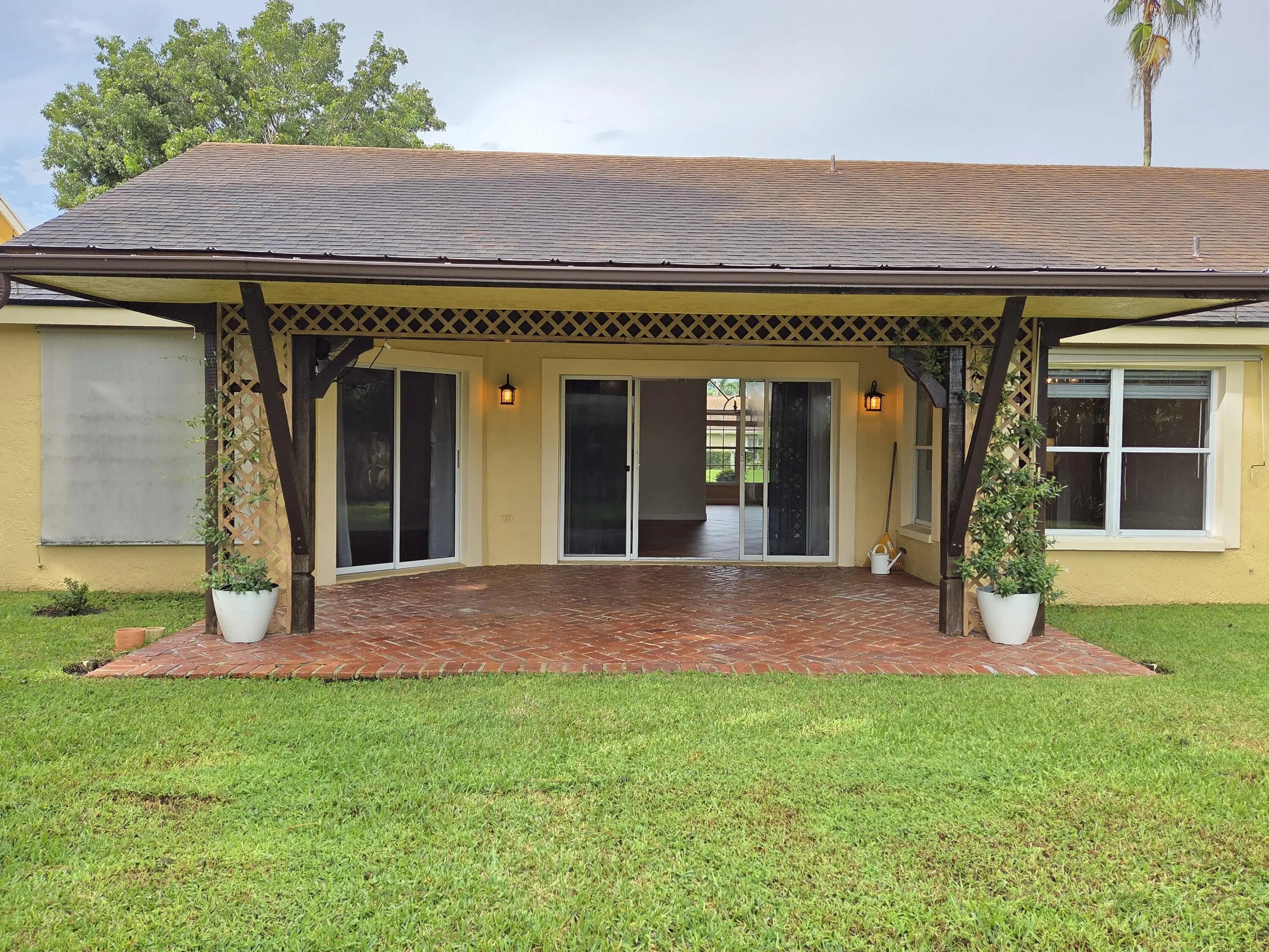 Location, Location, Location! One of the LARGEST LOTS in Meadowland Cove, comfortably fits a swimming pool!! Nestled in the vibrant heart of Wellington, this exquisite property embodies luxury and comfort. Step outside to an inviting expansive patio, perfect for entertaining. The home boasts three beautifully appointed bedrooms and two full bathrooms, complemented by a Spacious DEN that offers versatility for any lifestyle. Impeccably maintained and remodeled in 2021, we also have a newer a/c and dishwasher and water heater updated in 2020. The stunning front door welcomes you with elegance and grace. Fully fenced in!! This unfurnished meticulously cared-for residence is truly ready for you to move in, all within a gated community featuring a pristine community pool. perfect for entertaining while taking in serene views of the extended Wellington Lake.