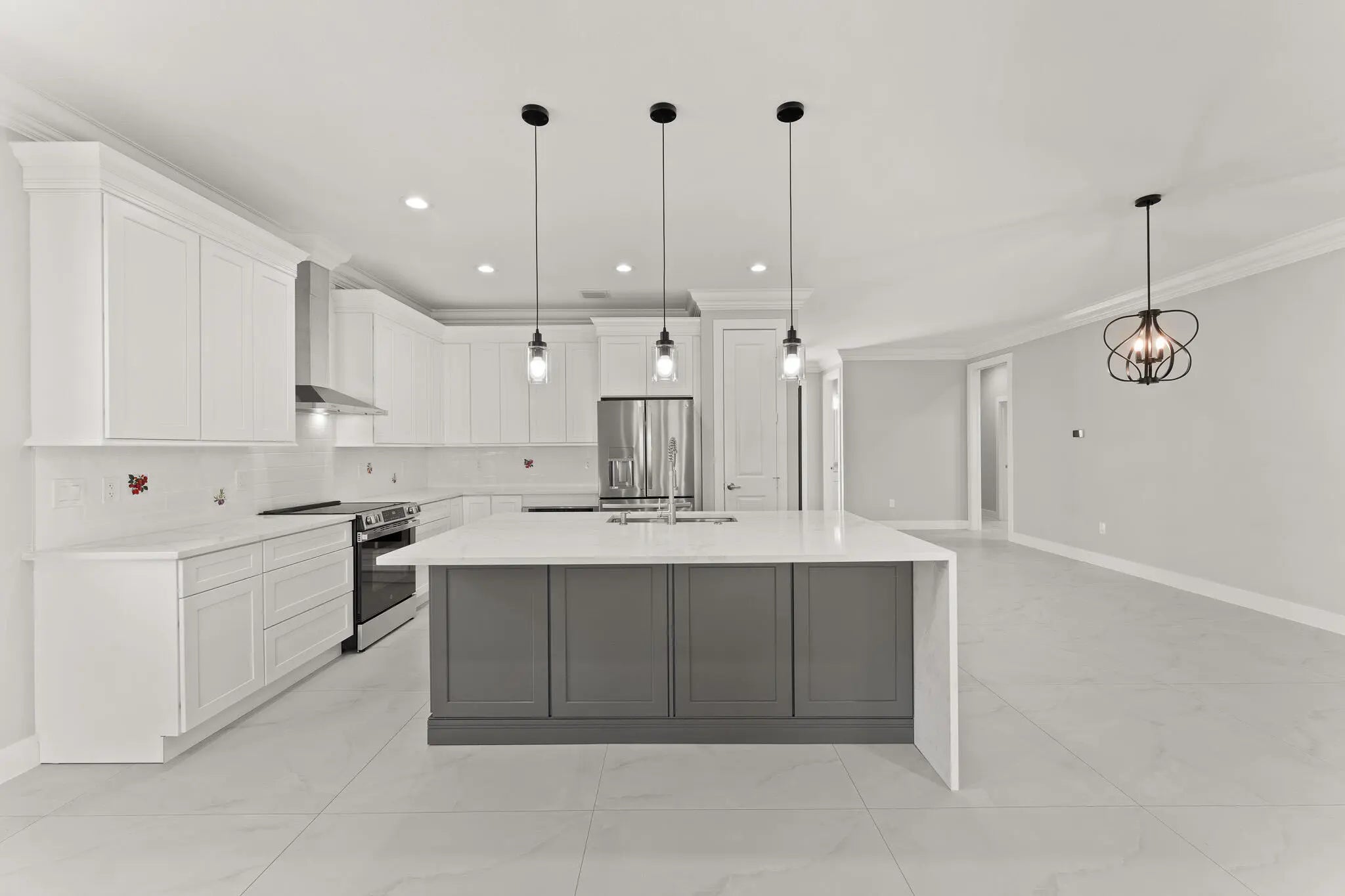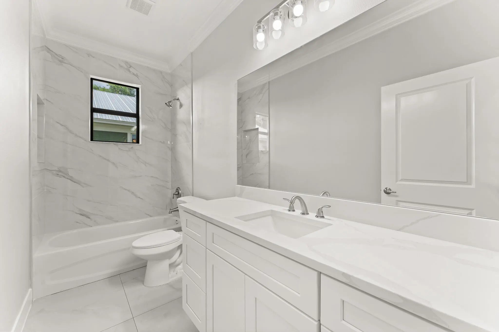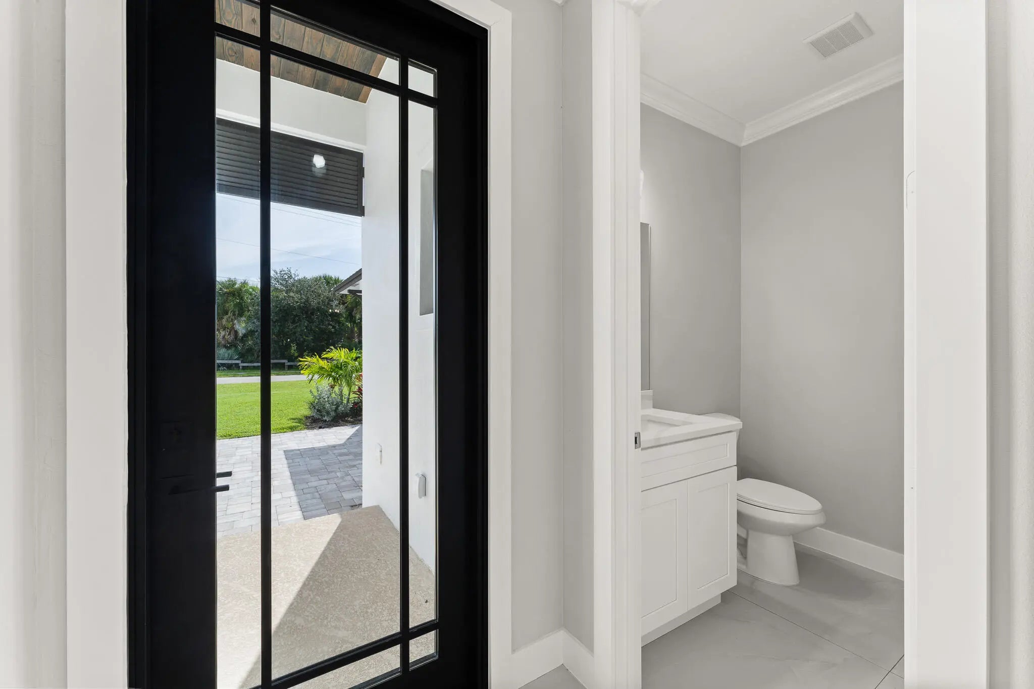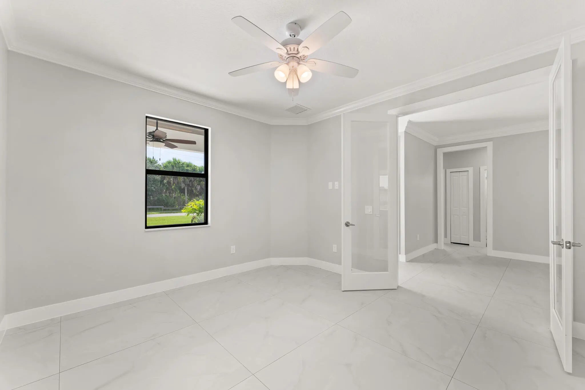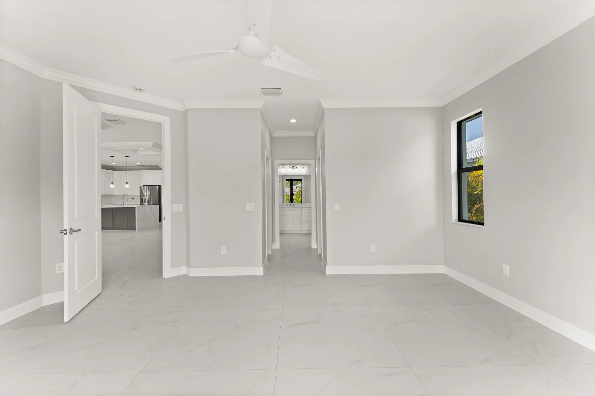 This thoughtfully designed 3 bedroom + den, 2.5 bath estate blends charm, quality, and convenience in one beautiful new build. Located just minutes from public boat ramps, Sandsprit Park and Port Salerno's waterfront dining, this home is the perfect blend of lifestyle and location. Inside, enjoy an open-concept design with quartz countertops, a waterfall eat-in island, wood cabinetry and luxury porcelain tile throughout. Tray ceilings, crown molding, recessed lighting and ceiling fans add elegance and comfort. Built for peace of mind and longevity with impact windows and doors, metal roof and stucco exterior. Relax on the elevated front or back patio with fresh coastal breezes. The oversized 10' garage door and large lot offer space for your boat, RV or future pool. No HOA.