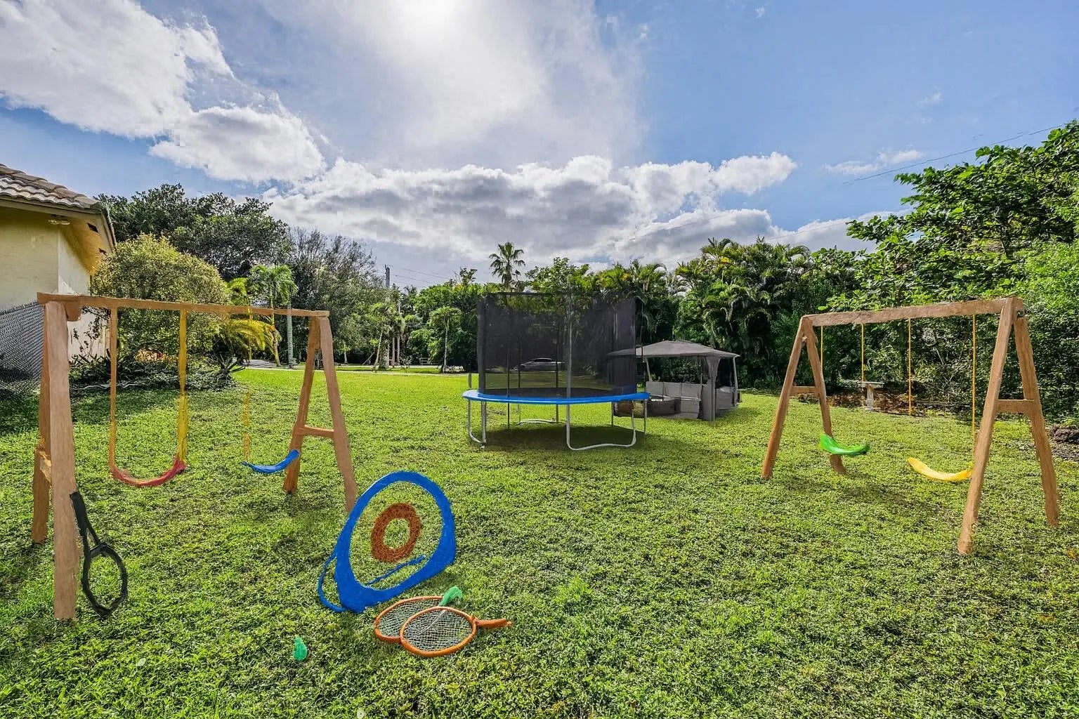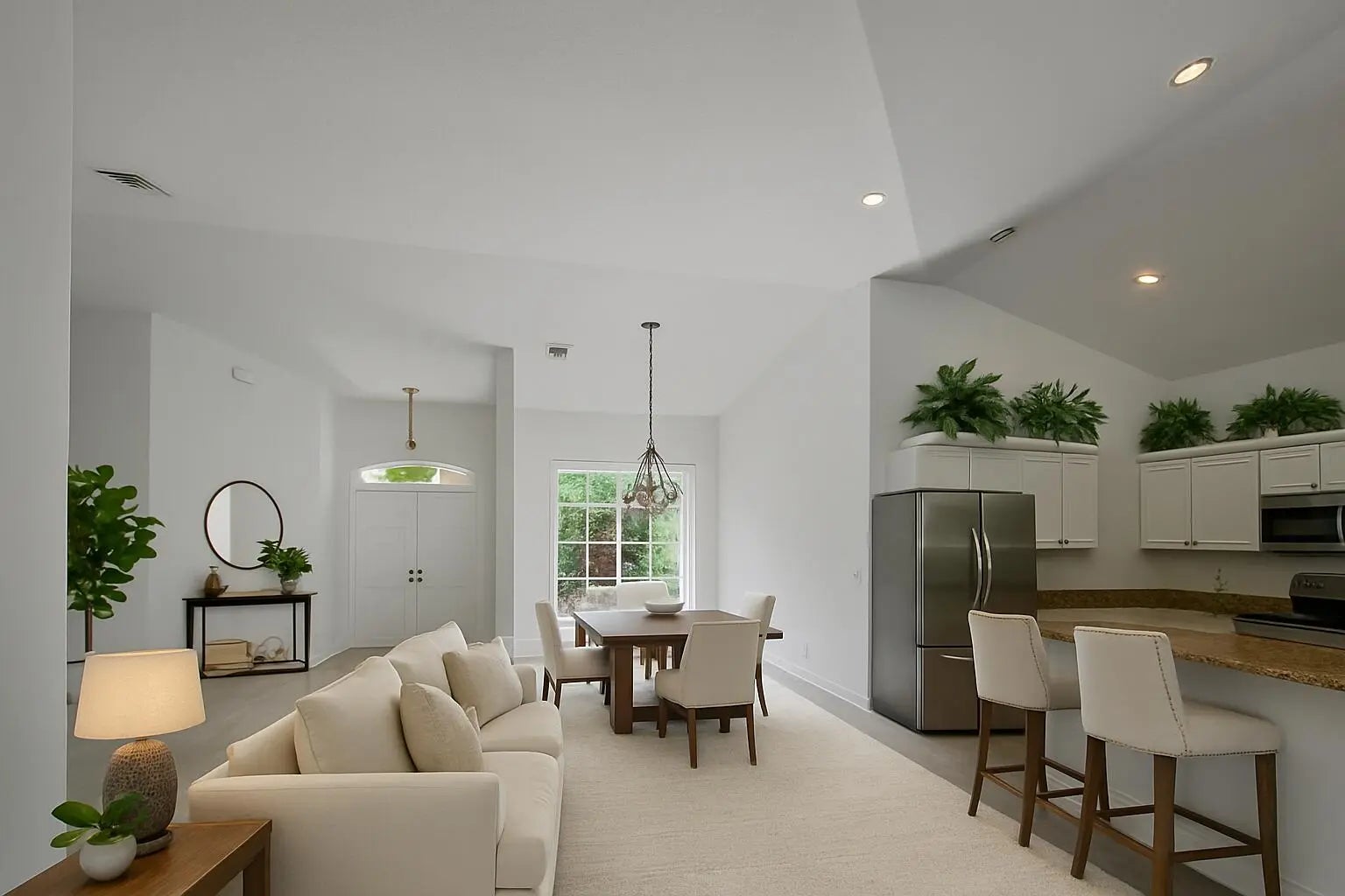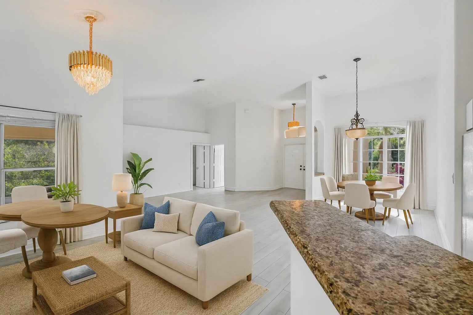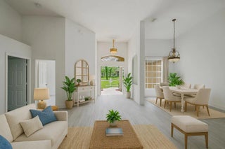 Poured concrete,maintain-free ,holds over 250 mph wind, LIKE BRAND NEW, seling on lot value , negotiable , Upscale,best schol, 10 min beach, updated, high, ceilings,Equestrian ,build 3 k addition & quest hm sell 3 M, pool , 1.5 acr corner lot facing mansion ! , open floor plan. formal dining , living rm, , breakfast nook, granite bar, family rm - brand-new grey cork floors. stainles applis , new crystal chandeliers, blinds, new high-tech A/C , split floor plan , garage is living space under A.C , jacuzzi , large screened patio , new chain link fence , live in contry 5 minutes from Town , shops, restaurants , golf , rec area basketball ,play grd , racquetbal,tennis , no city tax , dead end , quite ,city water paved rd endles posiblities ! , great investment opportunity Must see !