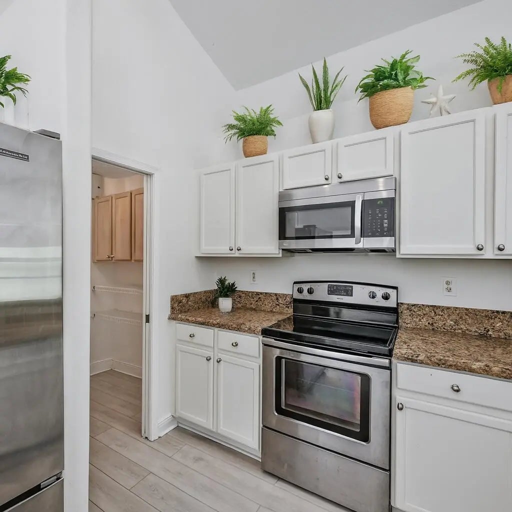 Cathedral Ceiling(s), High Ceilings, Vaulted Ceiling(s), Walk-In Closet(s), Bedroom Layout - Split, Closet Cabinetry, Pull Down Stairs, Roman Tub