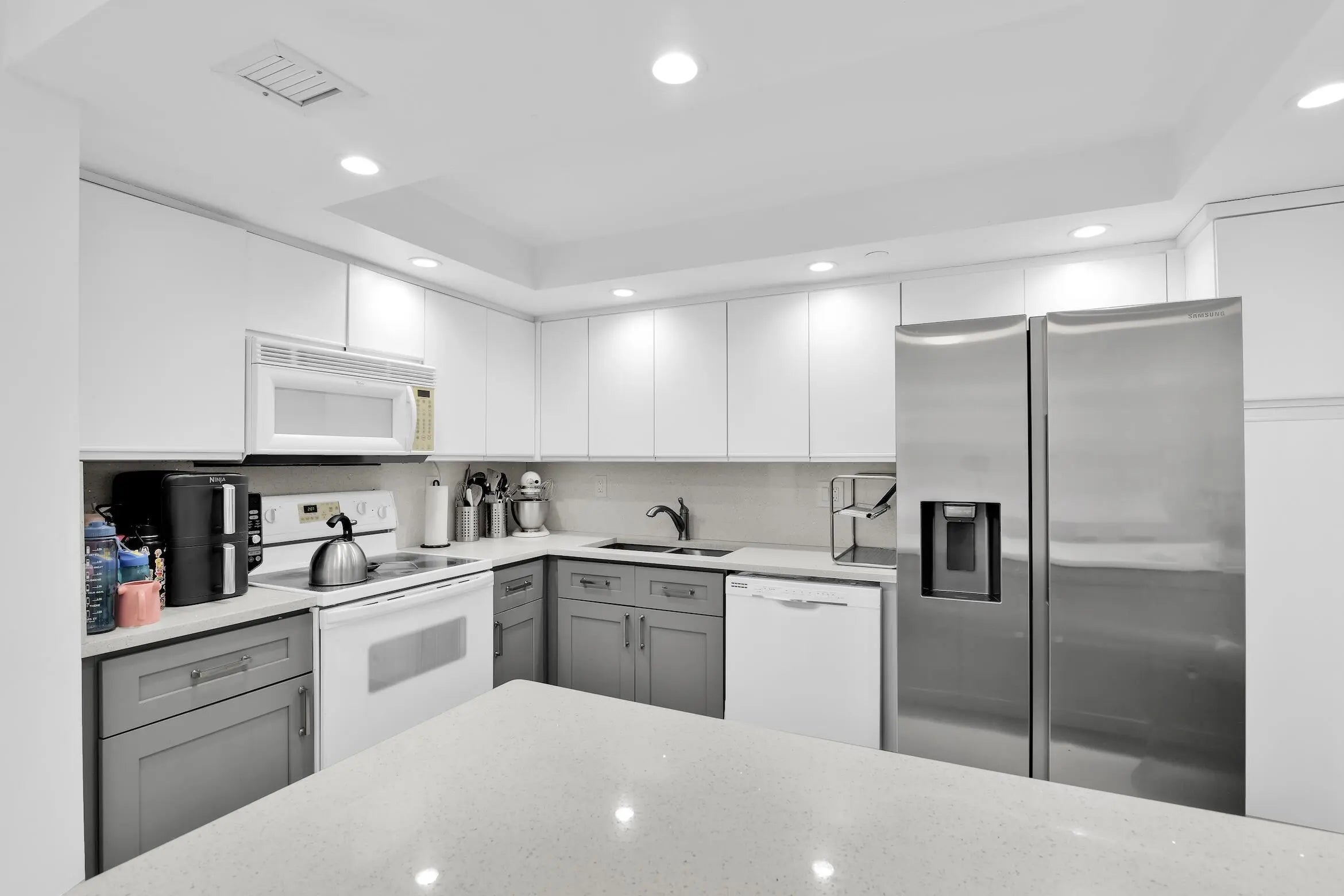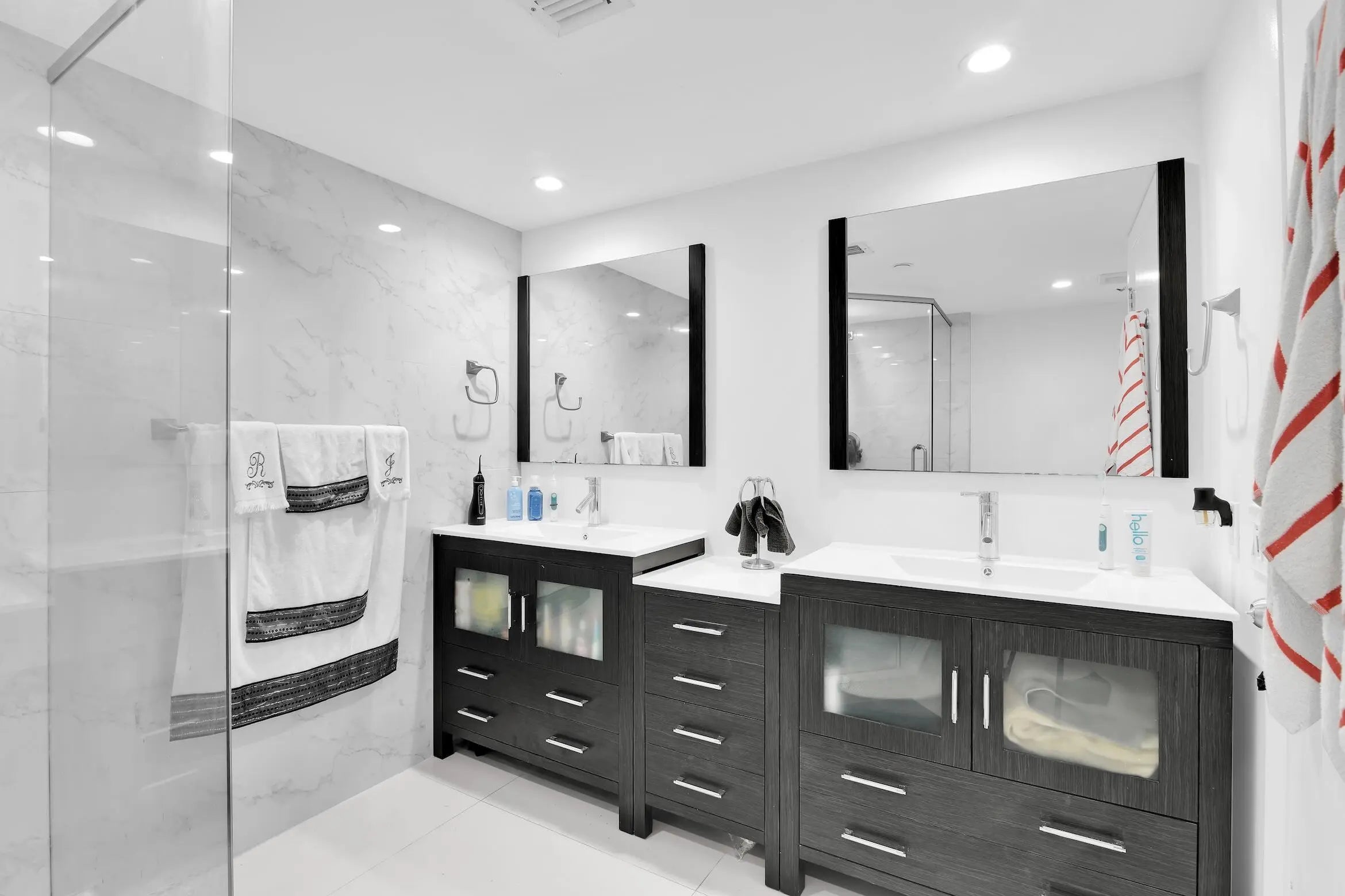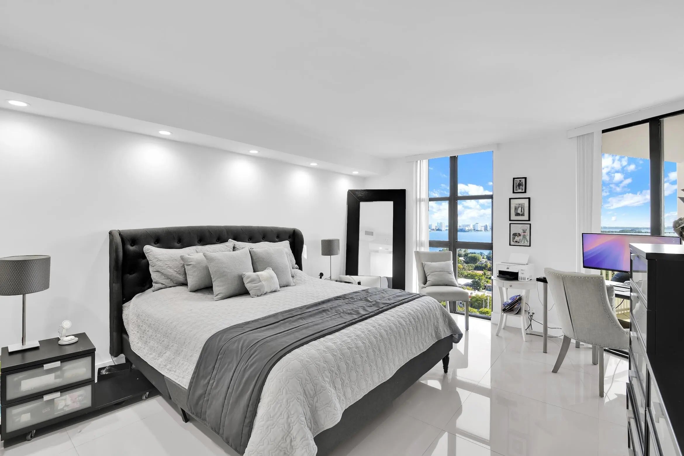 Exceptional 18th-floor residence offering breathtaking bay views from every room. This stunning 2-bedroom condo features a beautifully remodeled open floor plan with porcelain floors throughout, a spacious primary bathroom with dual sinks, and seamless access to a generous balcony—perfect for outdoor dining and entertaining. The split-bedroom layout provides privacy, with each bedroom offering its own en-suite bathroom. Unit is offered unfurnished only. Residents enjoy resort-style amenities including a 24-hour attended lobby, manned gate, pool and hot tub, state-of-the-art fitness center, fully equipped social rooms, tennis courts, barbecue areas, and more.