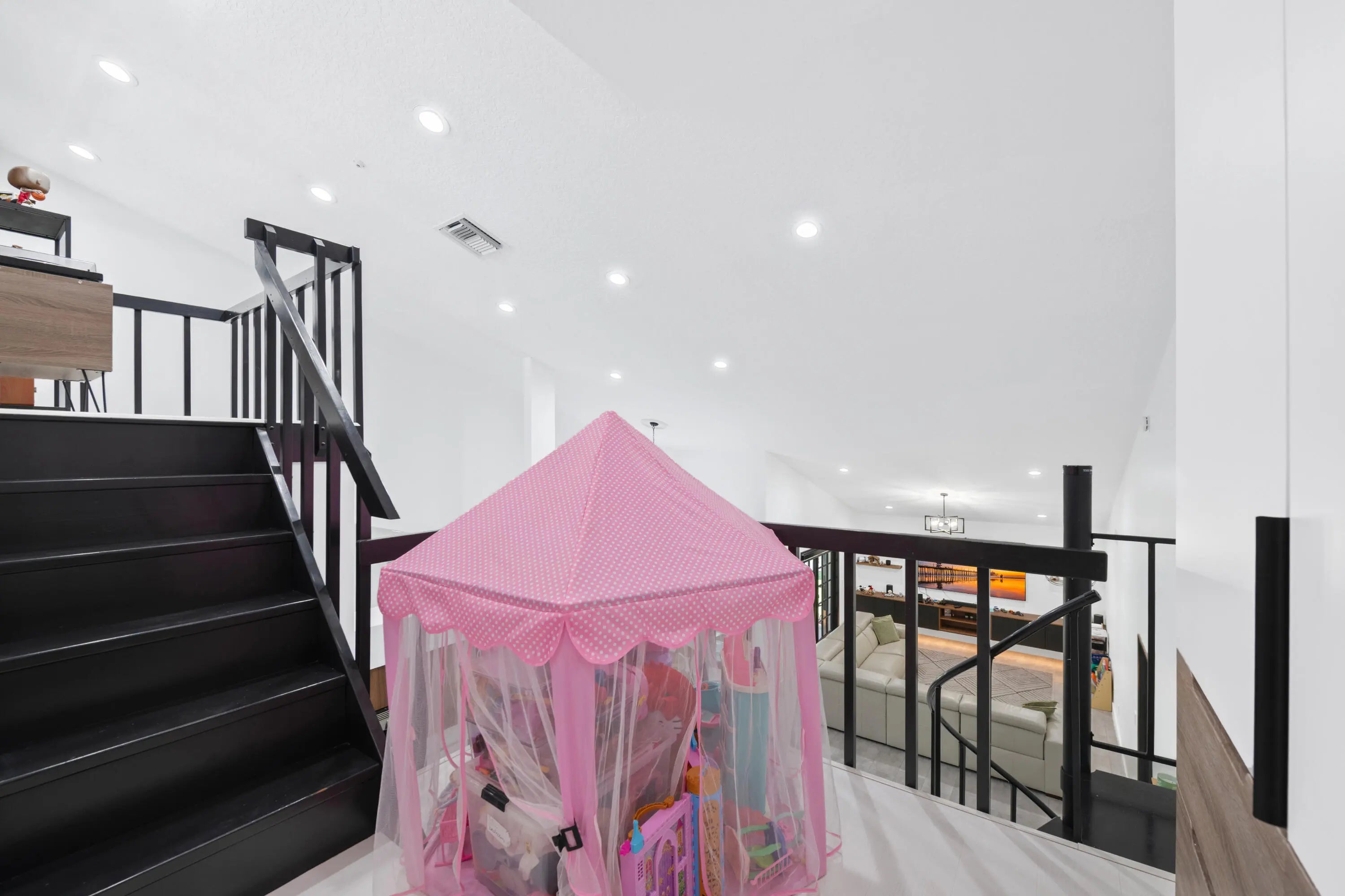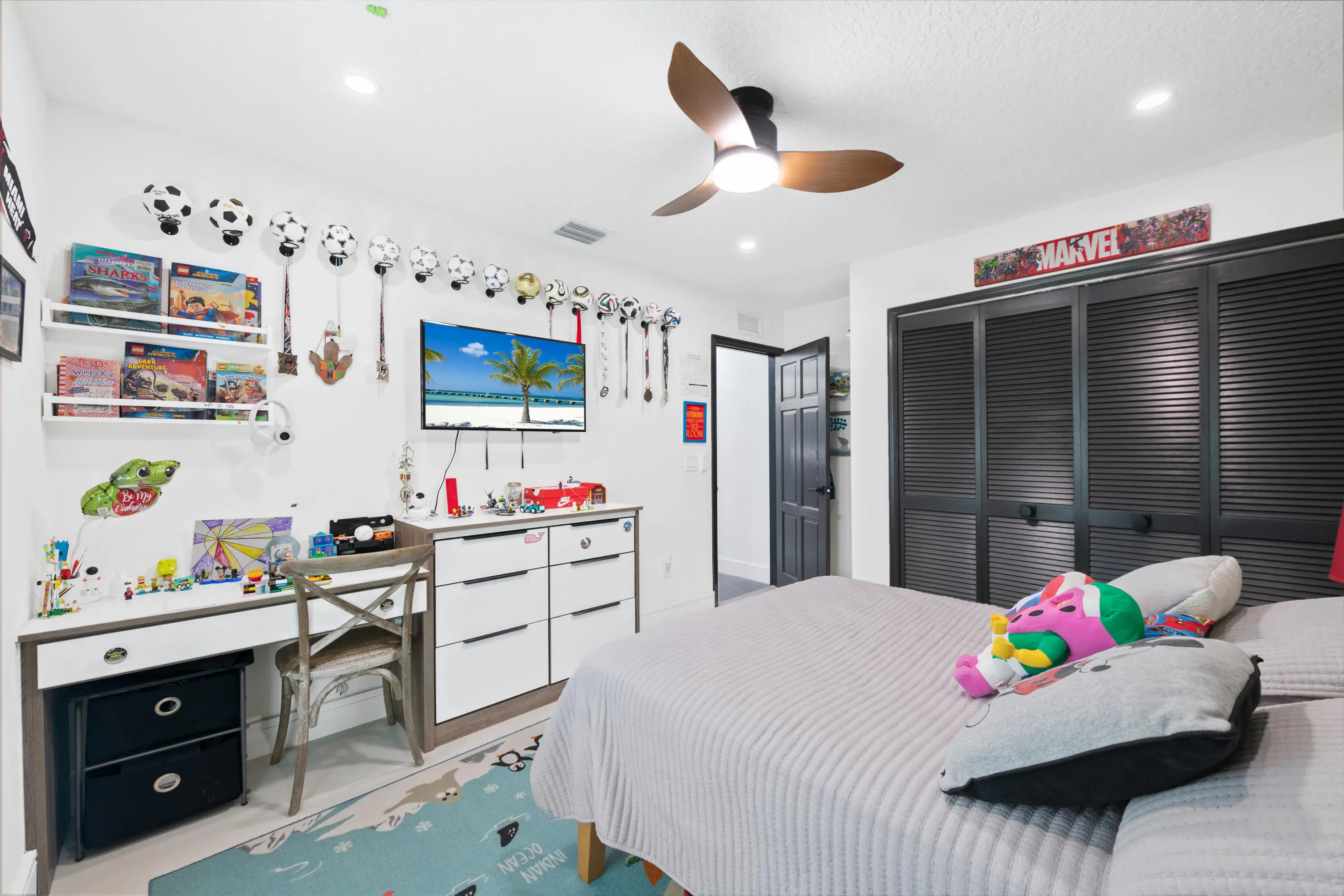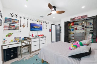 Spectacular Home in the Highly Desired Neighborhood of Greenview Shores. This 4 Bedroom, with an Upstairs Loft has 2.5 Bathrooms, Along with an Extended 2 car garage with Added Storage Along with a Built in Spa. The Home Sits on a Large Corner Cul-de-Sac Lot. The Beautifully Landscaped Lawn & Modern Exterior Facade Flows Perfectly Into the Interior Design. Tile floors Throughout Common Areas with High Grade Engineered Hardwood in the Bedrooms. The Home Features a Formal Dining room, Living Room, Family room, & a Spiral Staircase to a Multi-Level Loft Which Can Be Used as an Office or Play Area. The Open Kitchen Overlooks the Family Room & has Quartz counter tops & Real Hardwood Custom Cabinets with a Modern Two-Toned Design Scheme. All Custom Cabinets & Closets Built by The Closet Master. The kitchen also features a stainless steel LG appliance package, modern lighting, with tons of storage space, and a separate eat in bar/island. The laundry room is inside and is equipped with a washer, dryer, sink, & cabinet storage. The generous sized master suite features a well organized walk-in closet, French doors to the patio, and a stunning spa-like master bathroom offering extended dual vanities, make up counter, a modern free standing tub, and a separate walk-in shower. The guest bathroom with shower/tub combo was fully updated. All 3 of the guest bedrooms have a modern design with closet organizers & gorgeous shiplap wall siding. A/C is newer. Roof is less than 2 years old. Outdoors, you'll find a complete set of accordion shutters for the French doors with hurricane impact windows throughout the home. Complete gutter system, & a large screened in patio with a jetted spa. There is also plenty of room in the fully fenced in backyard. Garage floor has been epoxy coated and offers plenty of added storage. This is home is truly move in ready, so don't delay and schedule your showing today!