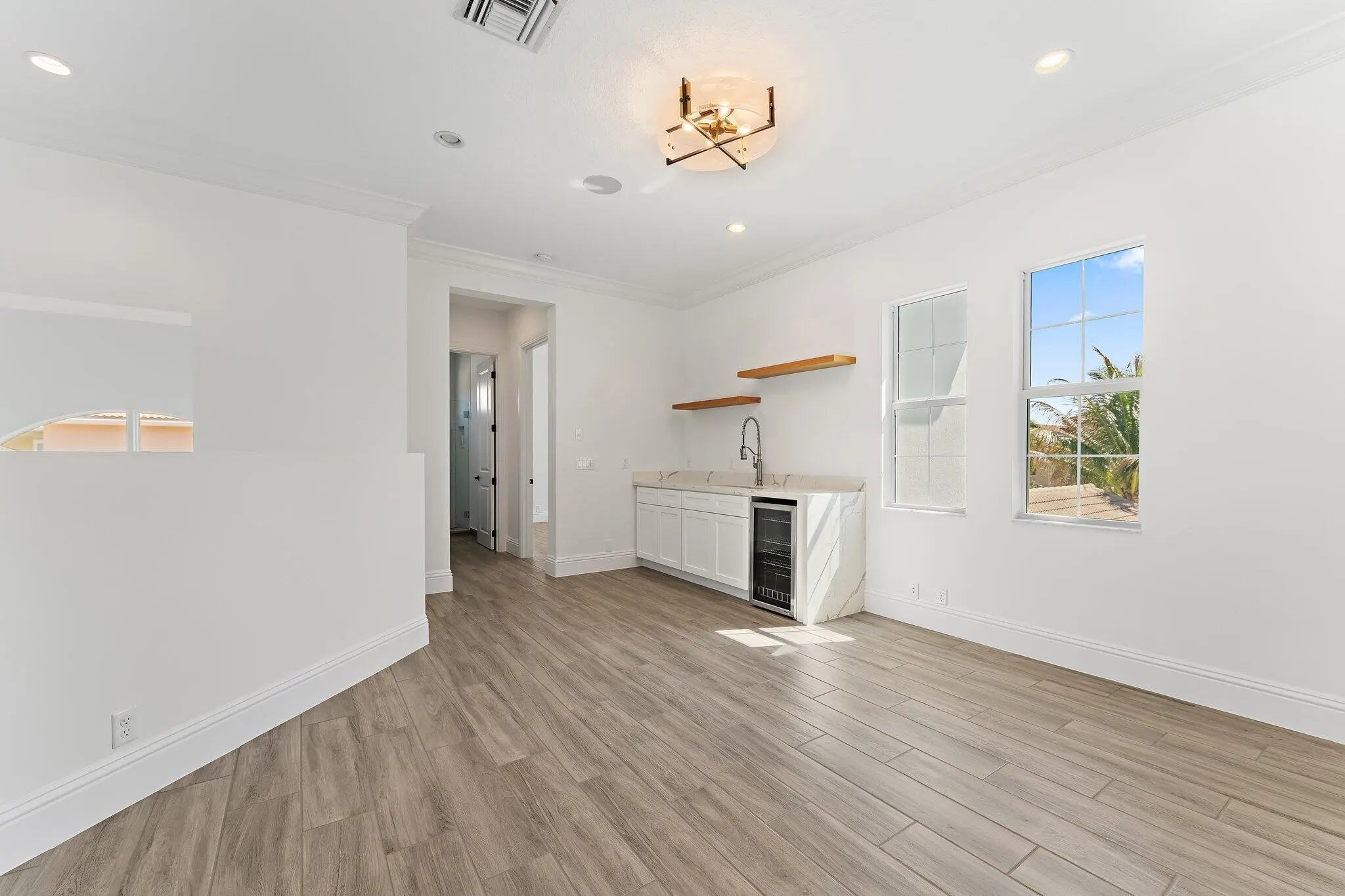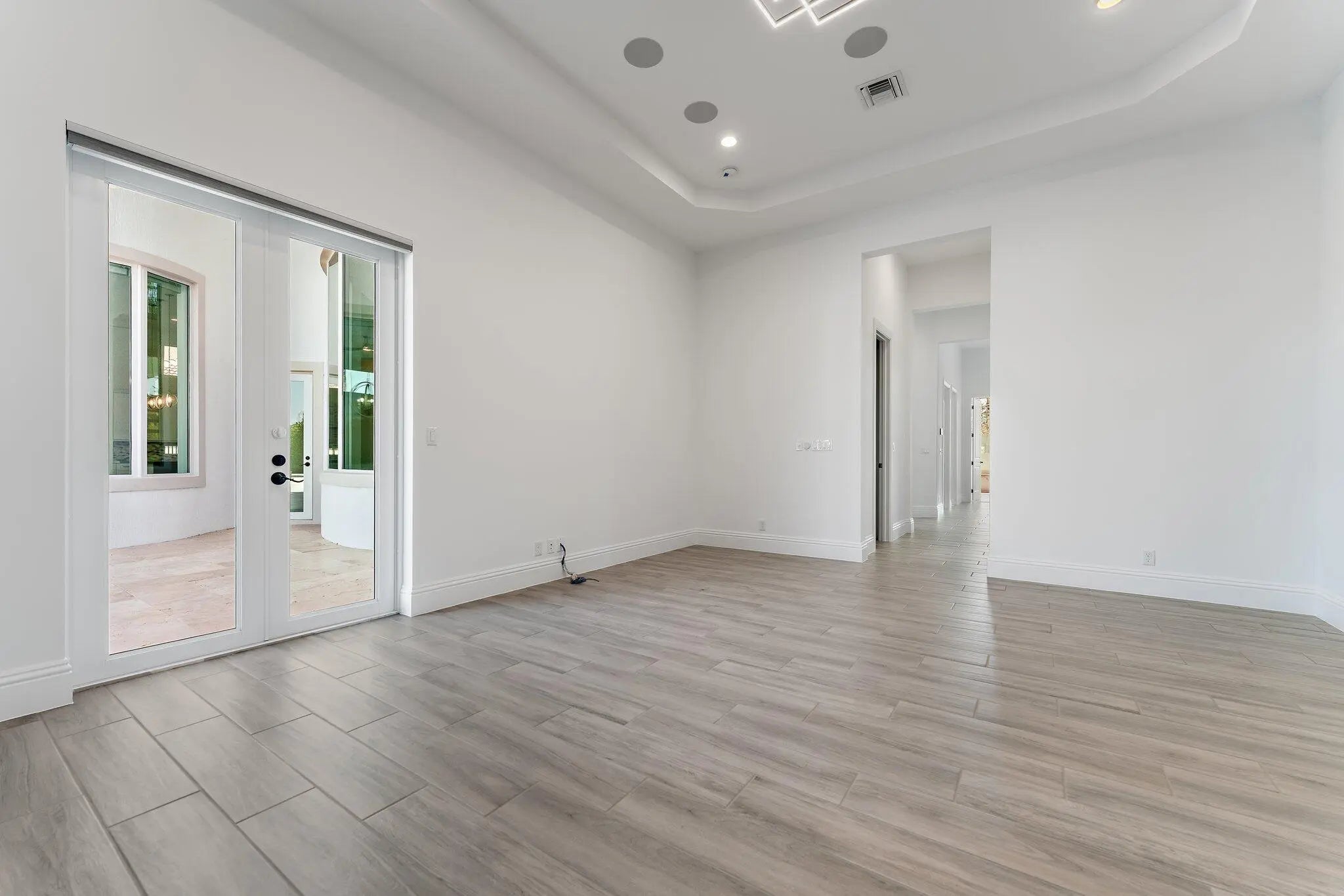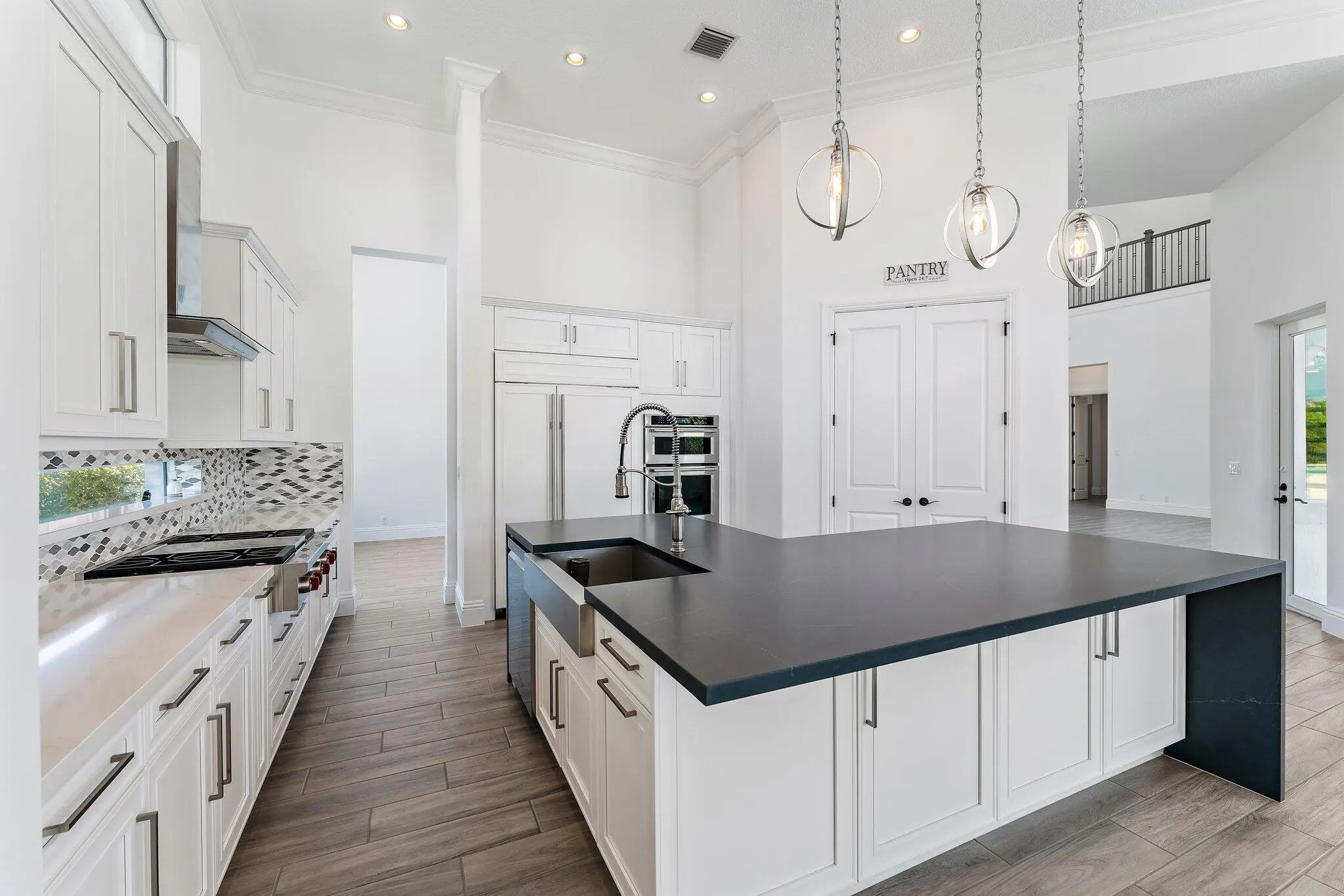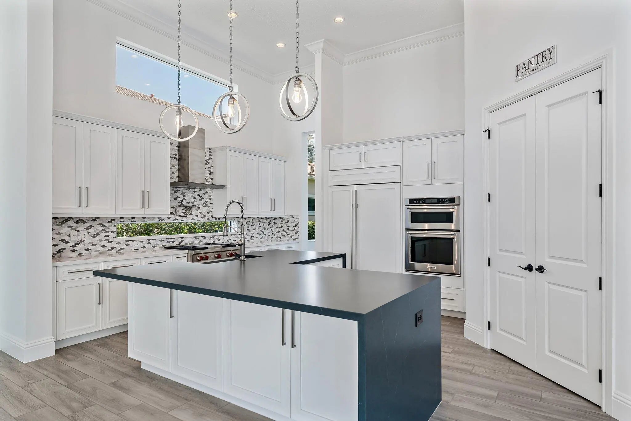 Exquisitely crafted in 2019 and designed to the highest standards, this extraordinary custom residence offers the perfect blend of architectural drama, refined luxury, and effortless indoor outdoor living. From the moment you arrive, the striking high end front door makes a bold statement as it cantilevers open, setting the tone for what lies beyond. As one of the newer homes in Jupiter Country Club and situated on one of the largest lots in the entire community, this property offers a rare combination of modern construction, expansive outdoor space, and premier positioning that is increasingly difficult to find. Step inside to a breathtaking grand entry featuring 25 foot coffered ceilings and dramatic walls of glass that flood the home with natural light throughout the day. The expansive floor plan was thoughtfully designed for a large family who loves to entertain, offering generous gathering spaces balanced with private retreats. The ultra sleek white custom gourmet kitchen is a true showpiece, complete with a waterfall edge center island, porcelain flooring, and seamless flow into the main living and dining areas. The owner's suite is a private sanctuary with floor to ceiling windows, oversized his and hers walk in closets, and a dedicated dressing area. Luxe finishes and elevated design details are showcased in every room. Freshly painted inside and out, this home has been meticulously cared for and shows like a brand new residence. Every space reflects pride of ownership and thoughtful maintenance. Outdoors, the property transforms into a private resort. The expansive travertine deck surrounds a stunning 50 by 20 custom pool and spa, complemented by a fully equipped outdoor kitchen, multiple dining and lounging areas, and sweeping long lake views that create the ultimate backdrop for entertaining. Located within the prestigious gated community of Jupiter Country Club, residents enjoy a lifestyle built around the renowned Greg Norman designed golf course, along with two resort style pools, a state of the art fitness center, lighted tennis courts, and exceptional clubhouse dining. The location is simply unmatched. Just minutes to the pristine beaches of Jupiter, world class waterfront dining, upscale shopping, and convenient access to I 95 and the Florida Turnpike, this home places you in the heart of everything while still offering privacy and exclusivity. This is more than a home. It is a statement property designed for those who value quality, space, and a vibrant South Florida lifestyle.
