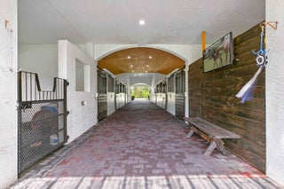 Live inside the Palm Beach Point gates, but without the same rules and regulations and to a much more affordable price! This ultra private, well-equipped farm just under 5 acres, is located at the end of the street in Sunglade, Wellington and has so much to offer. The property features 2 barns, one 9-stall center-aisle barn with rubber pavers, a 1 bed/1 bath apartment, A/C'd tack & feed rooms, fly spray system, a full barn bathroom and 4 covered wash stalls. The second barn has 6 stalls and 2 covered wash racks. There is water and fans to each of the stalls and they are all matted.The farm is set up with 2 RV hookups, 10 grassy paddocks and arena (approx 115x200) with a newly built viewing gazebo where you can relax and watch your horses go. Plans and permits are currently in place to extend the arena and add a round pen. The 2,000 sq ft main house has 3 bedrooms and 2 bathrooms and is newly painted/ refreshed inside, has a newer AC (2021) and Reverse Osmosis water system for clean, drinkable sink water. The lovely covered patio has tranquil views of the water and surrounding equestrian paradise. There is plenty of space to add a pool if desired.