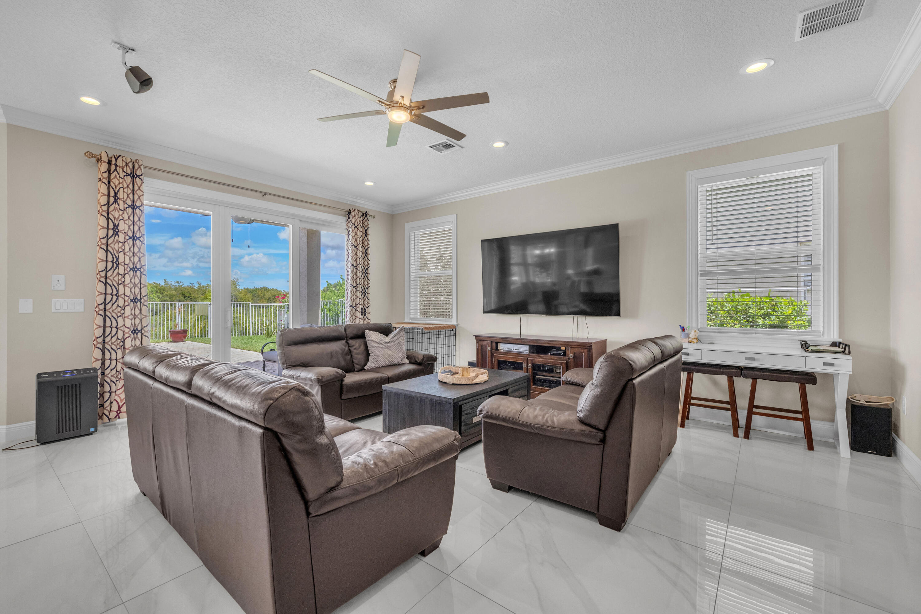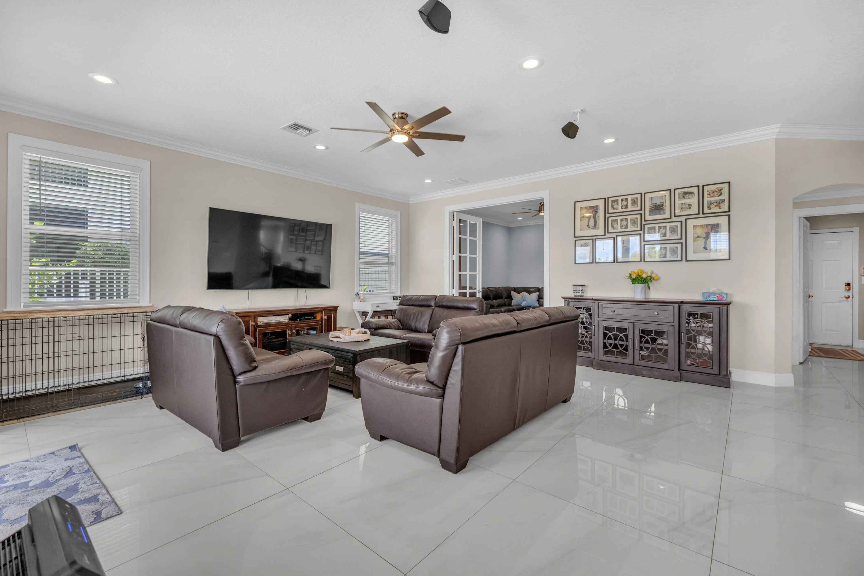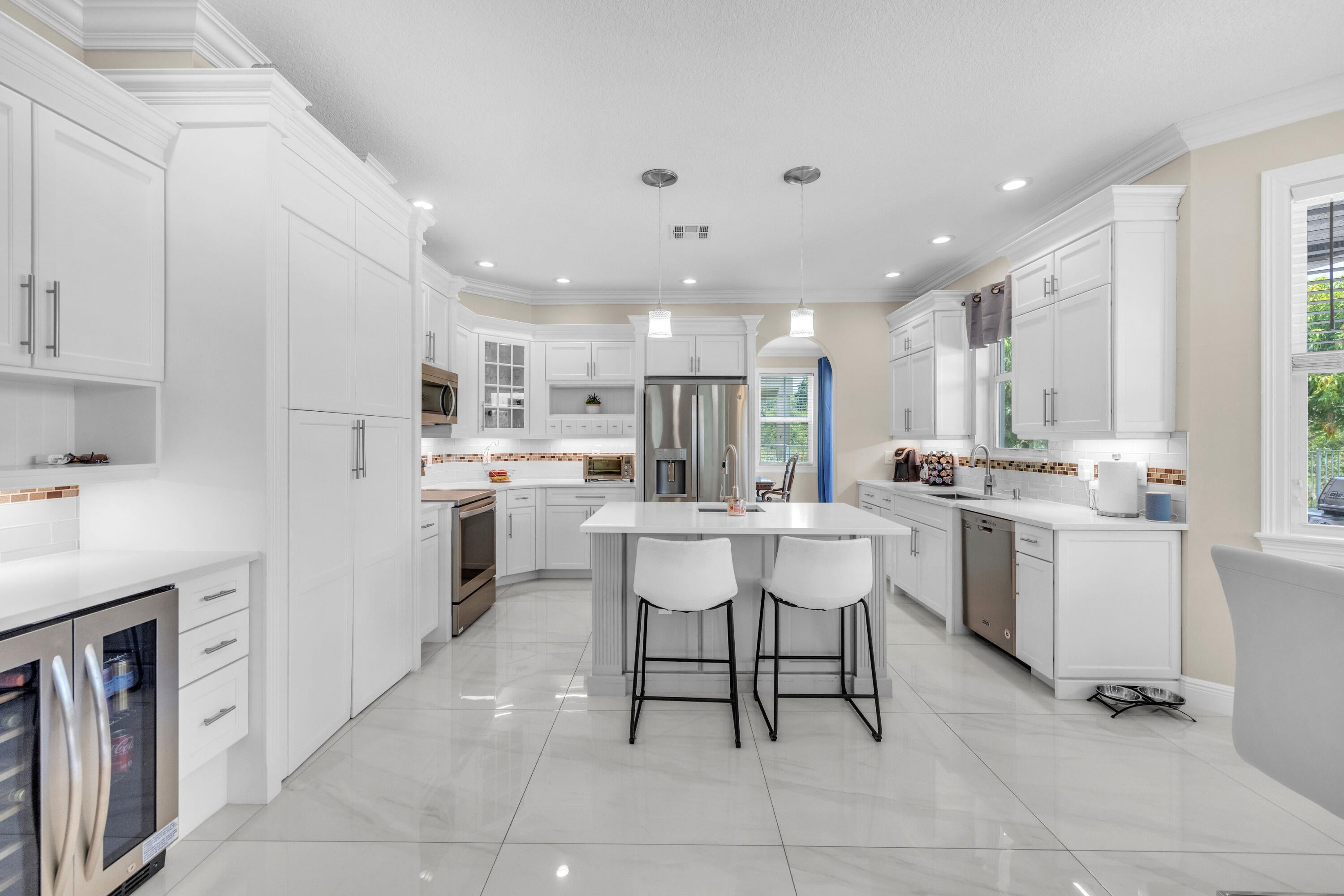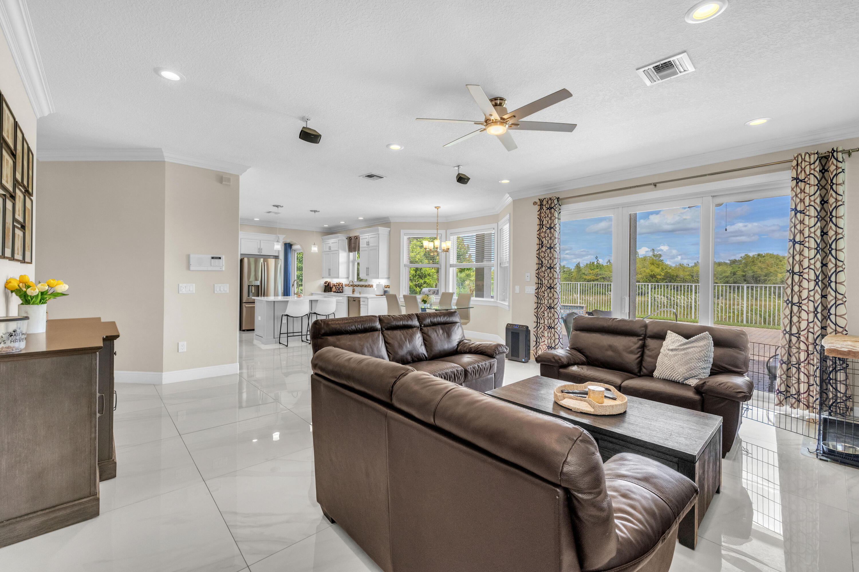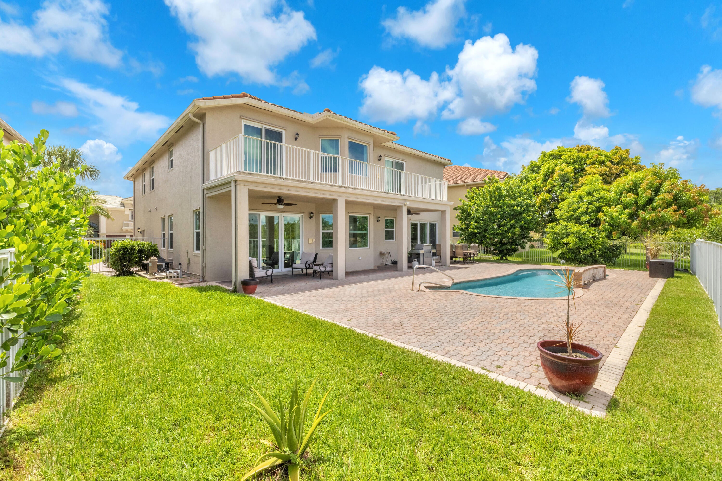 Welcome to this beautifully remodeled 6-bedroom, 4-bathroom home in Wellington's prestigious Olympia community. The open floor plan features stunning new tile flooring and a gorgeous staircase. The modern kitchen includes new appliances, elegant finishes, and a spacious walk-in pantry. The master suite offers a private balcony overlooking a fenced-in yard with a pool and serene garden view, ensuring privacy with no homes behind due to a preserve. The home also boasts a three-car garage. Rest easy during storm season with all new impact windows. Enjoy resort-style amenities like pools, a gorgeous clubhouse, and more in this family-friendly community with top-rated schools. Offering home warranty as well. This is a MUST SEE!