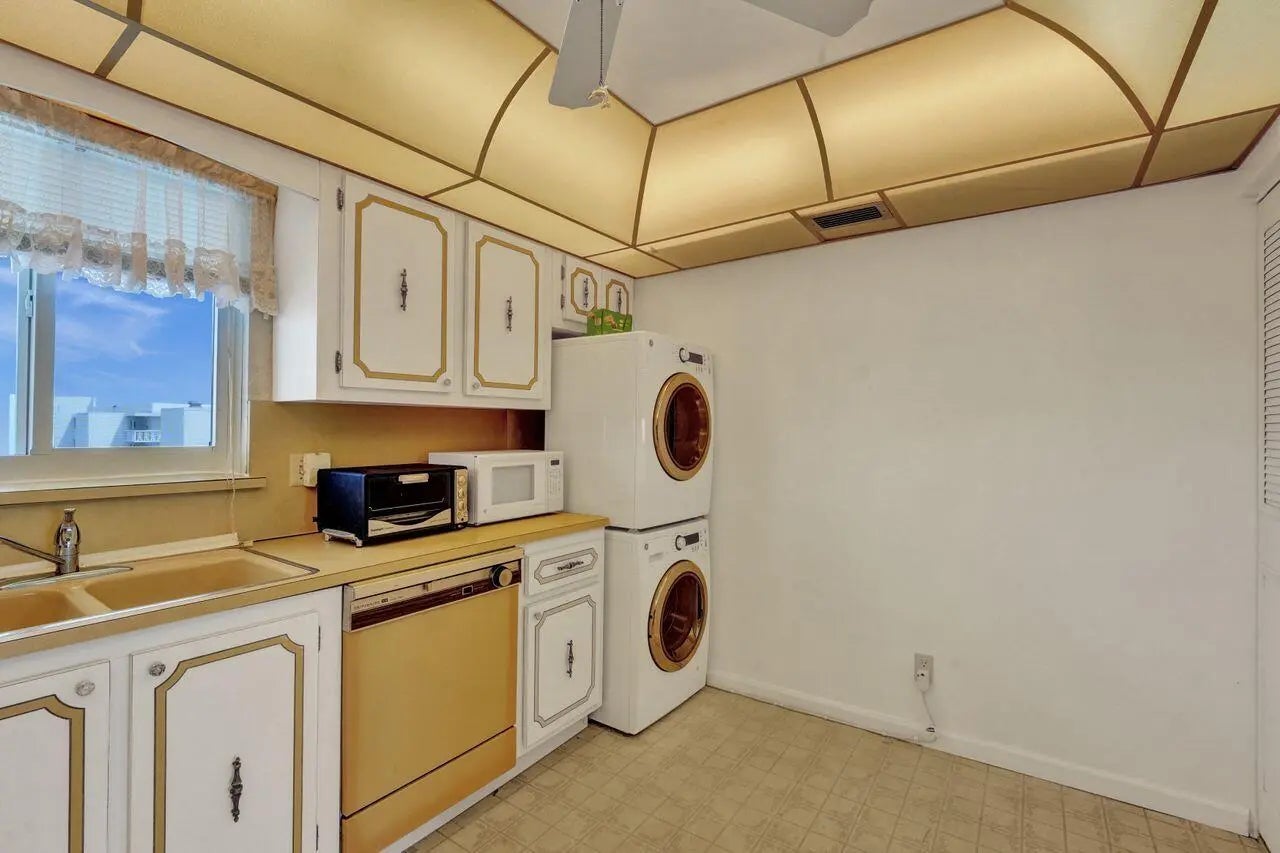 Reduced HOA! NO assessments! This 2 bedroom, 2 bath penthouse condo spans approximately 1,316 square feet. The property features impact windows and spectacular Intracoastal views and is located within a gated community. The primary bedroom suite includes an en-suite bathroom and walk-in closet. The second bedroom is well-proportioned and can accommodate a variety of furniture configurations. One bathroom is tastefully appointed with modern fixtures and finishes. A full size washer/dryer is included. Residents have covered parking. The Intracoastal waterway and Marina view offers a serene and calming ambiance, ideal for those seeking a peaceful living experience. Situated next to the new Nautilus 220 building, you have the same views for less!