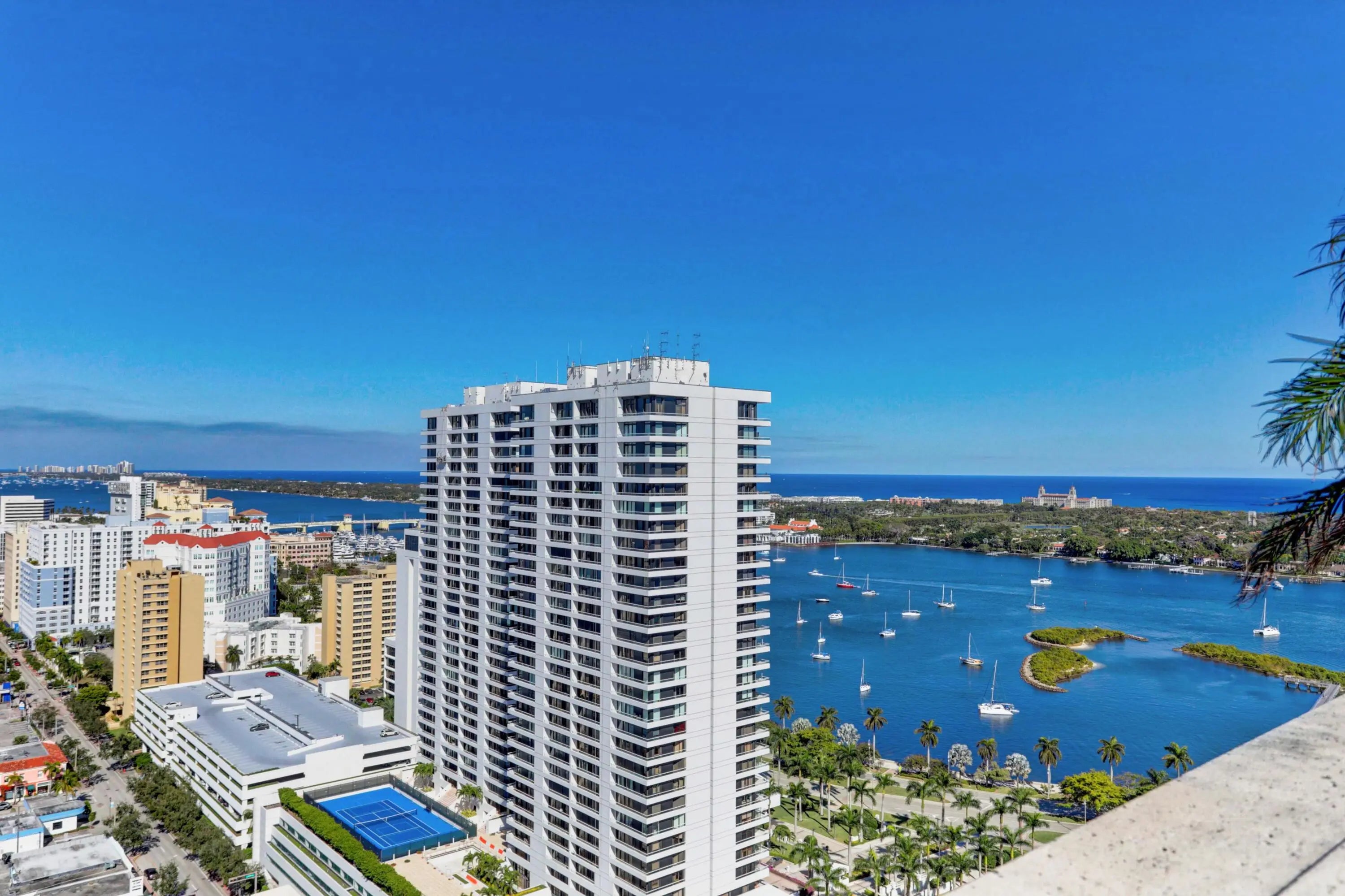 Amazing opportunity to own a turnkey designer home in the premier lifestyle concierge building. This 2 bedroom 2 full bath has been designer decorated and features 11' ceilings, plantation shutters, bamboo flooring, newer washer/dryer, newer water heater, single parking with large dedicated storage. This home features a great room floorplan with a balcony overlooking the protected courtyard. Soft grey/creams and white round out the decor. Just bring your toothbrush and move right in as all the pots/pans/dishes/furniture and artwork is included in the sale. Enjoy valet parking, rooftop pool with incredible intracoastal views, BBQ area, gym, sauna, steam room, movie theater, and a conference room. Just minutes to Palm Beach and the airport.