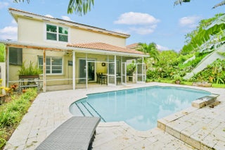 Villa Palma at Northlake is a gated community that welcomes pets and features a small dog park along with sidewalks. This 4-bedroom, 2.5-bathroom residence has a saltwater pool, a fenced yard, and a screened porch equipped with seating, a built-in grill, and a mini fridge. The backyard has an open dining patio adjacent to the pool, complemented by banana trees that enhance the lush landscaping and provide added privacy(New Roof and Water Heater 2025) The house was also painted all white on the inside except for one bedroom. Also, HOA includes Wifi and tv package!