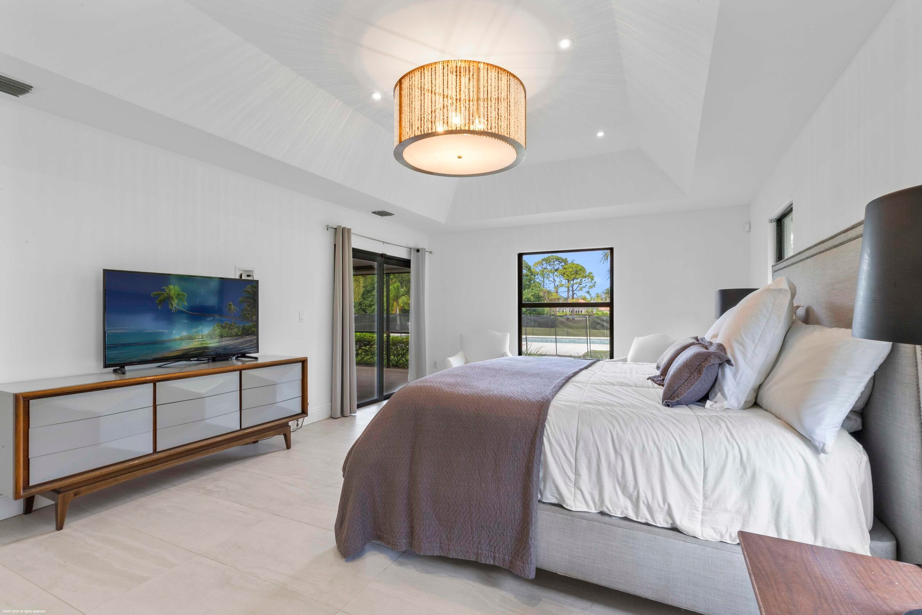 This gorgeous pool home is situated on a larger, 1.13-acre, private lot in one of Wellingtons most sought after communities! The fully renovated home features 2,176 sq ft of living space with 4 bedrooms, 3 bathrooms, and a 2-car garage. A modern, clean and chic interior offers an open concept floor plan with vaulted ceilings, custom lighting, spacious kitchen with a large island, Sub Zero/ wolf appliances and a luxurious primary bedroom an ensuite.Impact windows through out. Roof was replaced 2010. The expansive, open backyard is like a breath of fresh air, boasting a newer (2018) heated salt water pool and screened-in patio with amazing golf course views! The large yard gives plenty of space for a guest house or even a tennis court. The Aero Club community is an aeronautical community with a private 4,000 ft paved runway, located in excellent school district and is only a short golf cart ride to Wellington's renowned equestrian venues, country clubs and golf courses. Primary bedroom chandelier does not convey.