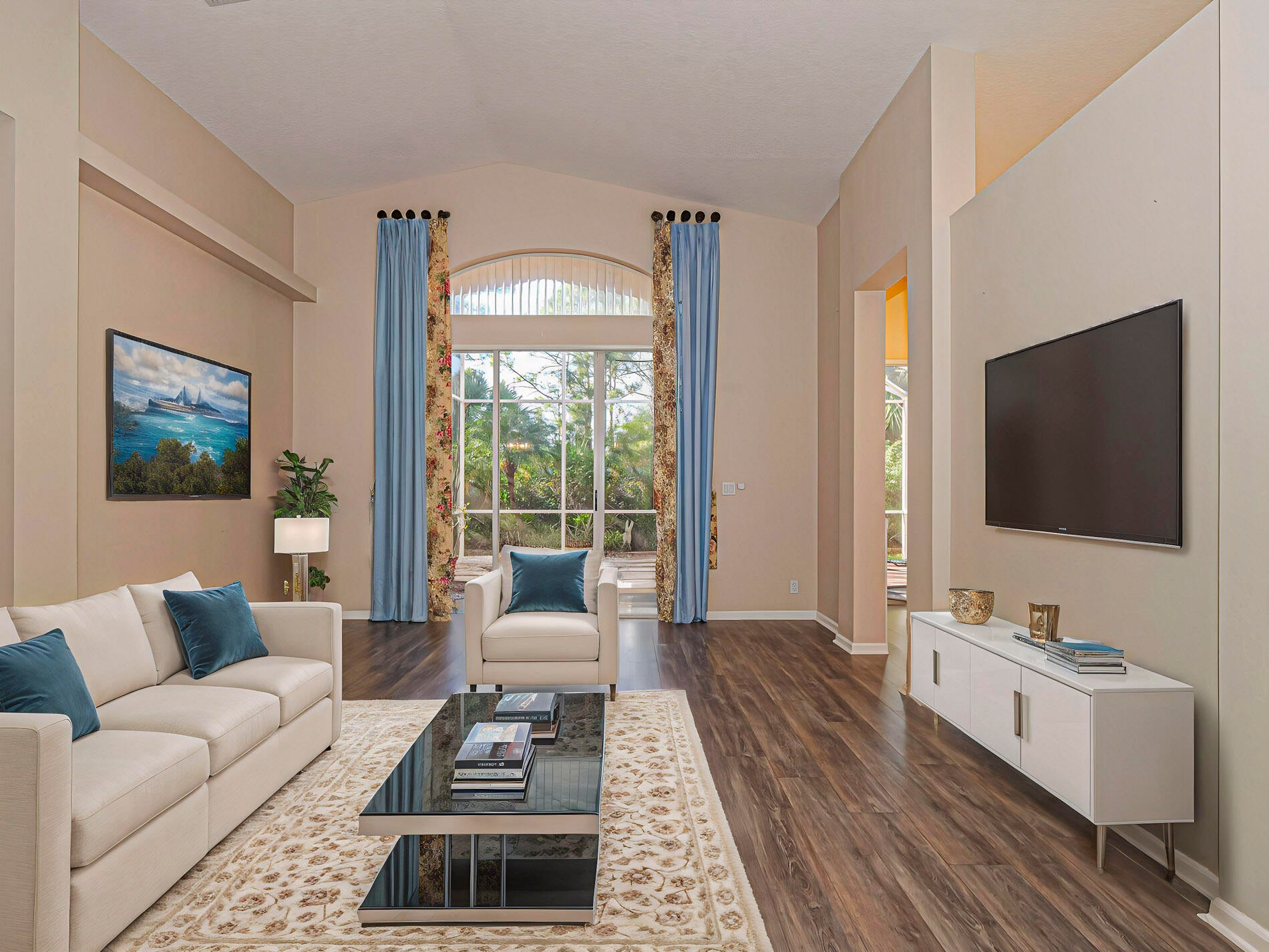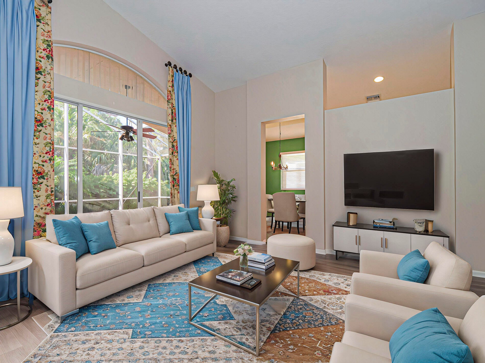 Welcome to this two bedroom plus den 2 bath home nestled in a serene and secure 55+ community . This home features an open floor plan perfect for entertaining or relaxing. The bright and airy living room opens to a large extended screened patio ideal for morning coffee or evening gatherings. The main bedroom suite offer a peaceful retreat with an en-suite bathroom and generous closet space. The community amenities include a clubhouse, pool , fitness center and 9 hole golf course ensuring an active and social lifestyle. Conveniently located near shopping, dining and healthcare facilities this home is perfect for those seeking a fulfilling retirement experience.
