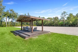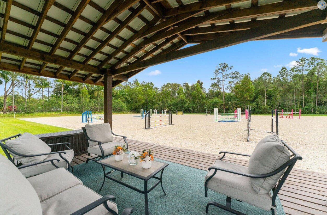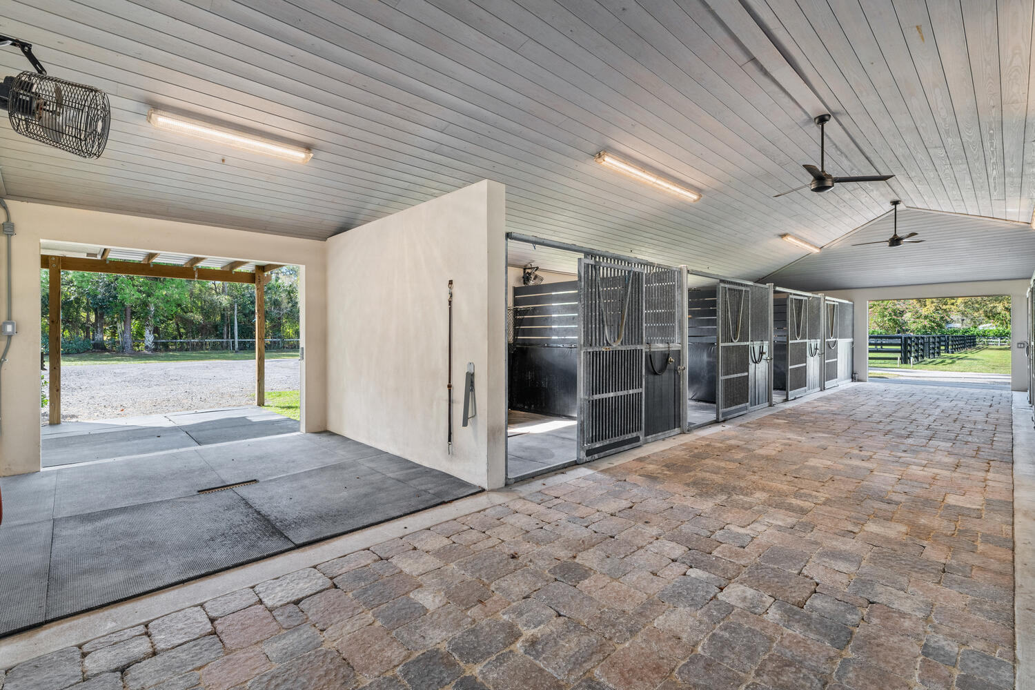 This exceptional turn-key 5 acre equestrian property is located via a private, gated and landscaped drive on D Rd just north of Collecting Canal offering easy access to WEF less than 6 miles away. The Property is improved with a 9 stall center aisle barn, complete with fly spray system, air conditioned tackroom, feed room, laundry room, together with a two (2) bedroom/1 bathroom furnished apartment, and a separate owner's lounge with full kitchen and private bath. Built in 2020 the barn is total hurricane protected with shutters and roll down doors, and has a 230'x130' Wordley Martin riding arena with covered viewing pavilion, and 5 irrigated paddocks. Adjacent properties are also for sale for additional acreage potential.