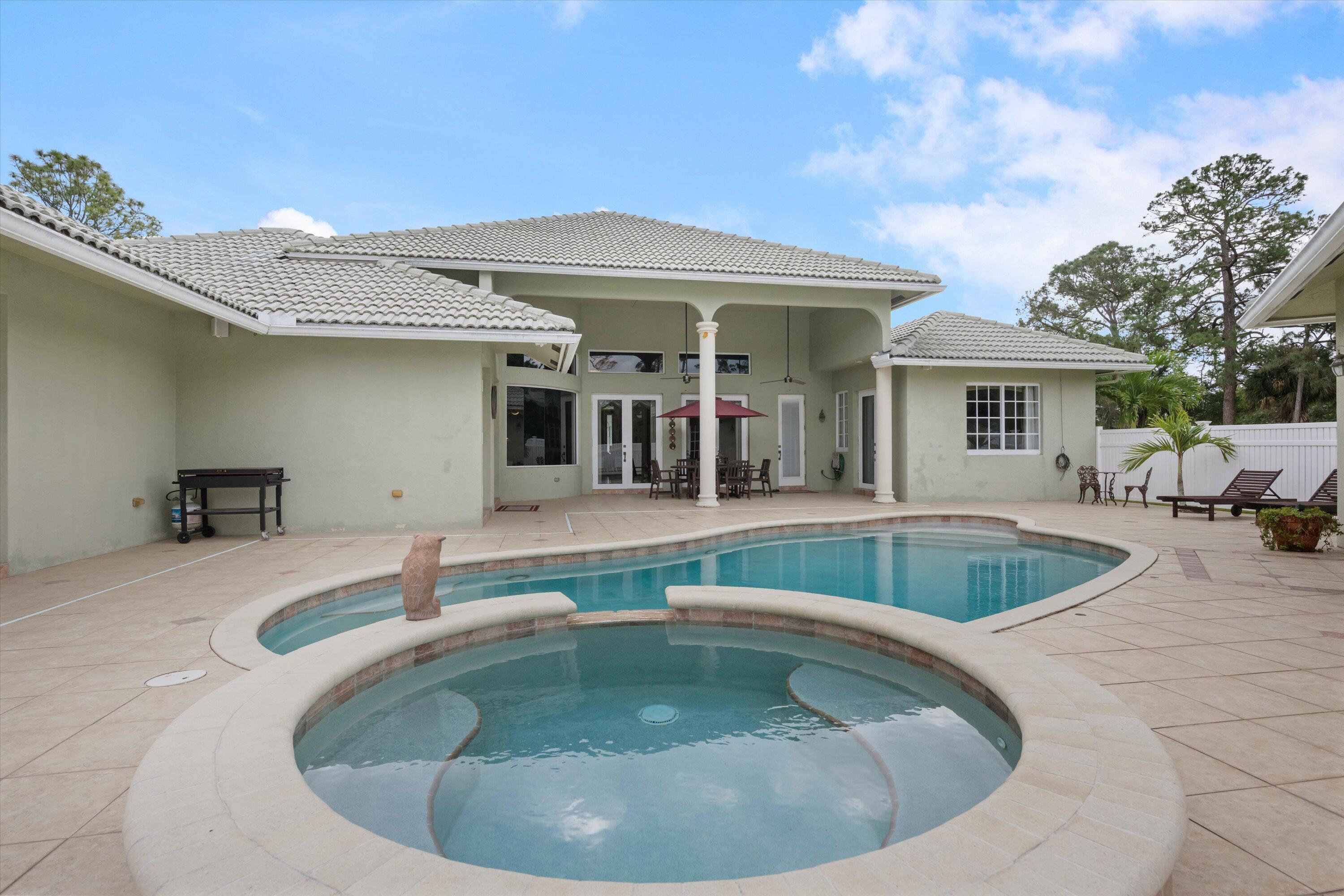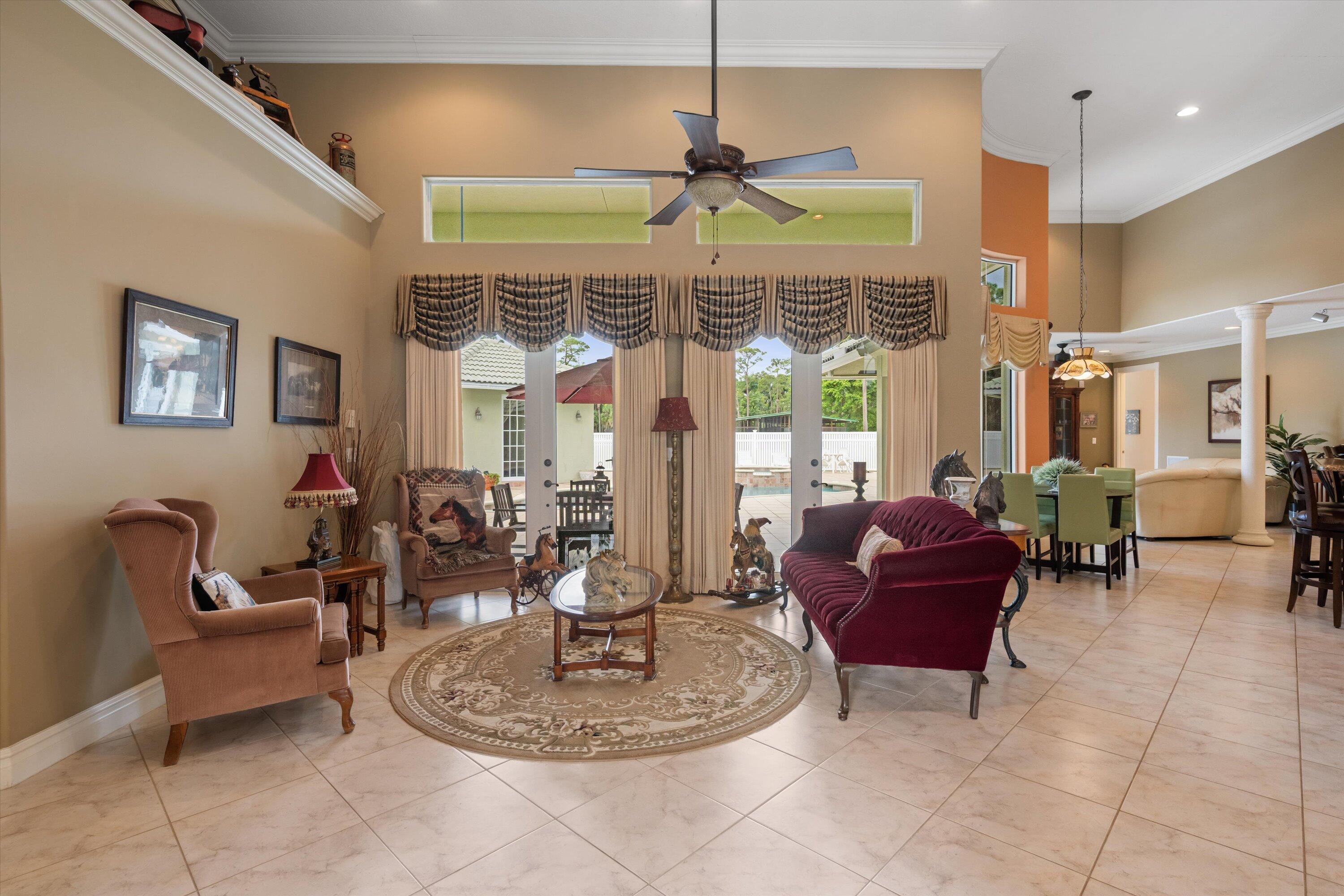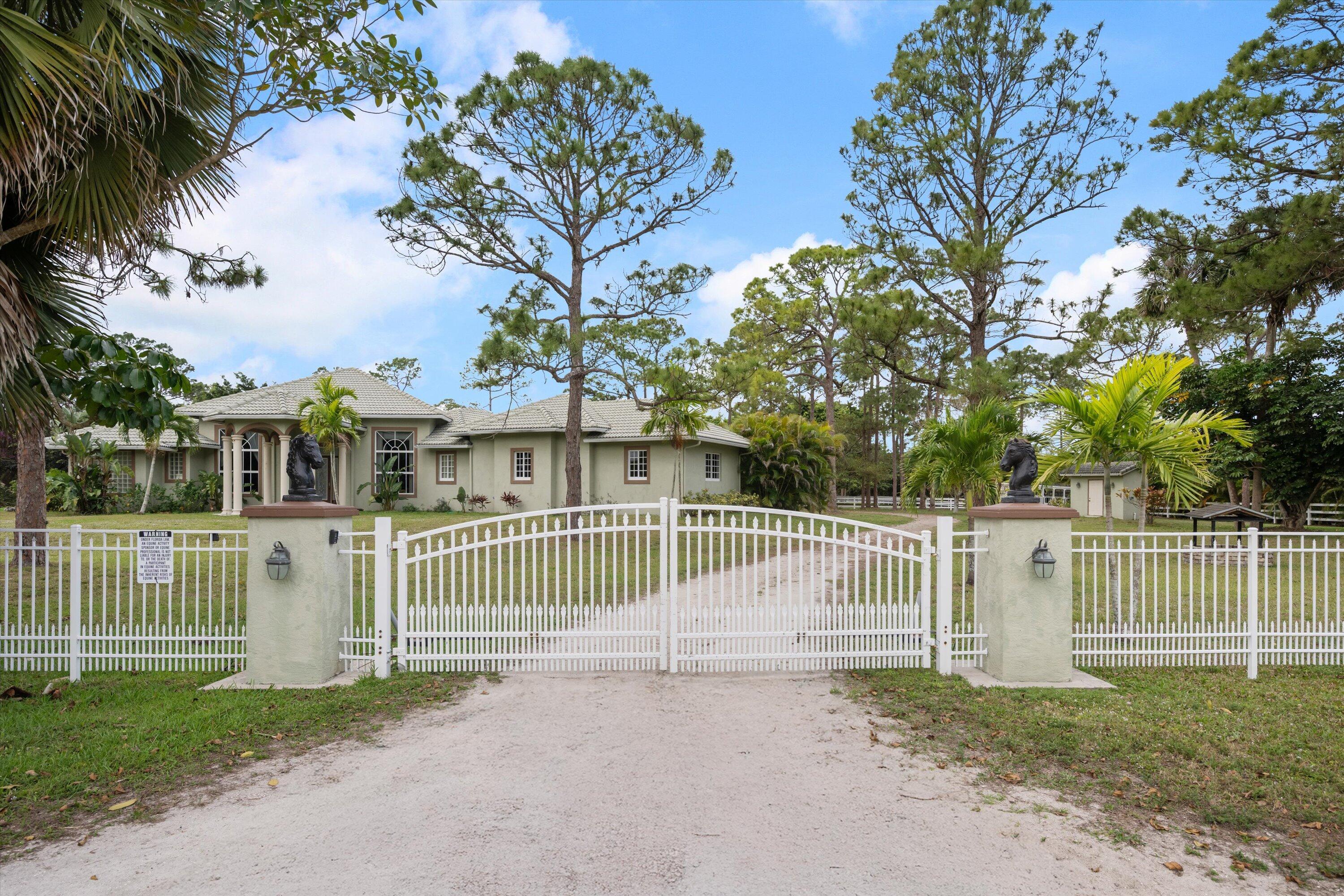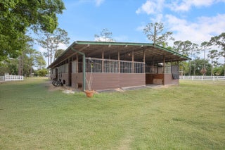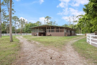 Oversized lot in a great location. This stunning 6.34-acre home features, a 20-stall barn, with a separate feed and tack room, plus an inside wash stall, and 7 large paddocks. A true haven for horse lovers, this high and dry property offers a beautifully designed 5-bedroom, 4-bathroom home with vaulted ceilings, a spacious family room, and a separate pool room. A beautiful kitchen, complete with stainless steel appliances and a double oven, overlooks the inviting pool and hot tub, creating a smooth indoor-outdoor flow.