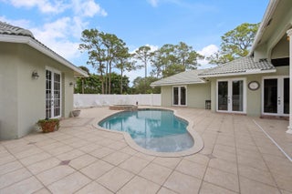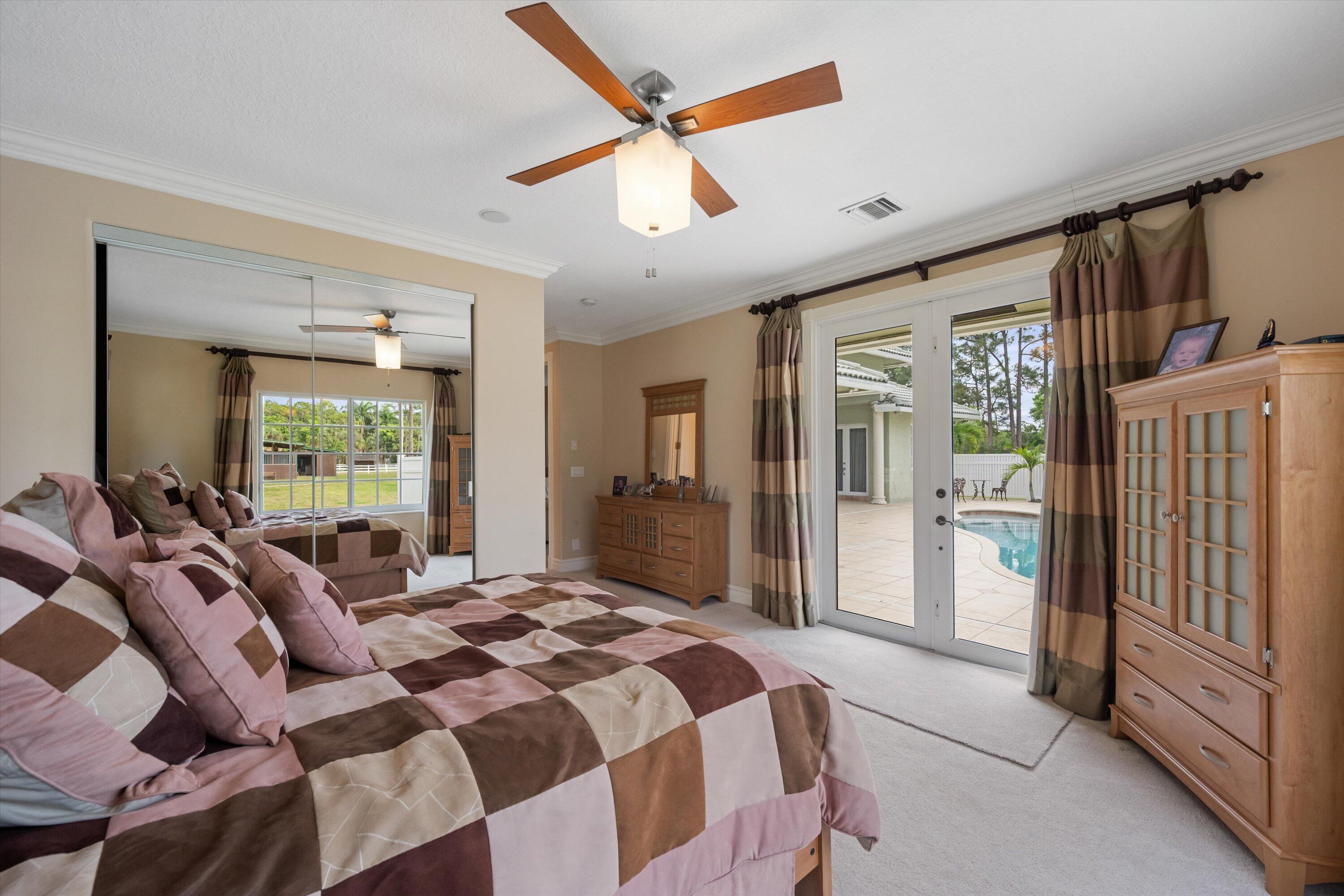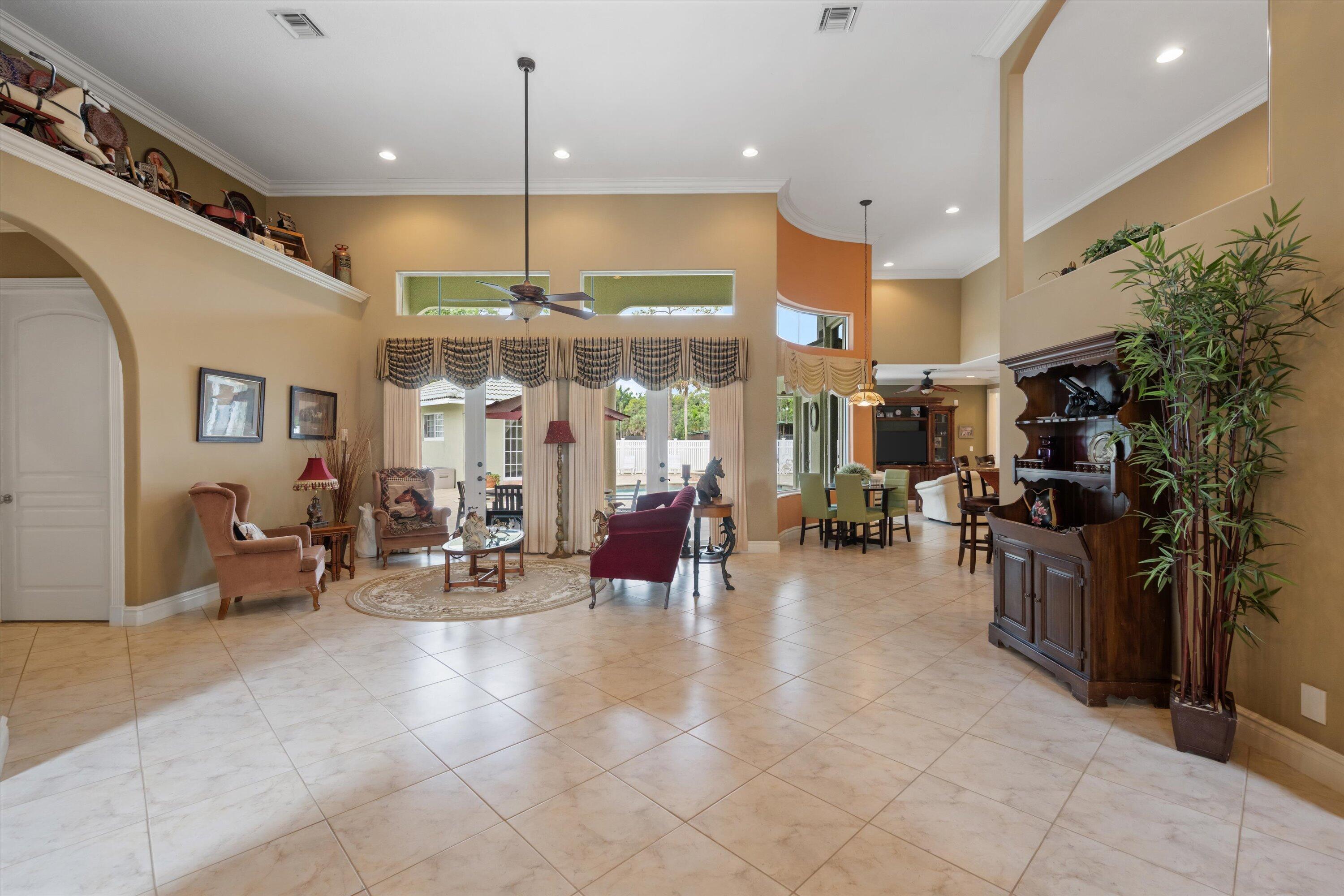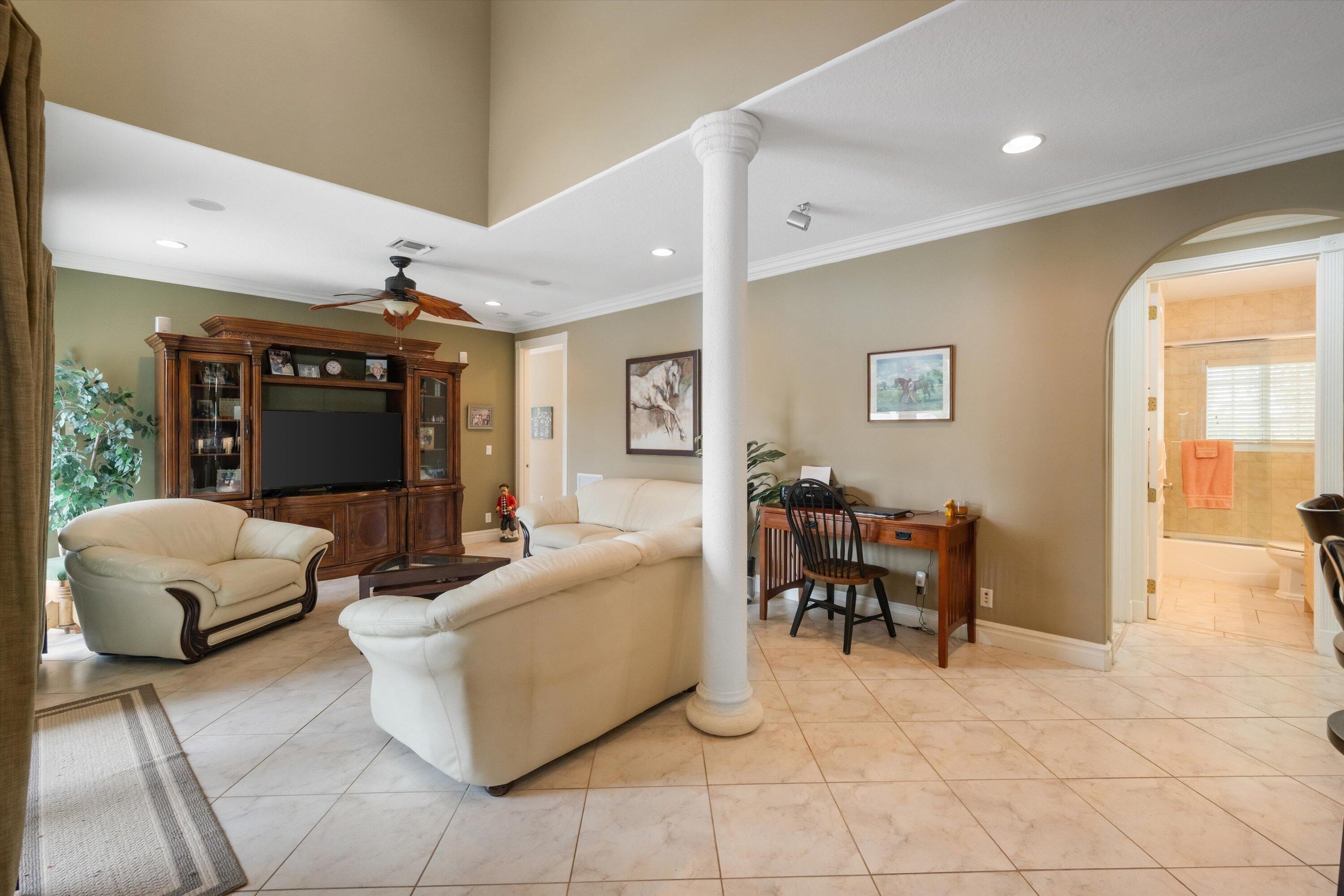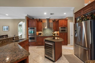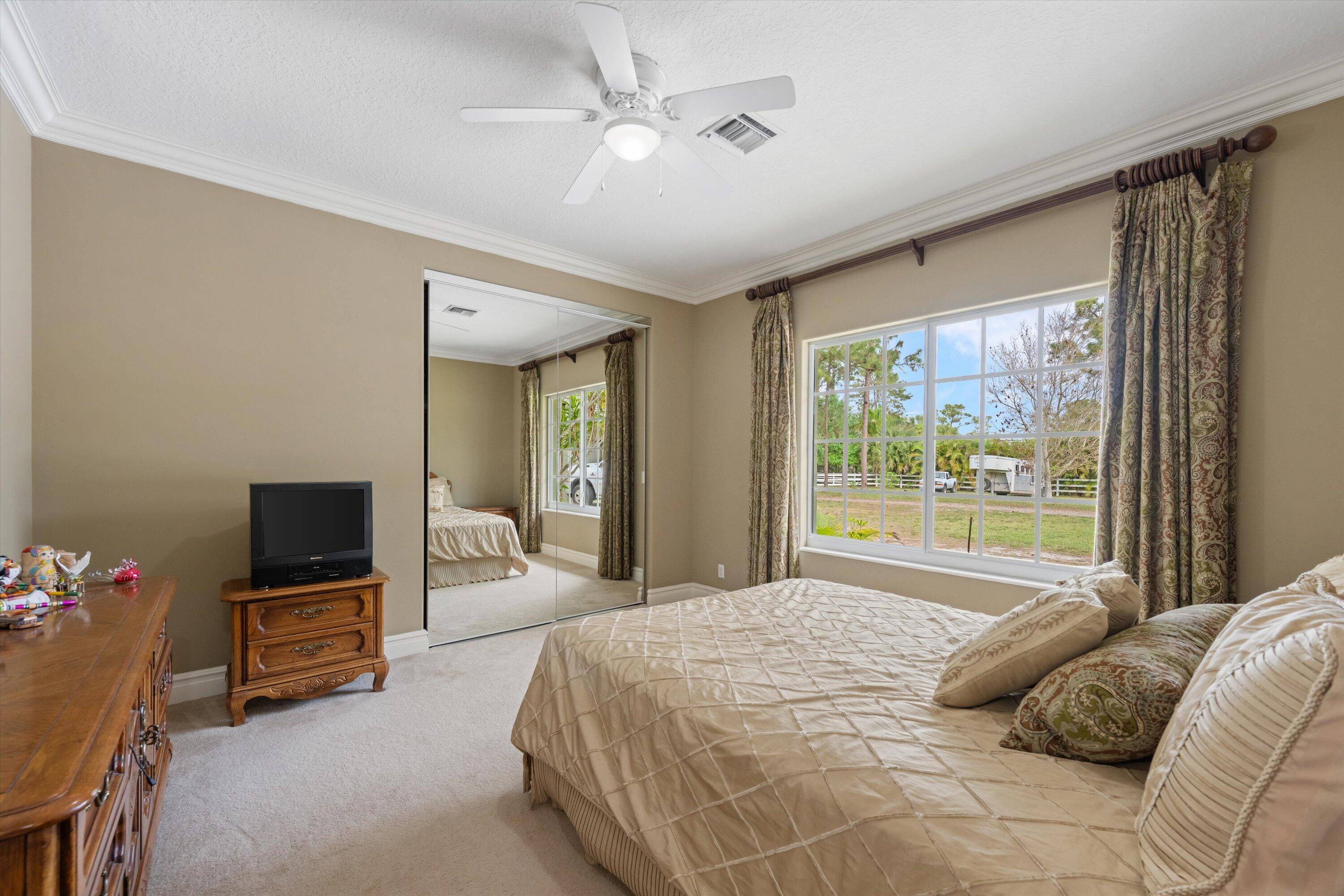Oversized lot in a great location. This stunning 6.34-acre home features, a 20-stall barn, with a separate feed and tack room, plus an inside wash stall, and 7 large paddocks. A true haven for horse lovers, this high and dry property offers a beautifully designed 5-bedroom, 4-bathroom home with vaulted ceilings, a spacious family room, and a separate pool room. A beautiful kitchen, complete with stainless steel appliances and a double oven, overlooks the inviting pool and hot tub, creating a smooth indoor-outdoor flow.