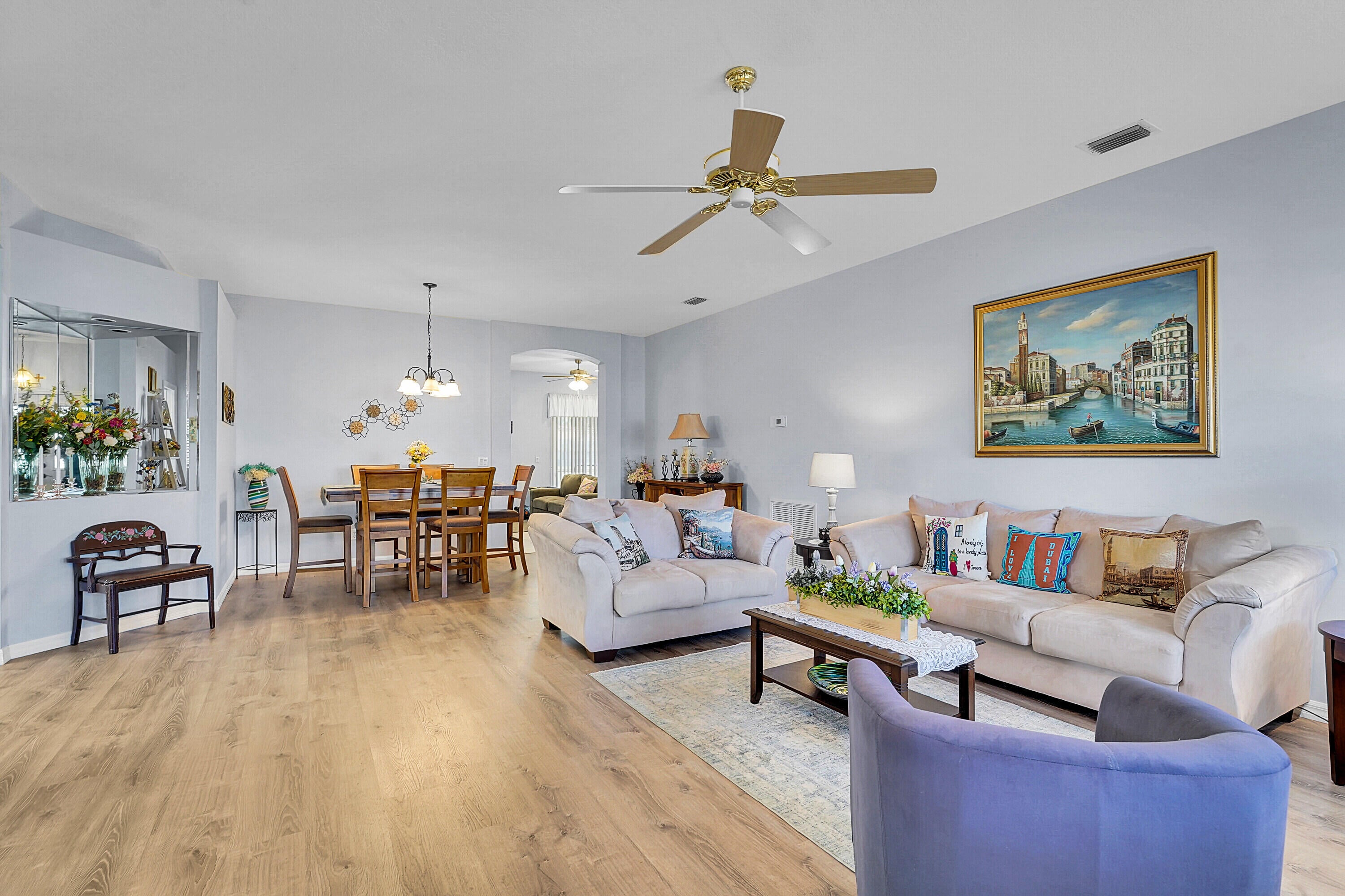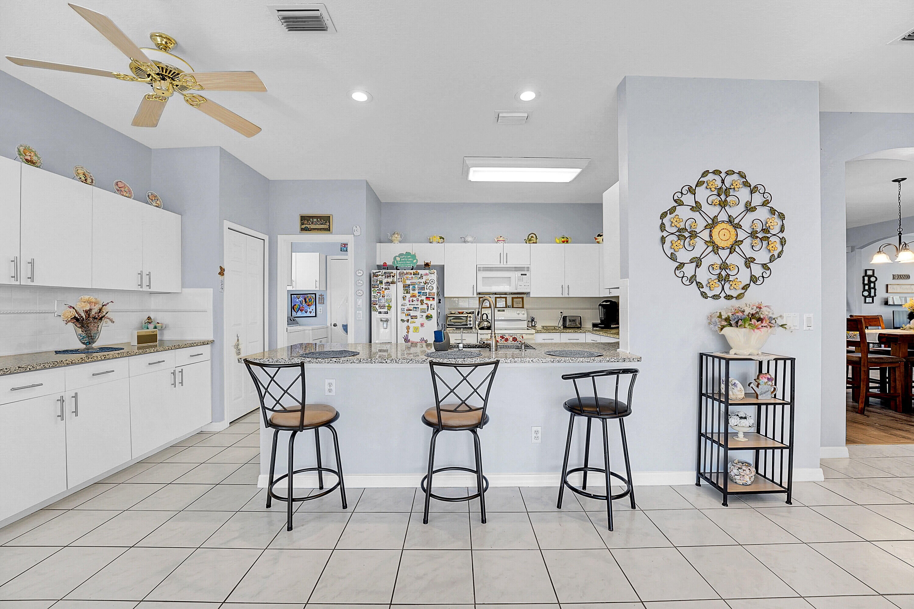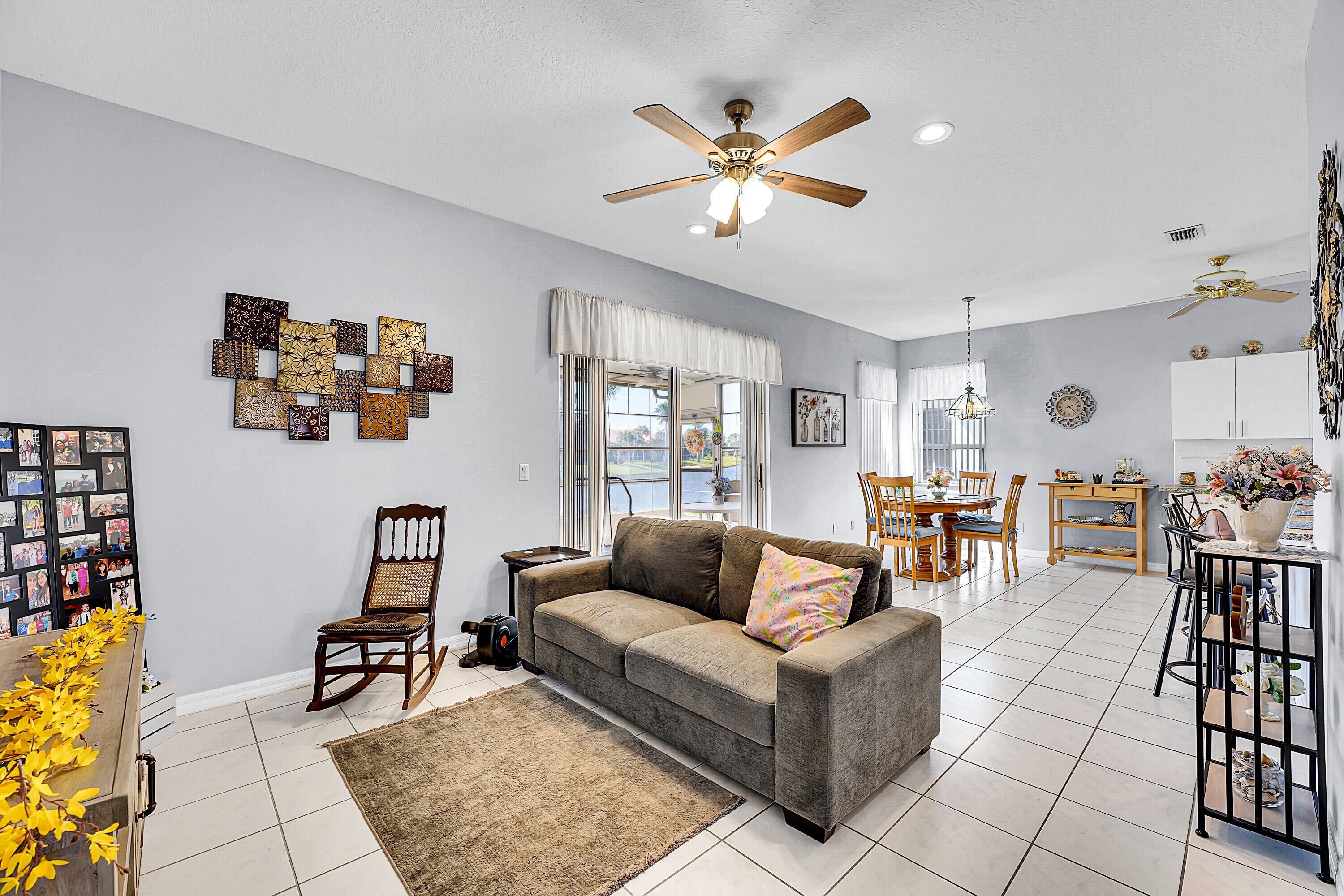 Nestled in the highly desirable Kings Isle, this beautiful 55+ community offers a secure, gated environment with a manned entrance, providing peace of mind and privacy. Inside, you'll find a spacious living and dining area perfect for entertaining or relaxing. The open, eat-in kitchen with a breakfast bar is ideal for casual meals and enjoying your morning coffee. Step outside and enjoy the outdoors year-round with screened-in front and back patios, perfect for unwinding or hosting guests. This home presents a fantastic opportunity to enjoy the vibrant Kings Isle lifestyle in a truly welcoming community!