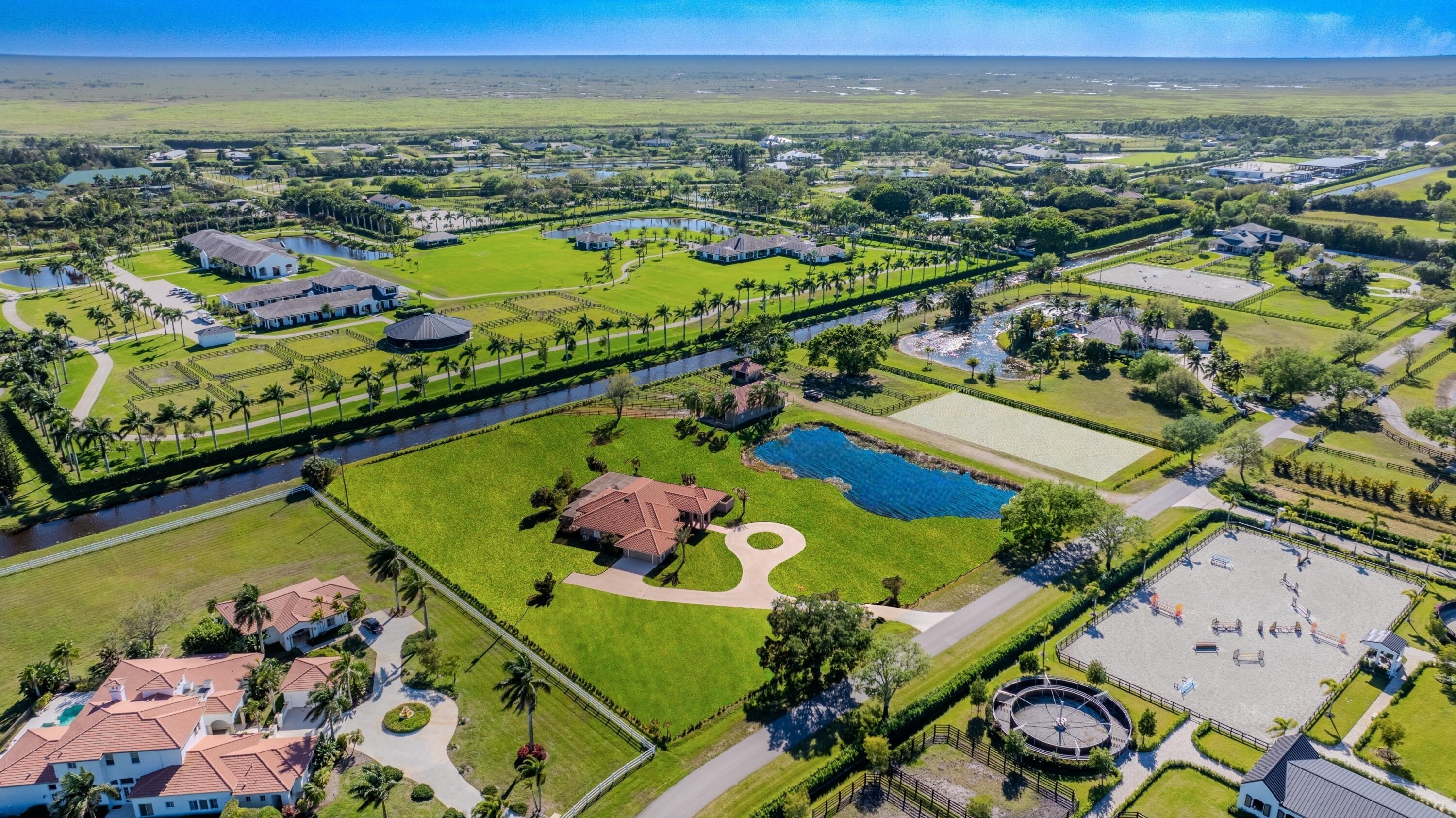 Incredibly Private Farm awaits you on 5.3 acres in gorgeous Palm Beach Point. Behind the exclusive manned gates and tree lined paths, this property sits true hacking distance to show grounds. The adjacent parcel can be combined to be a stunning double lot of 12 acres. The 8 stall barn here can be converted to 10-12 stalls. There are 6 paddocks, 2 oversized, 5 run-outs, can be reconfigured to 8-10 large paddocks as numerous possibilities await. Grass riding ring is being converted to sand ring now and new perimeter fencing is being installed. Tongue and groove ceiling and beautiful stall fronts are additional options for your dream farm. The beautiful pond is serene and peaceful overlooking the barn, and can be reshaped for a larger arena and area for hot walker is perfect in rear.Nice CBS storage area is next to barn, House and barn each have separate entrances. Freeform pool with spa overlook beautiful sunsets on oversized patio with tropical trees, ready for entertaining. House is 3/3 split plan with 2 car garage and circular driveway. Adjacent parcel just closed for $5.6M. All plans can be provided for endless possibilities and instant equity as you reimagine your beautiful farm!
