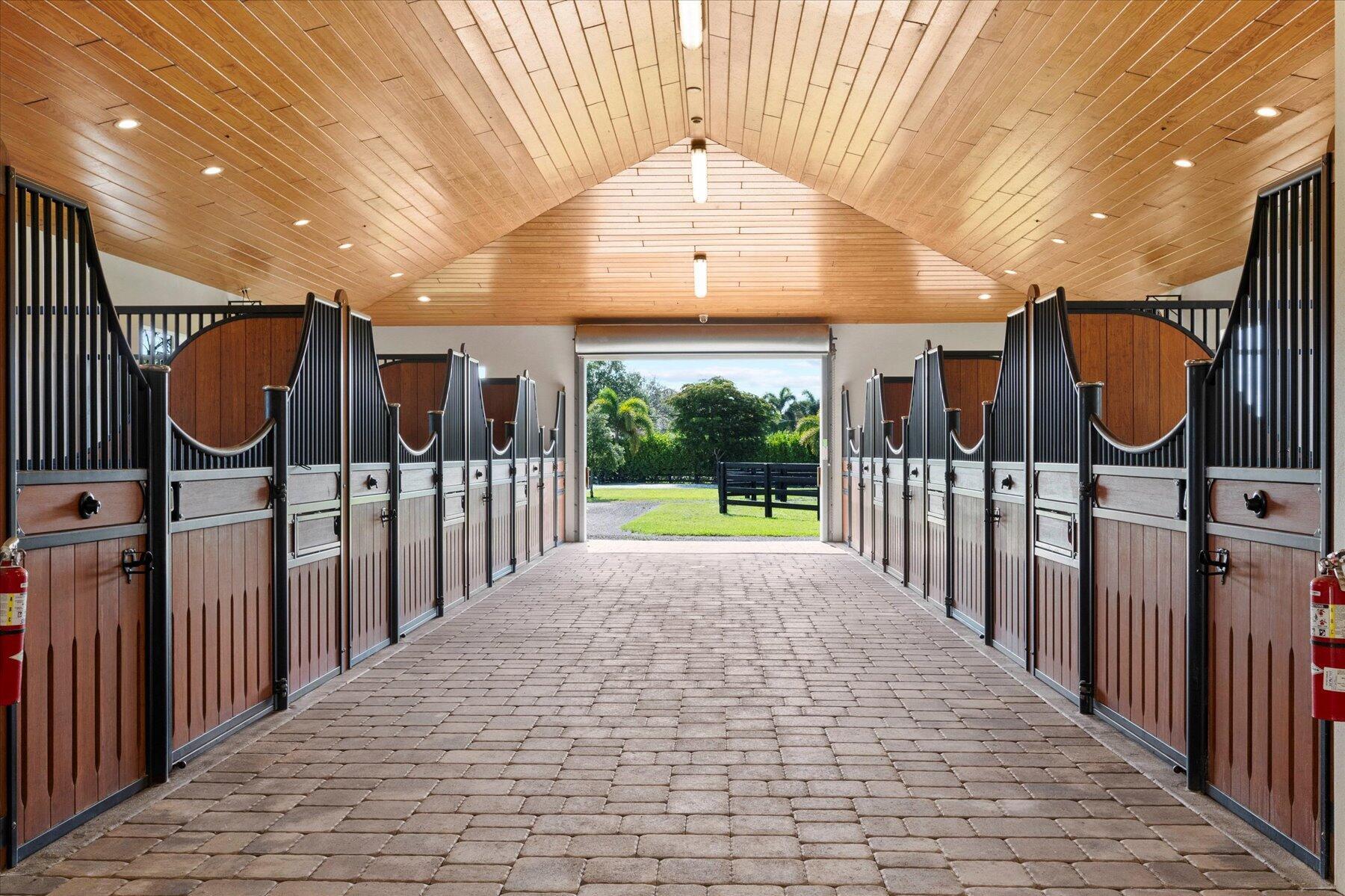 Welcome to your equestrian paradise! Located inside the gates of Wellington's prestigious Palm Beach Point, this 5.7 acre equestrian haven is ideal for your seasonal stay! This unique property offers a blend of functionality and luxury. Here, you'll find everything you need to indulge your passion for horses and enjoy the best of the equestrian season! Upon entry of the barn you are greeted by 14 spacious 12x12 stalls. Whether a professional or equestrian enthusiast, this setup is designed to cater to your horses' every need and your convenience. Outside, the farm features a 6 horse walker, and 6 oversized paddocks where your horses can graze and stretch their legs. It's the ideal environment for their well-being and happiness. When it's time to train an oversized arena measuring animpressive 265 x 150 is at your disposal. The layout of the farm has been thoughtfully designed to streamline horse care, making your daily routine a breeze. The farm's proximity to show grounds is a major advantage. You're just a short hacking distance away from all the action! In addition to the horse amenities, your comfort is equally important.The farm offers designer staff accommodations, allowing you to relax in style after a day of riding and horse care. Two well appointed apartments (2 BED| 1 BATH & 1 BED | 1 BATH) compliment the space and are conveniently attached to the barn, ensuring you're always close to your equine companions. This stunning estate is truly a one of a kind property to be seen, and not one to be missed!