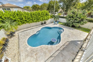 Welcome Home! Private Pool, Fully Fenced, Corner Lot! This 6/4 Aurora model pool home, 3662 sqft. of luxurious living space on a private corner lot with a fully fenced yard. The 1st floor features a guest en suite, 2 expansive living areas, and 2 dining spaces, ideal for entertaining. Upstairs, wood flooring and crown molding enhance the elegance. The master suite includes a versatile sitting room or office that can serve as an additional bedroom, a private balcony perfect for morning coffee. Additional bedrooms upstairs provide ample space. The custom-designed pool, is perfect for entertaining. Olympia offers a grand clubhouse with indoor basketball, fitness center, event spaces, lighted tennis and picketball courts, lagoon pool and kids play area