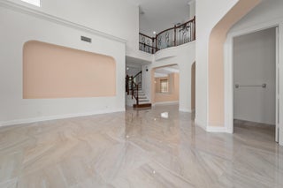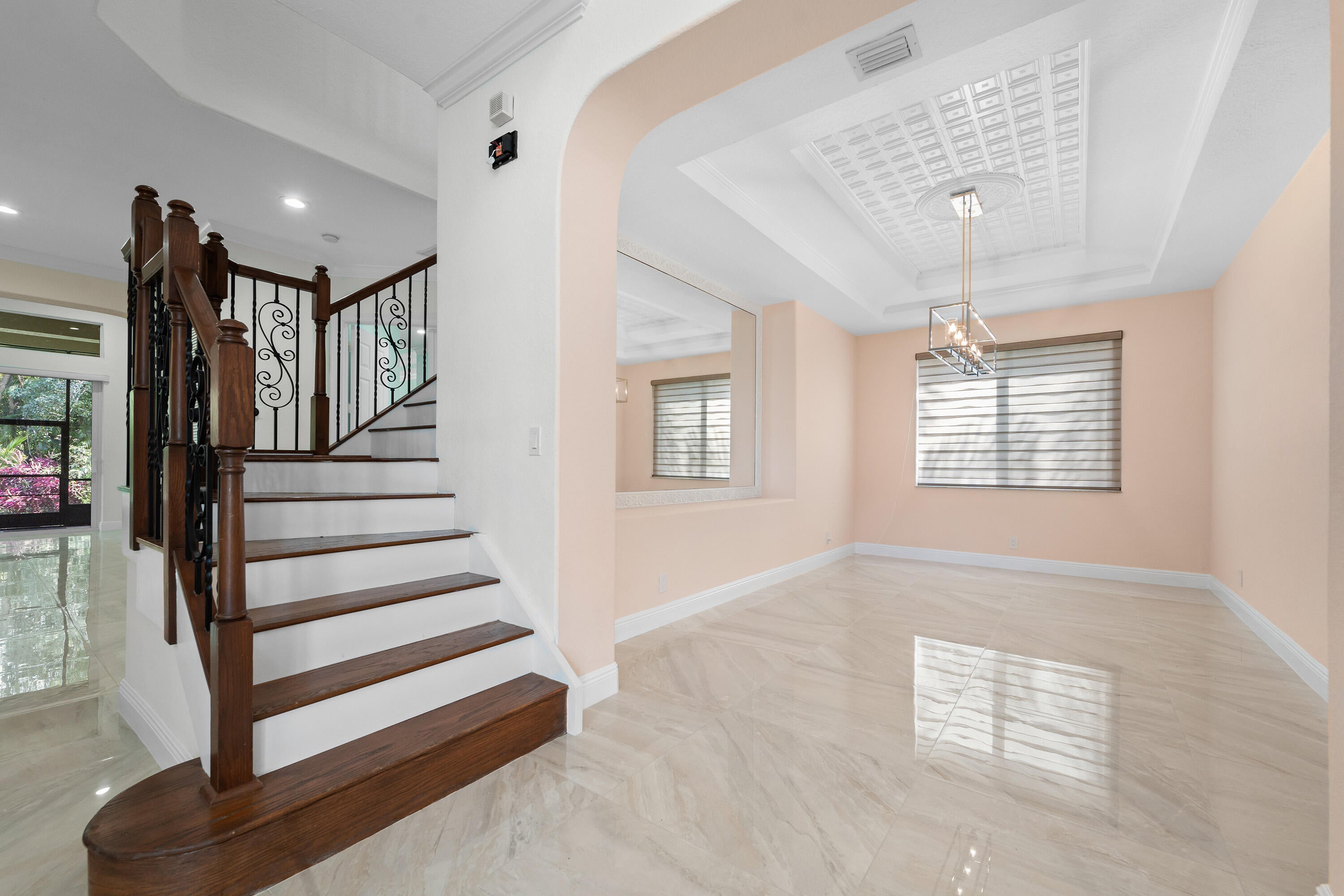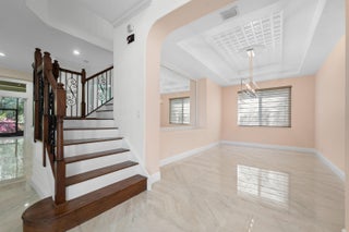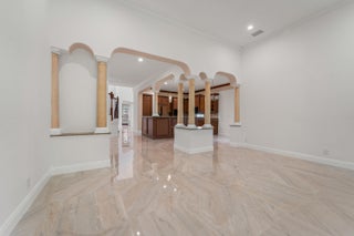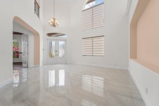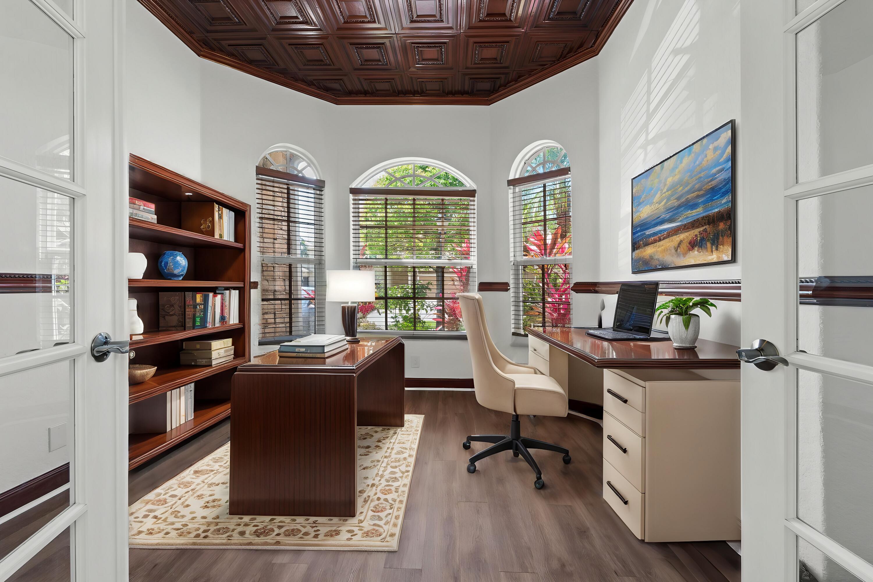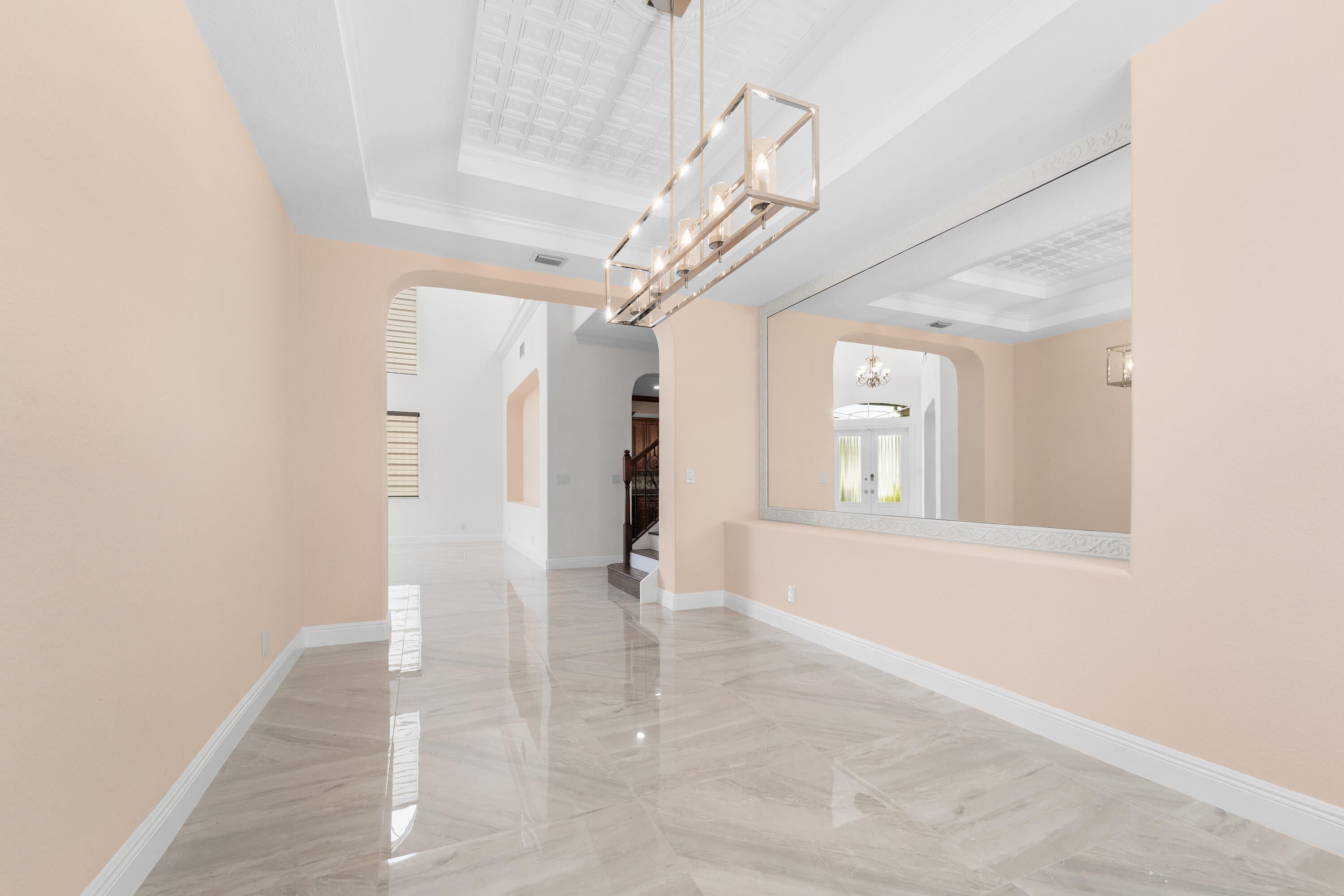 Welcome to a stunning masterpiece in the prestigious Versailles community of Wellington! This residence is a true gem, offering an exquisite blend of elegance, comfort, and luxurious living. With 5 bedrooms, a spacious office/den, and an expansive upstairs loft, there's room for everyone to thrive.The home boasts breathtaking volume ceilings adorned with intricate tin details, while the hardwood flooring and high-quality granite and cabinetry add warmth and sophistication throughout. The gourmet kitchen is a chef's dream, featuring a gas range, double wall ovens, a wood-paneled refrigerator, and 42'' custom wood cabinetry perfect for whipping up culinary creations that delight the senses.Impact windows & doors throughout.Whole home generator! Roof certified for 10 more years.Step into the formal dining room, where tin ceiling tiles and polished hardwood floors set the stage for memorable gatherings. The master suite, conveniently located downstairs, is your private retreat, highlighted by a coffered ceiling with crown molding, a sunlit bay window, his-and-her walk-in closets, and French doors leading to a covered lanai. The spa-like master bathroom includes dual granite vanities, a spacious shower, and a soaking tub ready to indulge your relaxation. Upstairs, the open loft overlooks the elegant formal living room below, creating a sense of grandeur and airiness. Four additional bedrooms share two stylish Jack & Jill bathrooms, providing comfort and convenience for family and guests alike. But wait, there's more... Impact doors and windows throughout! Beyond the home itself, Versailles delivers an unmatched lifestyle. From its grand gated entrance to the dazzling clubhouse amenities, including a pool, spa, fitness center, tennis courts, billiards room, and more! It's a community that feels like resort living every day. Located just minutes away from world-class equestrian venues, A-rated Wellington schools, Whole Foods, exceptional dining, shopping, hospitals, and major highways, this property is truly unparalleled. Act fast! This extraordinary home won't stay on the market long!