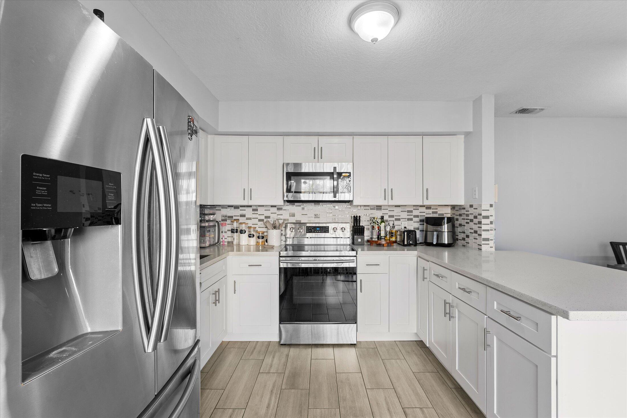 Welcome to your beautifully renovated townhouse offering the perfect blend of modern upgrades and cozy charm. This 2-bedroom, 2.5-bath home has been thoughtfully updated from top to bottom, featuring tile through out, Quartz counter tops, and stainless steel appliances.There are two primary suites that include a private en-suite bath and ample closet space. The AC was replaced in 2023 as well as accordion shutters!This unit is equipped with the washer and dryer inside. Near great schools, and shopping! BRAND NEW ROOF