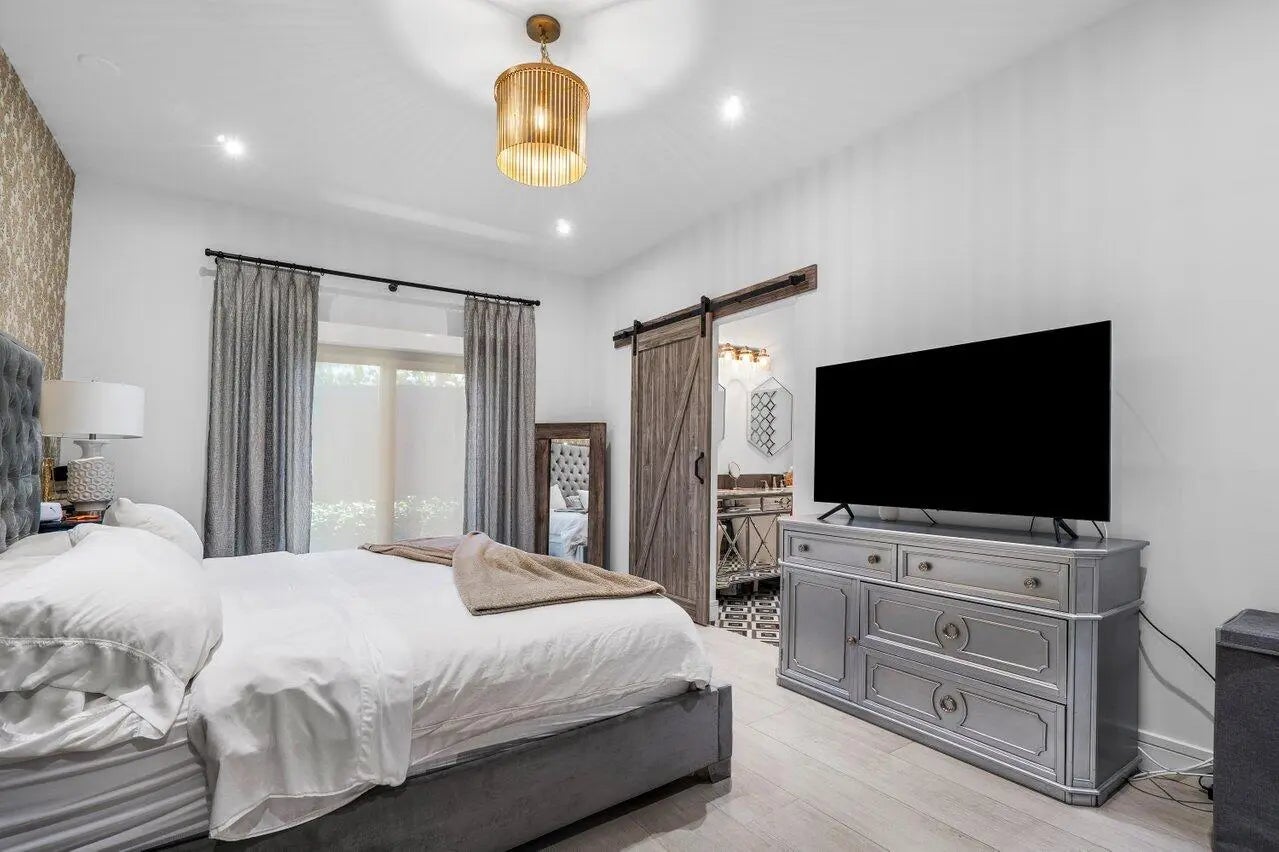 This beautifully renovated single-story home blends modern comfort with timeless European flair. Boasting 3 spacious bedrooms and 3 stylish en-suite bathrooms, it offers a thoughtfully designed layout perfect for both relaxed living and effortless entertaining. The main living area is bright and open, enhanced by soaring ceilings that add a sense of grandeur and space. Step into your private backyard oasis, where a shimmering pool invites you to unwind and cool off on sunny days. The convenient one-car garage provides space for a vehicle--or a golf cart for easy, breezy rides to The Ave. With its open-concept design, elegant finishes, and inviting ambiance, this home is truly an entertainer's dream.
