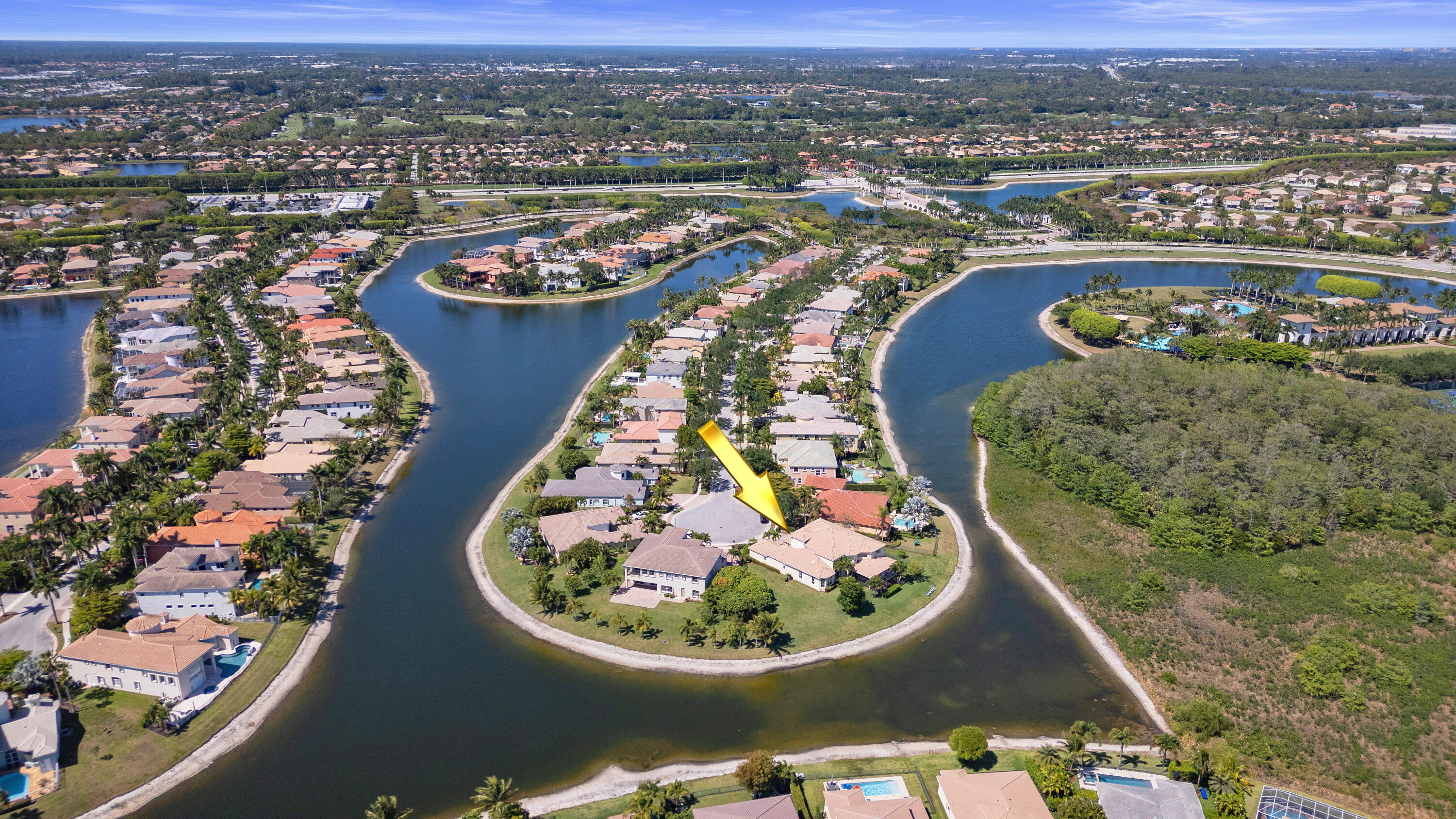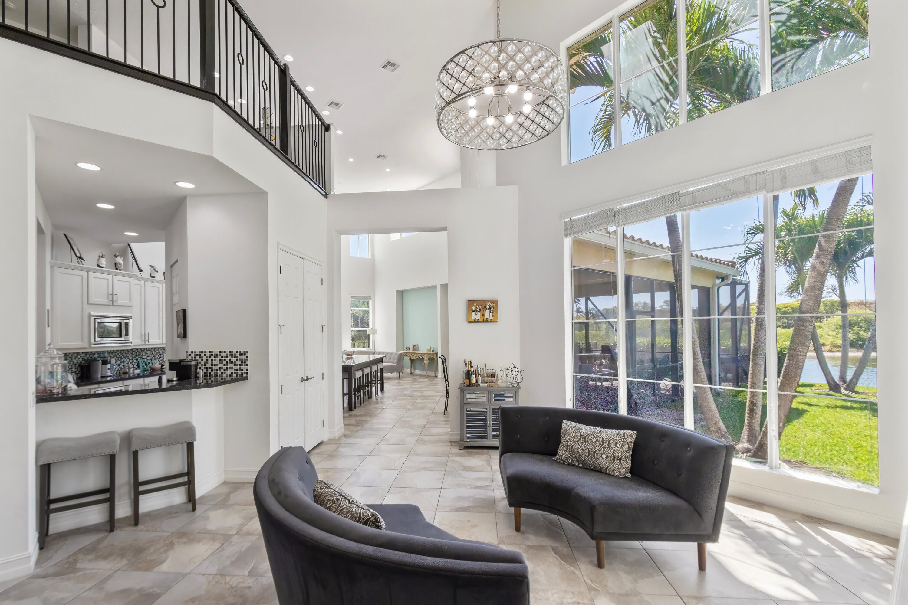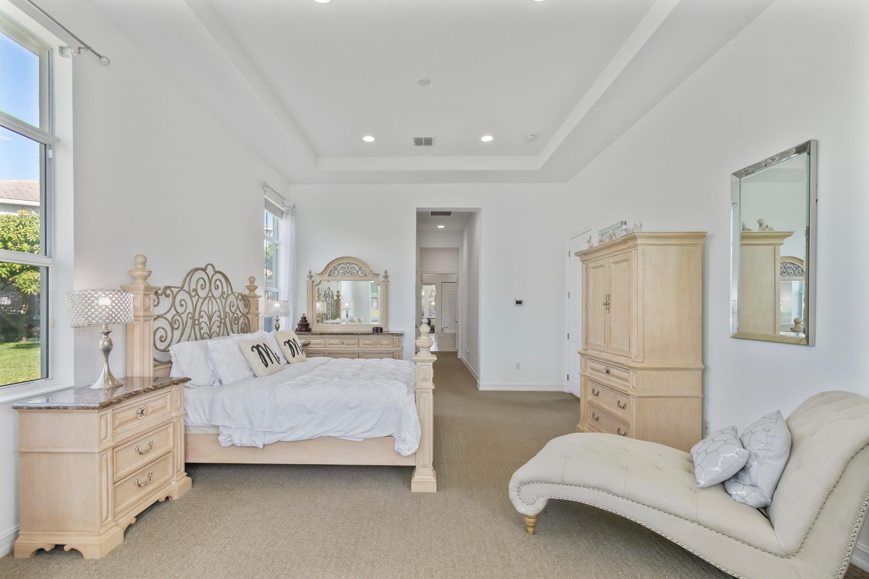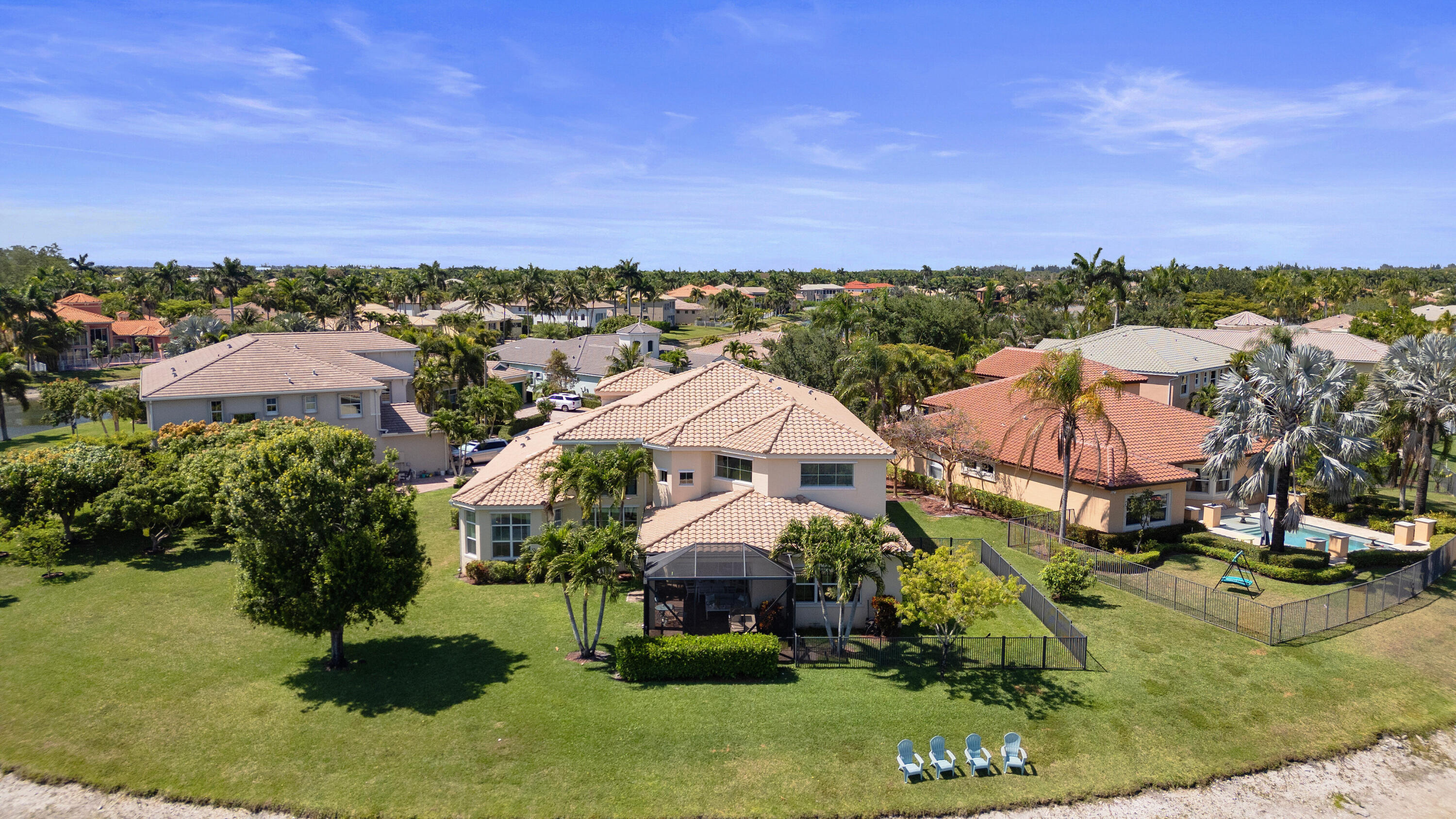 Welcome home to this stunning 6500 total sq. ft. 5 bedrooms and an additional 3 rooms to be used as offices, work out rooms, play rooms, craft rooms, more bedrooms and beyond! All bedrooms have their own en suite bathrooms aand there are 7 total bathrooms throughout. Only 12 years young and on model row in Olympia's premier village of Merriweather on the most gorgeous .4 of an acre pie lakefront lot with breathtaking views! Upon entering you can't help but to be wowed by the 25 foot volume ceilings through most of the main areas and kitchen. Light and bright throughout! The kitchen is the heart of the home and I absolutely love a kitchen with volume ceilings! Stainless, granite, and an awesome coffee bar with seating. The main island is massive and perfect for gathering friends!The owner's suite is my favorite aspect of this home. Huge bedroom, multiple large walk in closets with plenty of space, TWO en suite bathrooms, and the best private office/den space quiet and away from the noise. There is an additional bedrooms with en suite bathroom on the main floor as well. A hidden staircase takes you upstairs to a huge loft area as well as 3 more bedrooms. The curb appeal is stunning, and this gorgeous estate checks all the boxes. The backyard is truly a tropical oasis. Screened area perfect for entertaining as well as fenced in area to the left of the home. The entire lot is spectacular and so much room for a pool. This beautiful home is ready for a new family to love! Olympia is Wellington's premier resort style community that is unparalleled in amenities and true bustling community feel, and this estate in the gorgeous Shaughnessy Village. The magnificent and gigantic zero entry community pool is truly the best community or resort pool I have ever seen and includes private cabanas and an exciting splash pad for the kids. The clubhouse also includes indoor and outdoor basketball courts, pickleball court, volleyball court, tennis courts, an incredibly impressive upscale clubhouse, updated fitness center, and an entirely renovated brand new huge and fun playground complete with astroturf and tons of fun equipment for the kids. Low HOA dues include high speed ATT internet, four manned security entrances, 24 hour rovers, and more. Such a wonderful community feel here. The home is located within walking distance to the clubhouse, restaurants, and shopping. Merriweather Village is a premier estate section in Olympia and a beautiful place to call home. Olympia offers a country club experience without the dues including family fun runs, 5k, 10k, luaus, karate lessons, yoga, 20's themed flapper parties, mom and daughter painting nights, ladies brunches, food trucks, bounce houses and waterslides, pizza parties, holiday parties, end of school year parties, outdoor movie nights, and the list goes on. This is a true community feel. Did I mention the top A rated Wellington schools? Come see this home, it is as gorgeous in person as it is in these photos. You deserve to live the Olympia lifestyle, now it is time to make your dream a reality.