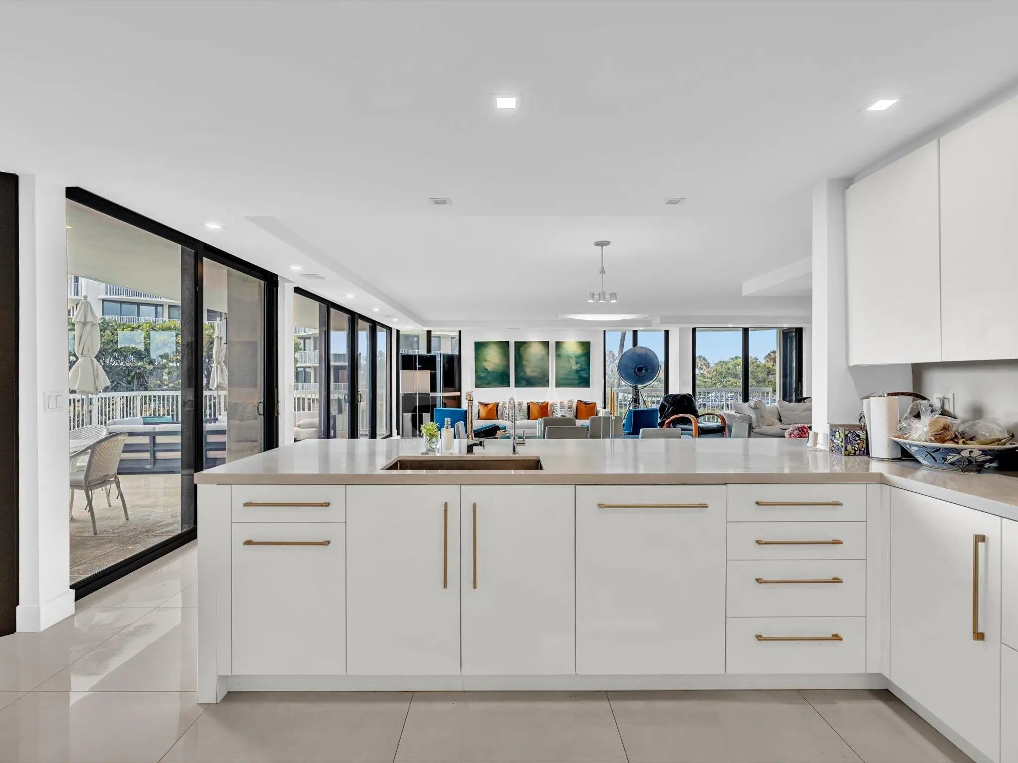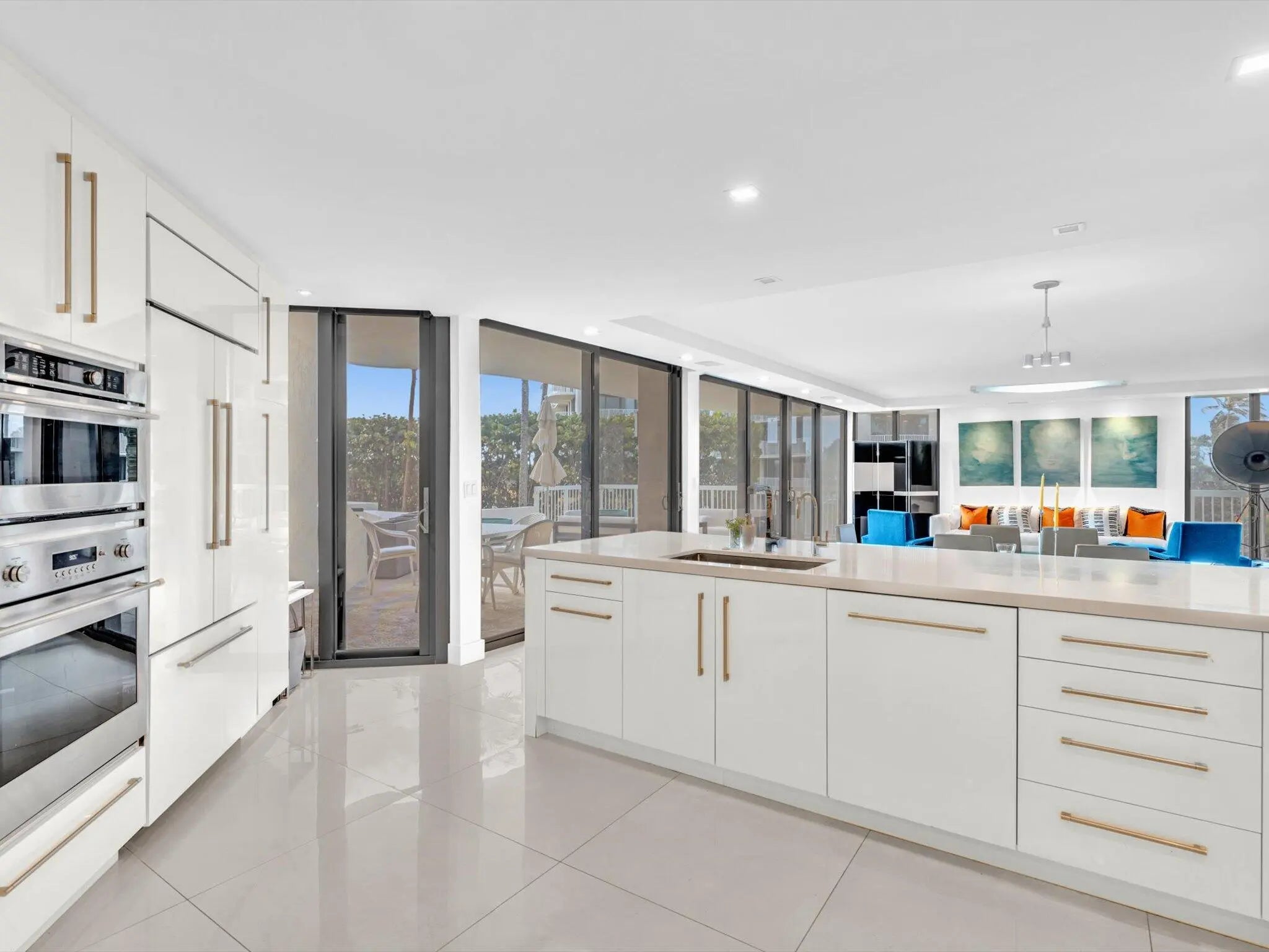 Experience coastal living at its finest in this fully renovated, contemporary oceanfront residence in the prestigious Meridian of South Palm Beach-- where timeless elegance meets cutting edge design. This 2 bed, 2 bath (with optional 3rd bed) home is a true masterpiece, thoughtfully redesigned with top-tier finishes throughout. The expanded gourmet kitchen is a dream for entertainers and culinary enthusiasts alike, featuring premium KitchenAid Monogram appliances, including dual refrig. drawers a beverage fridge and a wine cooler. An open floor plan connects the kitchen to two elegant sitting areas, all surrounded by floor-to-ceiling windows and sliders that bathe the home in natural light and lead to a sprawling 300+sqft lania-perfect for soaking in the ocean breeze. Each ensuite bedroom