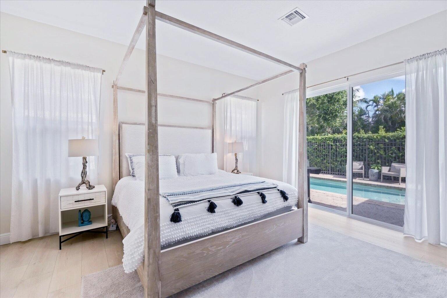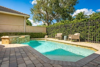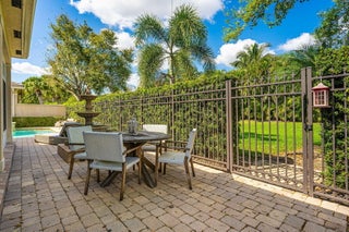 Awaiting you behind the manned gates of the exclusive Palm Beach Polo Club, this luxurious and airy European chic property is the one! Step inside to an elevated feel with a massive open kitchen that directly overlooks dining, family room, and awesome Florida room- perfect for entertaining or watching the kids. The Heated Pool & Bubbling Spa are so fun to enjoy after a day at the horseshow! Backyard is fenced and a lush field is situated behind for romping & playing with the doggies. Gorgeous Restoration Hardware furnishings and next level bathrooms with awesome hand-painted style tiles, travertine, and jetted Jacuzzi tub. Another bath has hexagonal and teal subway tiles, so cool for guests! The kitchen is fully outfitted with gold hardware throughout. Everything feels so crisp here!